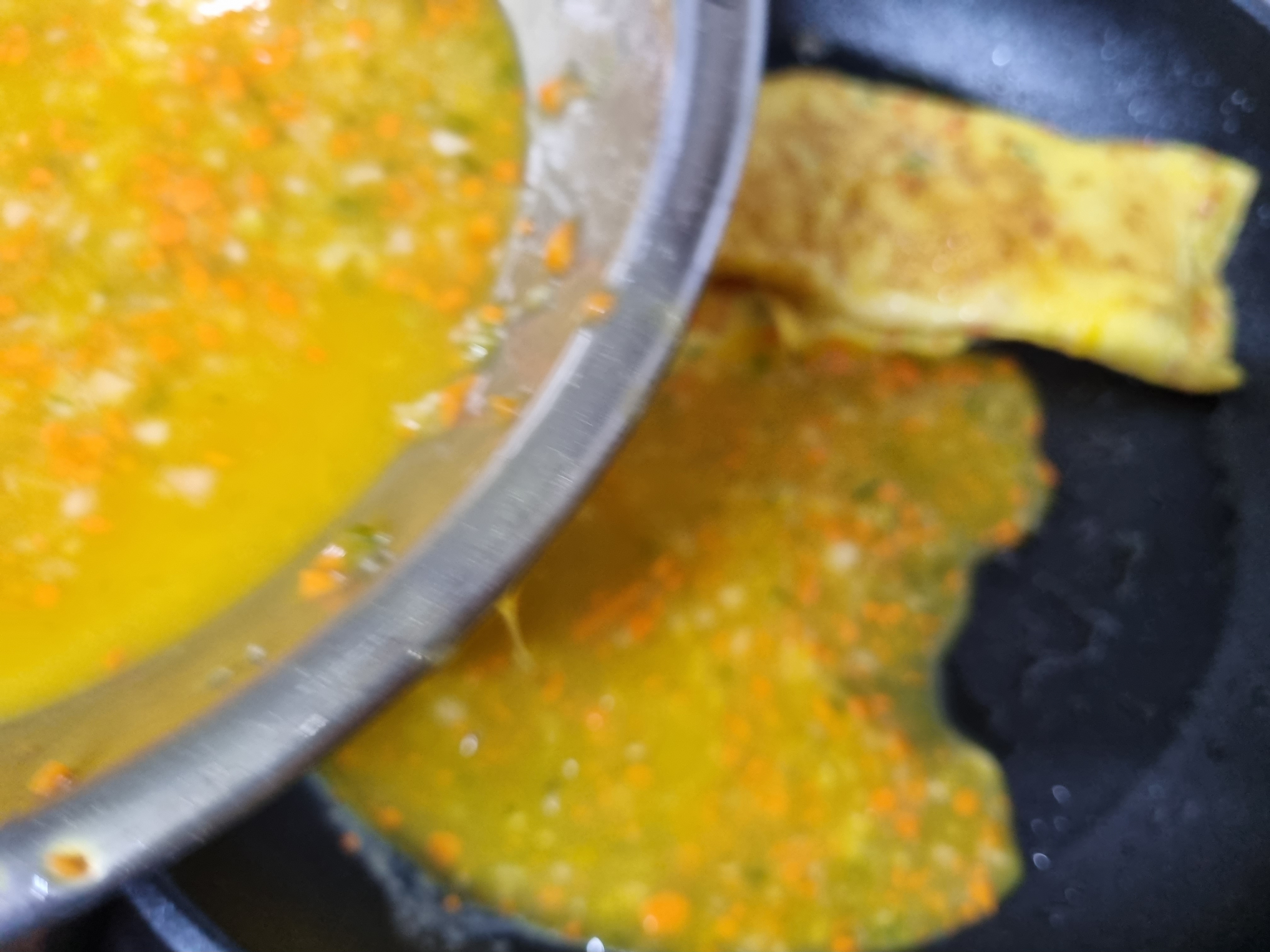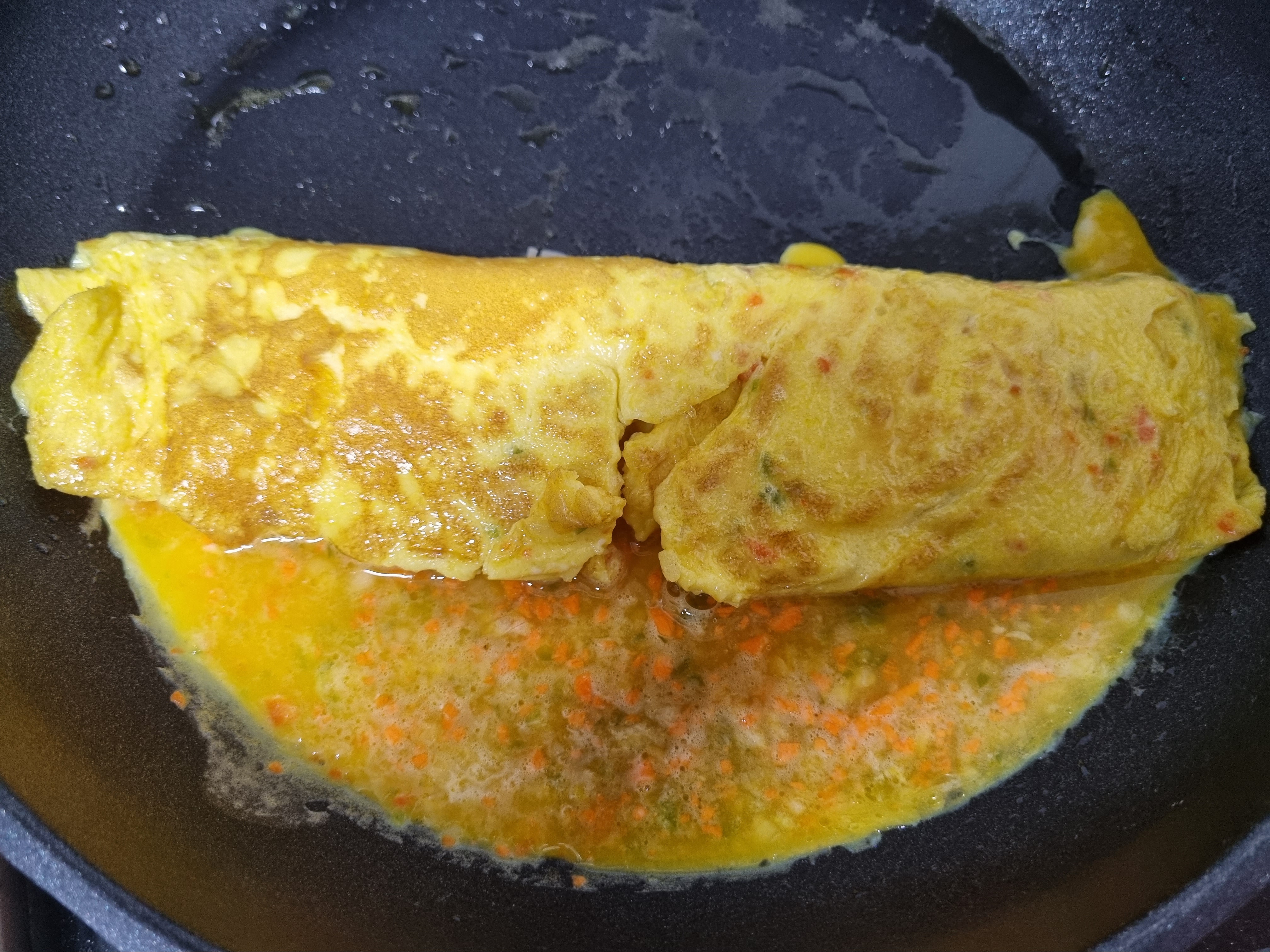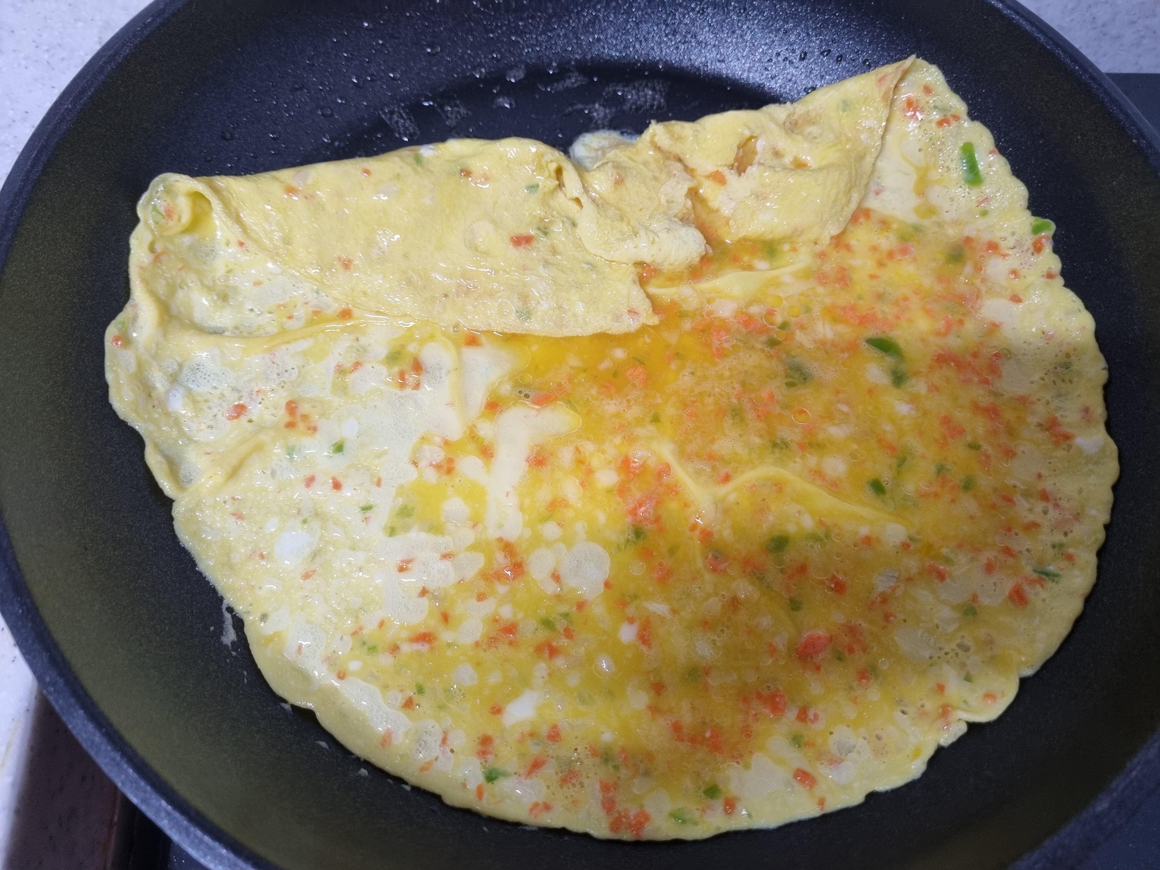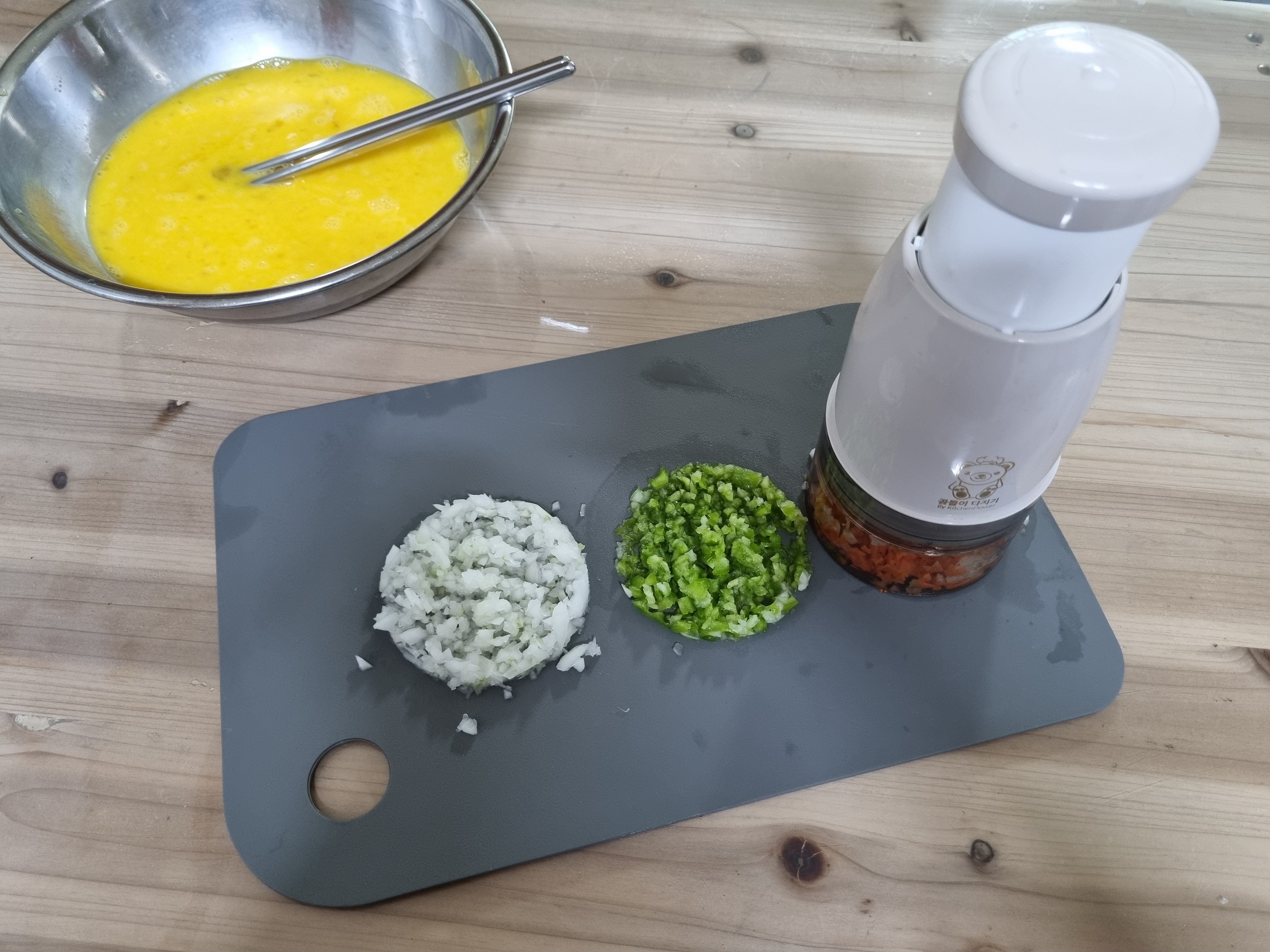 양파, 파프리카, 당근도 준비해요. 계란 10개에 비해 터무니없이 적은 양이예요. 하지만 야채를 많이 넣으면 못 먹을 수도 있으니 최대한 적게 넣어요.