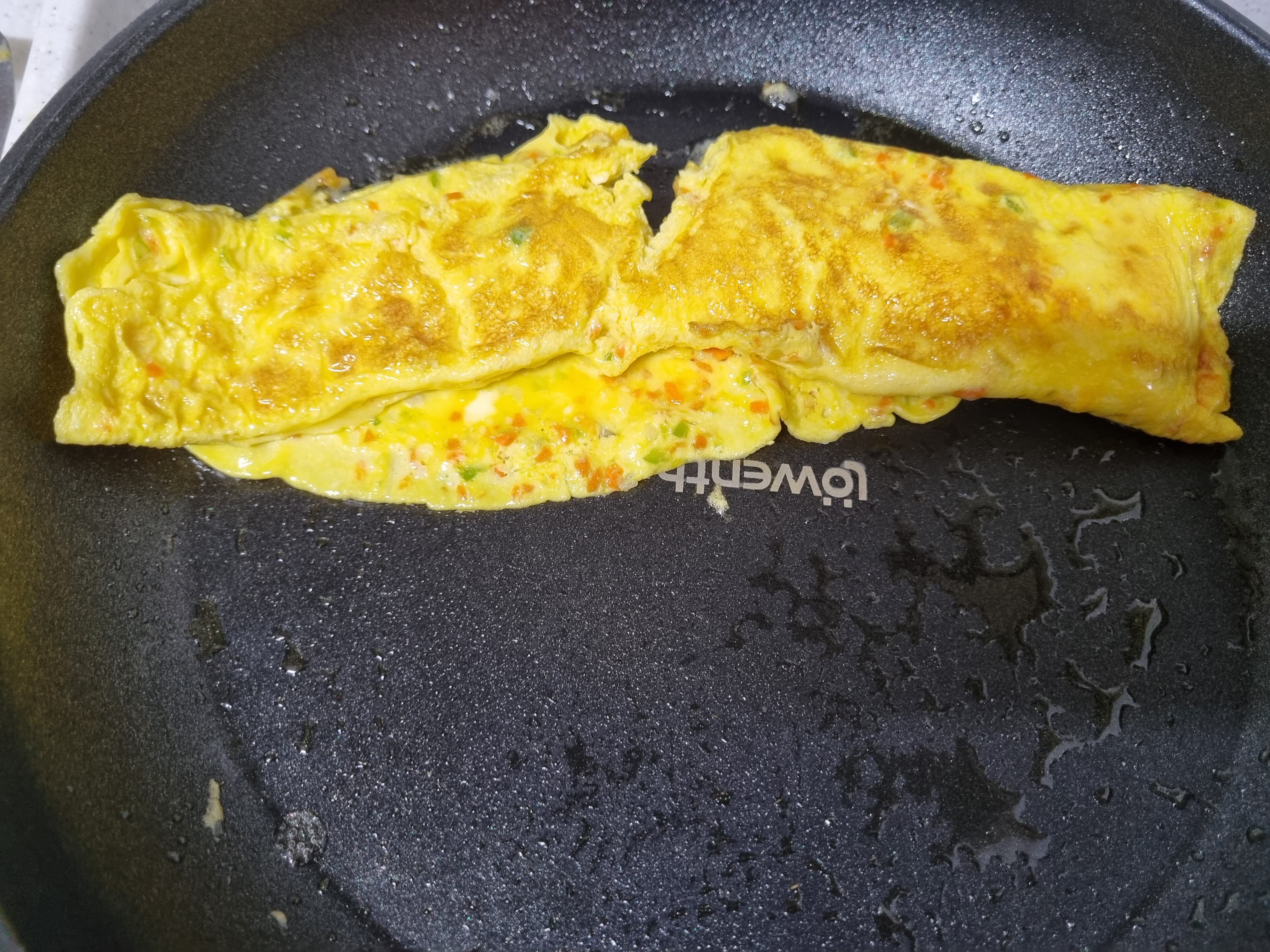 그리고 뒤집어요. 하트예요. 하트 계란말이요. 아주 예쁜 하트 계란말이예요.