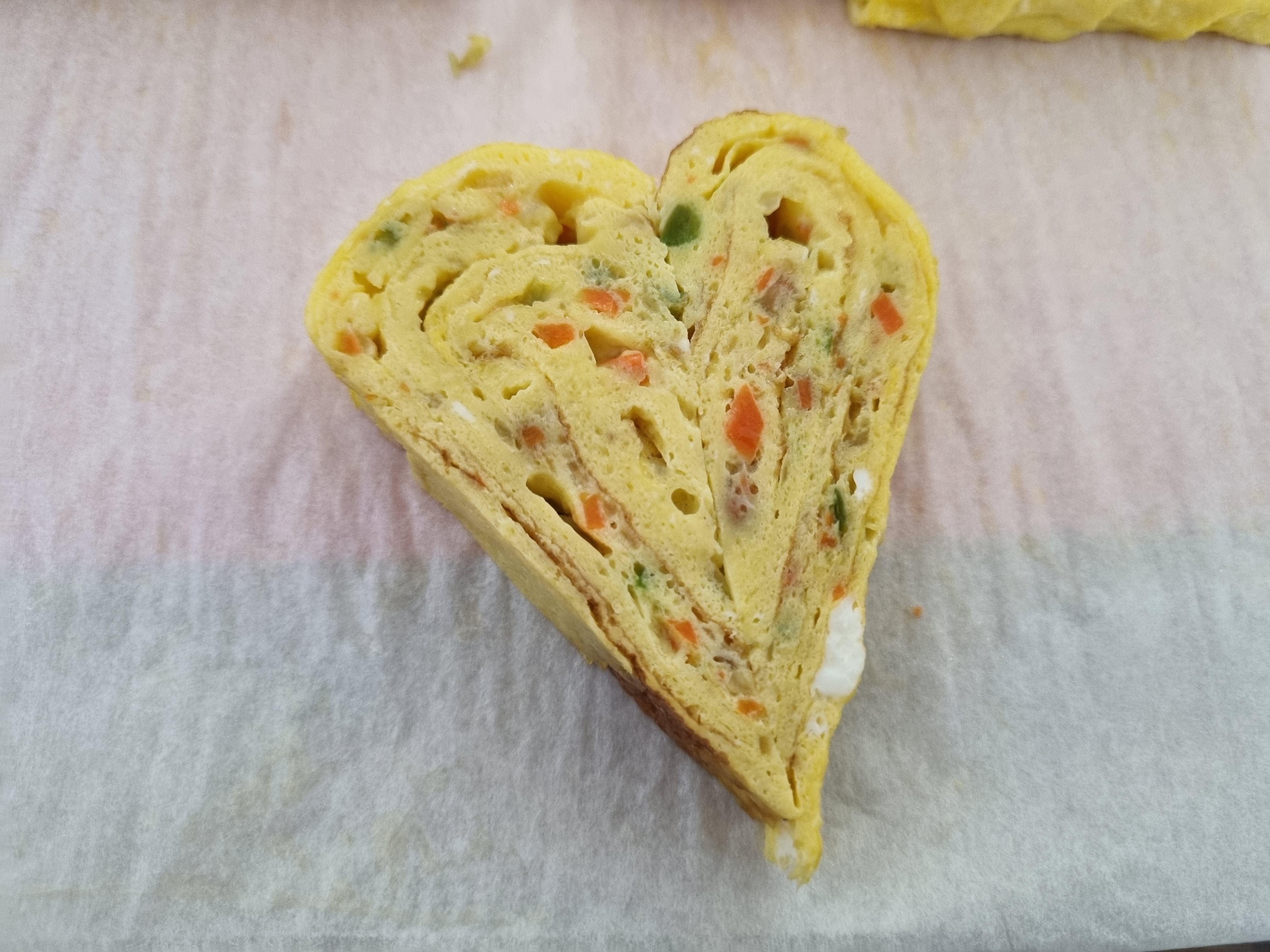 누구나 좋아하는 계란말이를 만들었어요. 그냥 계란말이도 예쁘고 맛있지만 더욱 예쁘게 하트 계란말이를 만들고 사랑 고백도 했어요. 오랜만에 사랑 고백하고 심쿵했어요.