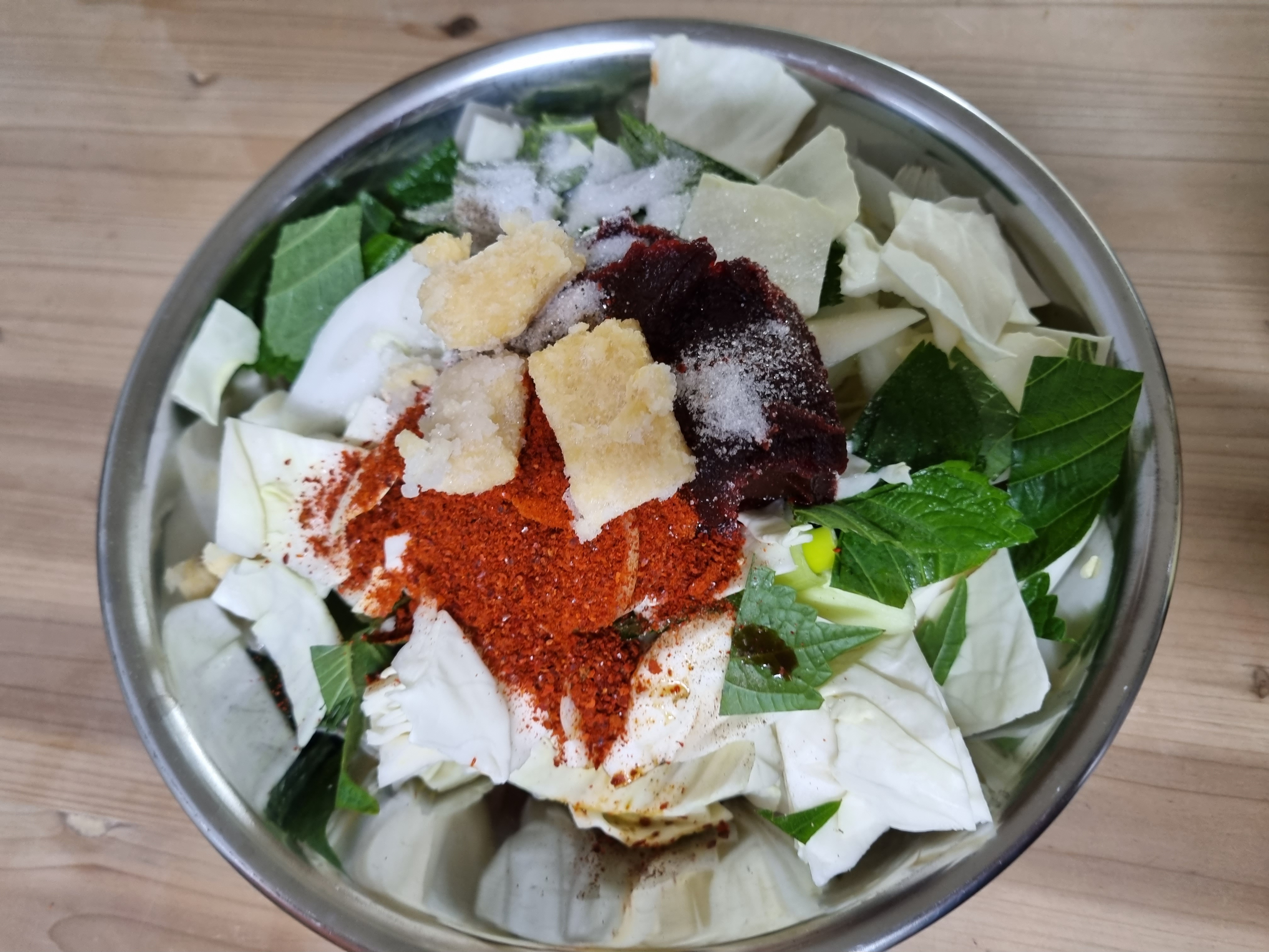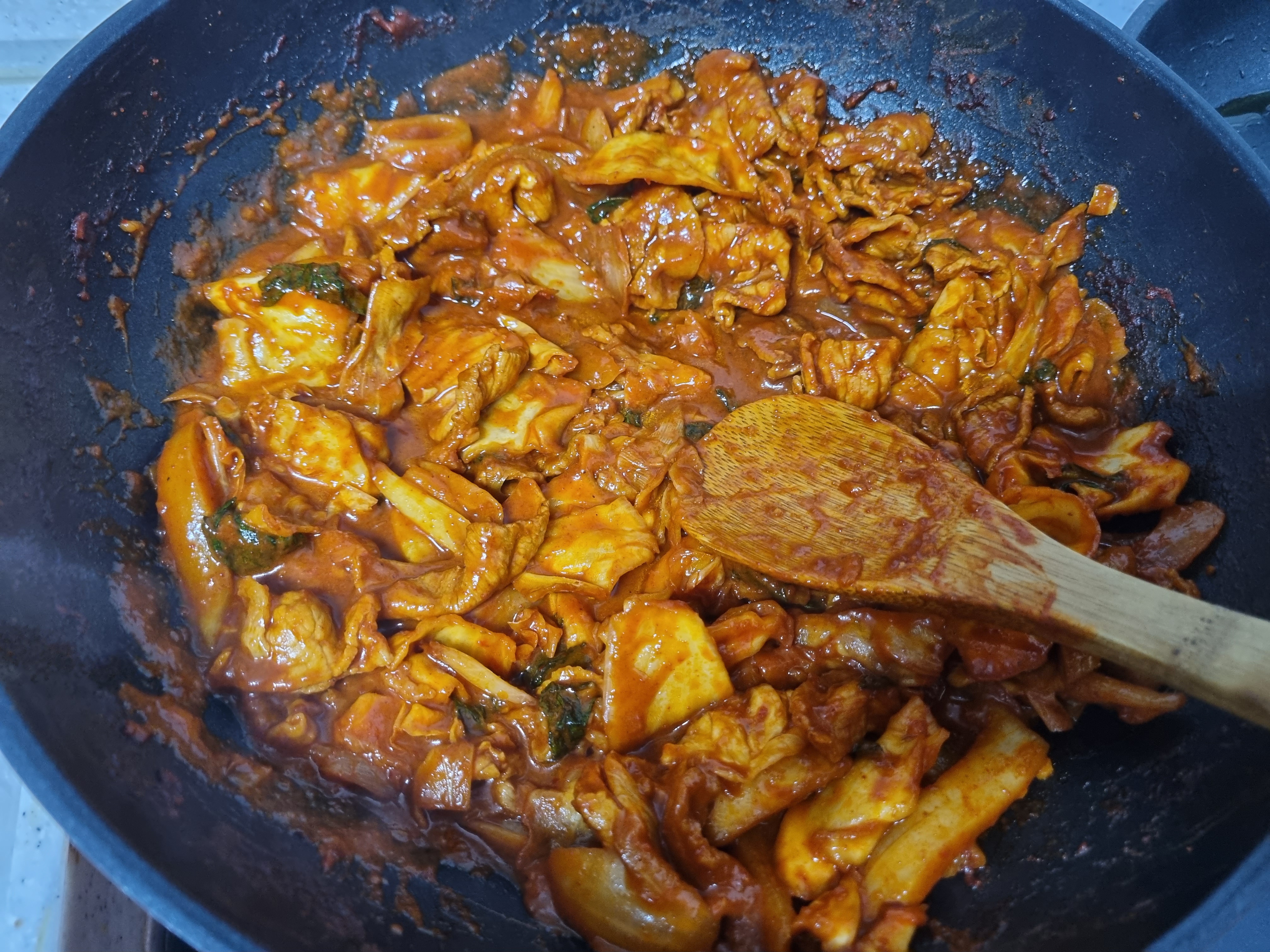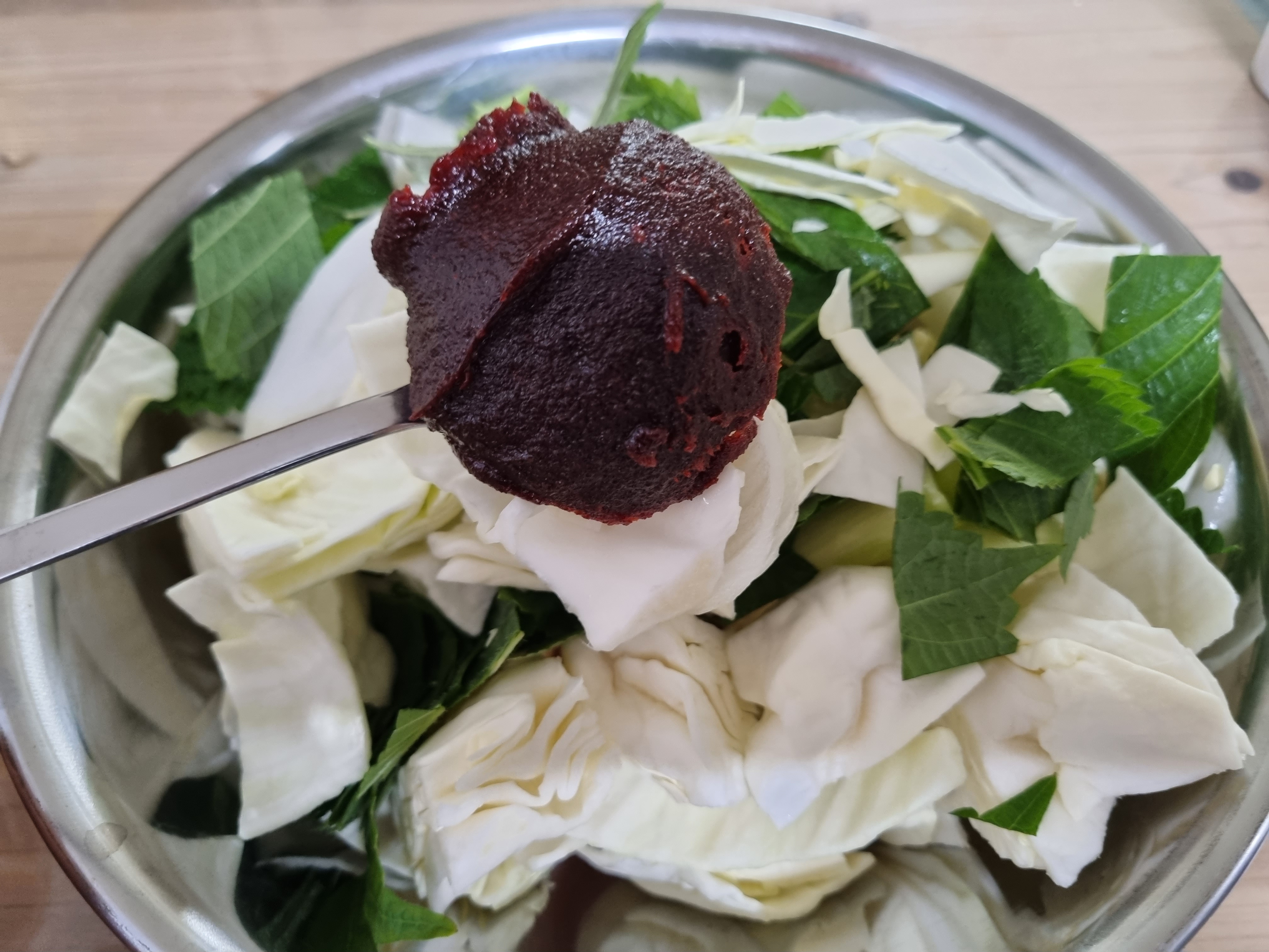 고추장도 넣어요. 3 숟가락 넣었어요.