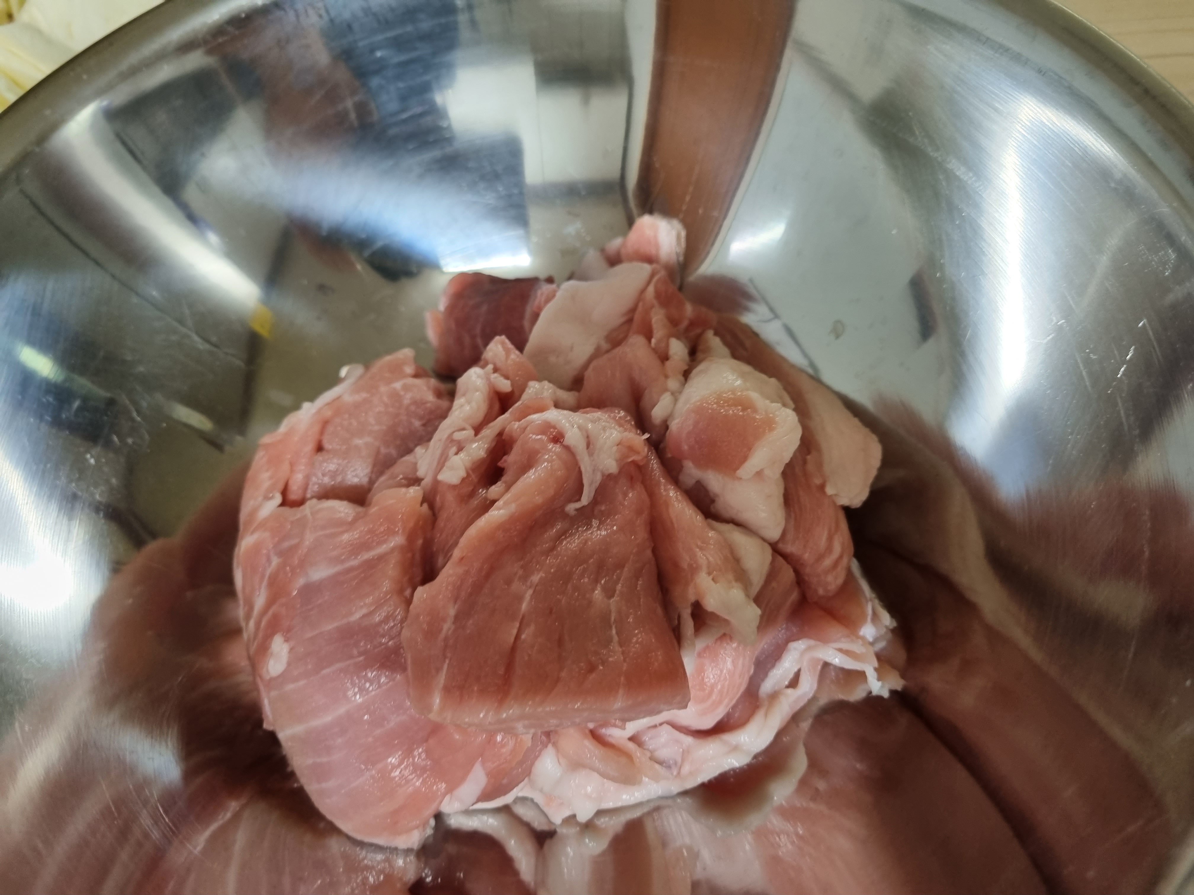 제육볶음을 버무리는데 볼이 너무 작아서 큰 사이즈 볼로 바꿨어요.