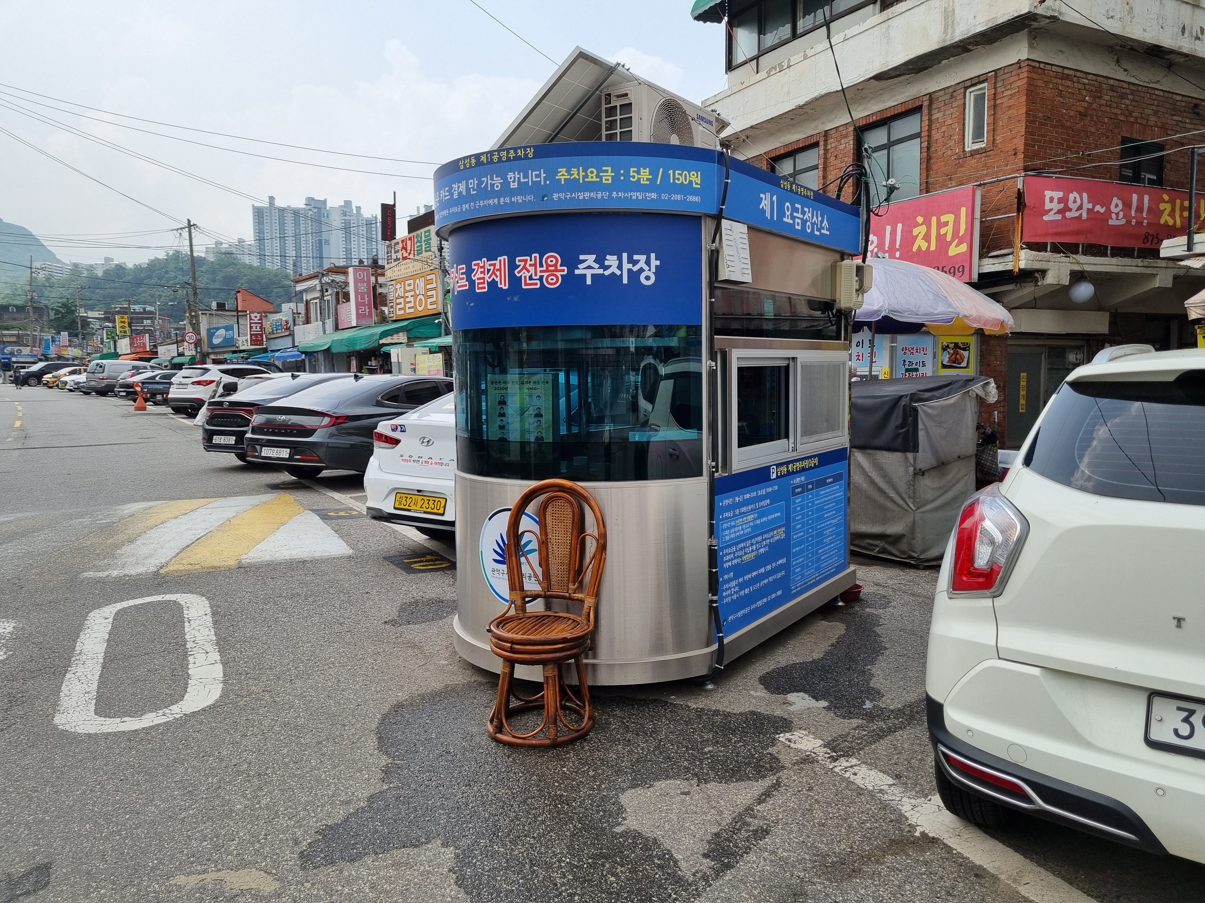 제1공영주차장이 시장 입구에서 가장 가까워요. 걸어서 1분 이내에 시장 입구로 갈 수 있어요. 5분 150원. 주차비도 저렴해요.