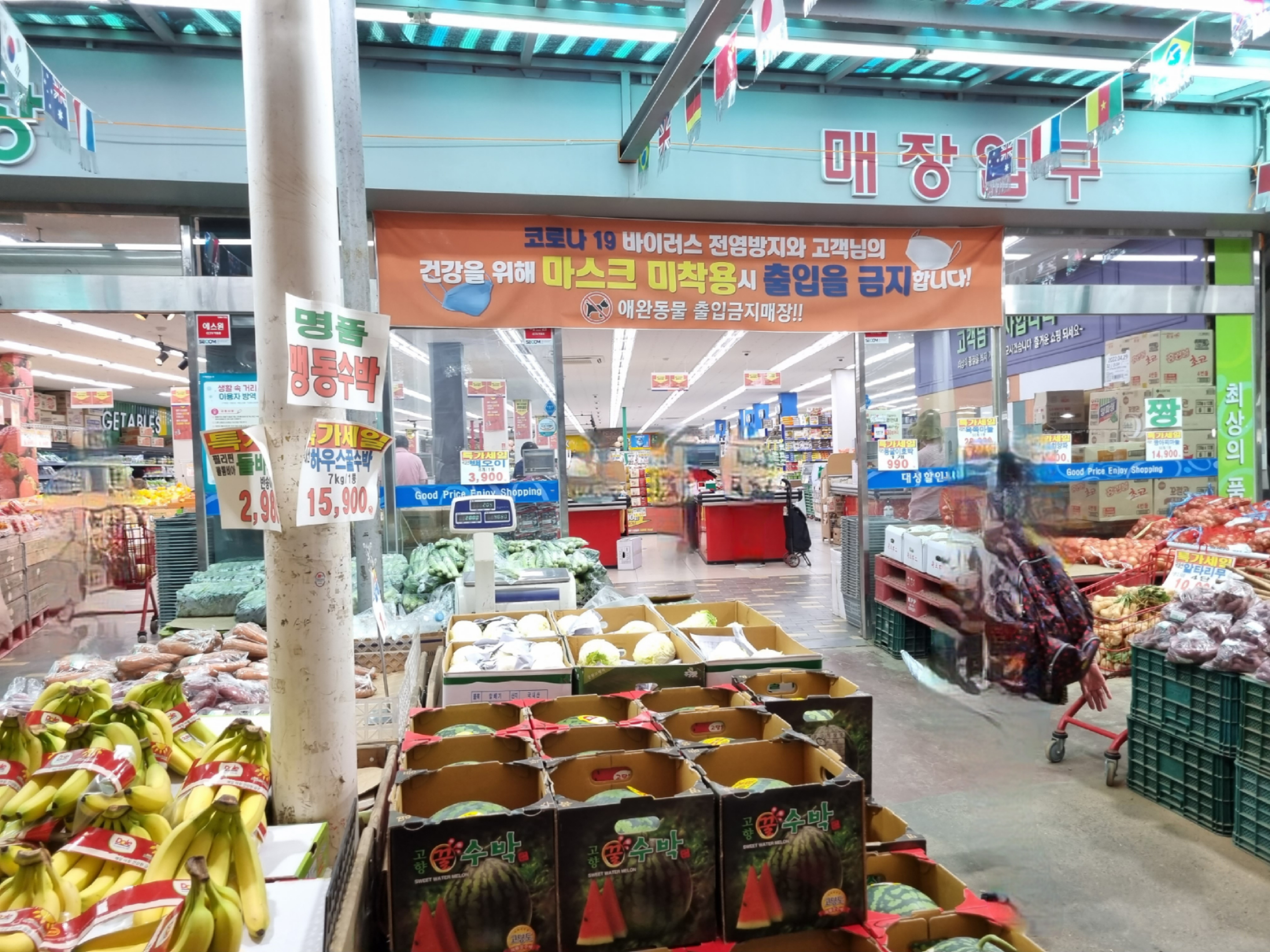 시장 중간쯤에 대형 마트도 있어요. 대형마트도 엄청 커요. 없는 게 없어요. 원만한 업소용 식자재도 다 있어요. 하지만 오뚜기 사각피자는 없어요. 그래서 들어갔다 그냥 나왔어요.