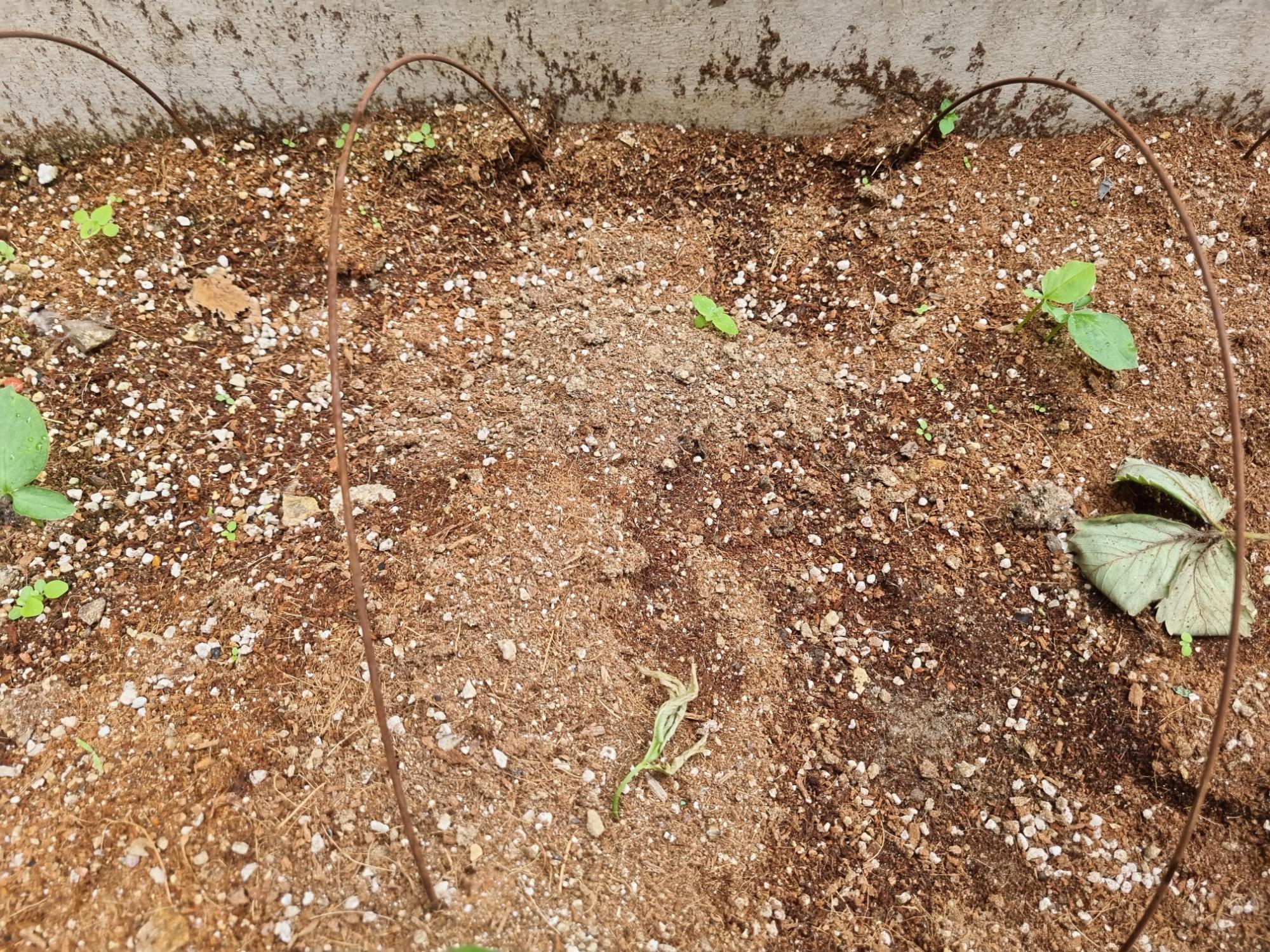 풀을 뽑다 보니 죽은 8번 딸기의 시체가 보여요.