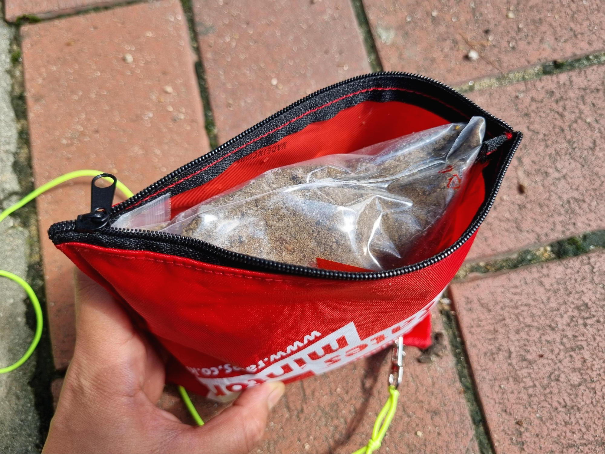 모래가 채워진 지퍼백을 빨간 모래주머니에 넣으면 세팅 완료!