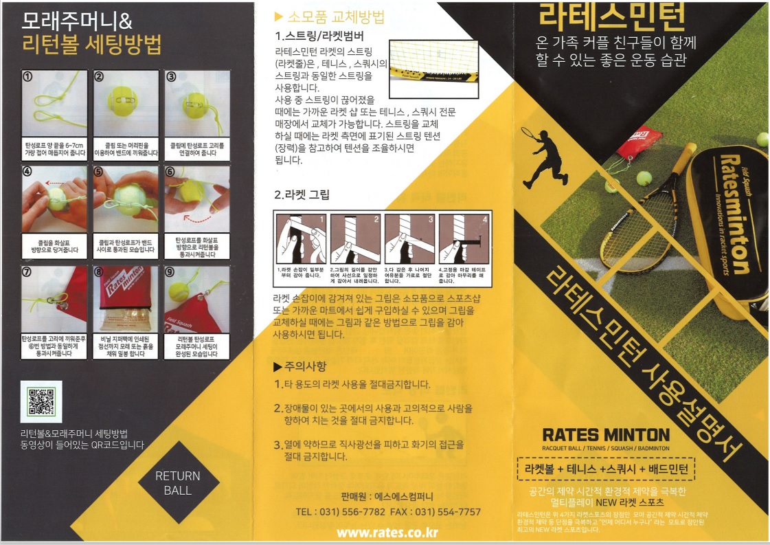 라테스민턴 리턴볼은 '타 용도의 라켓 사용을 절대 금지합니다.'라고 쓰여 있음.