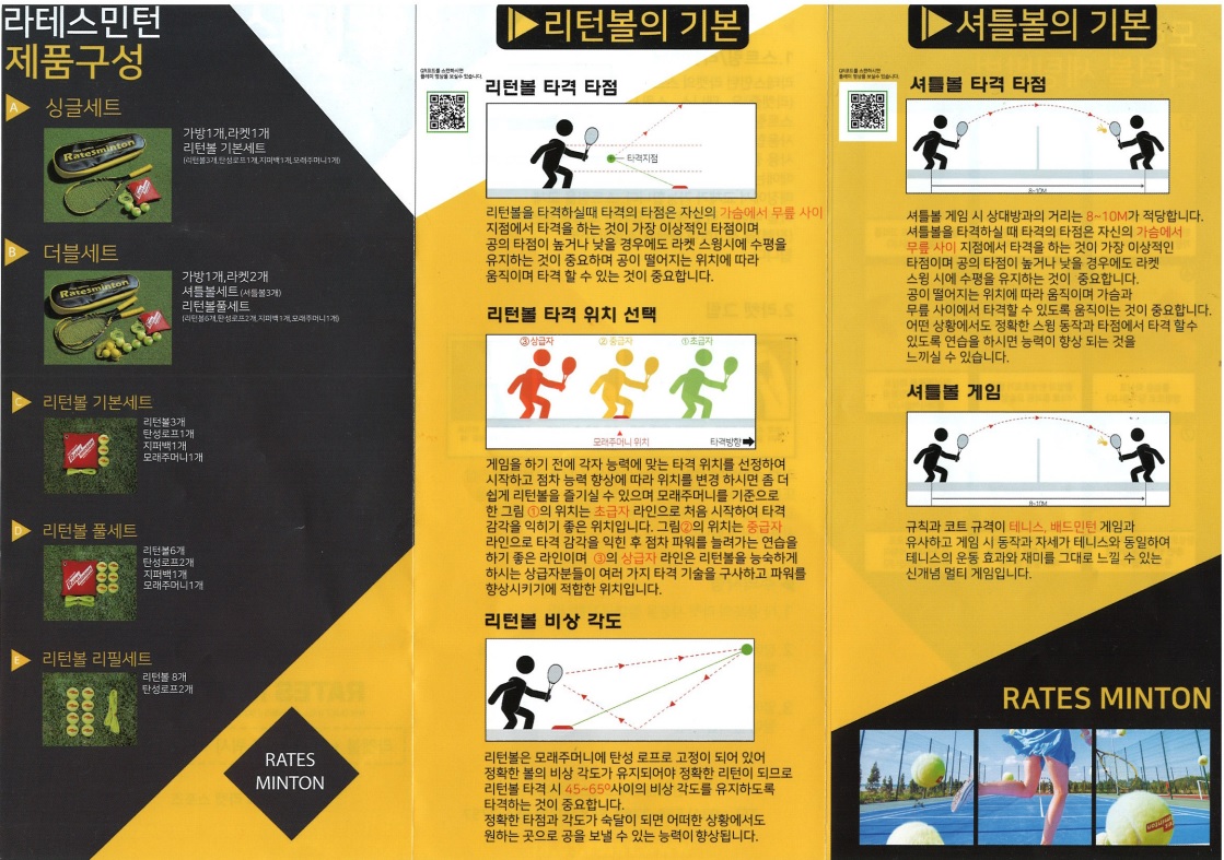 라테스민턴 리턴볼은 '타 용도의 라켓 사용을 절대 금지합니다.'라고 쓰여 있음.