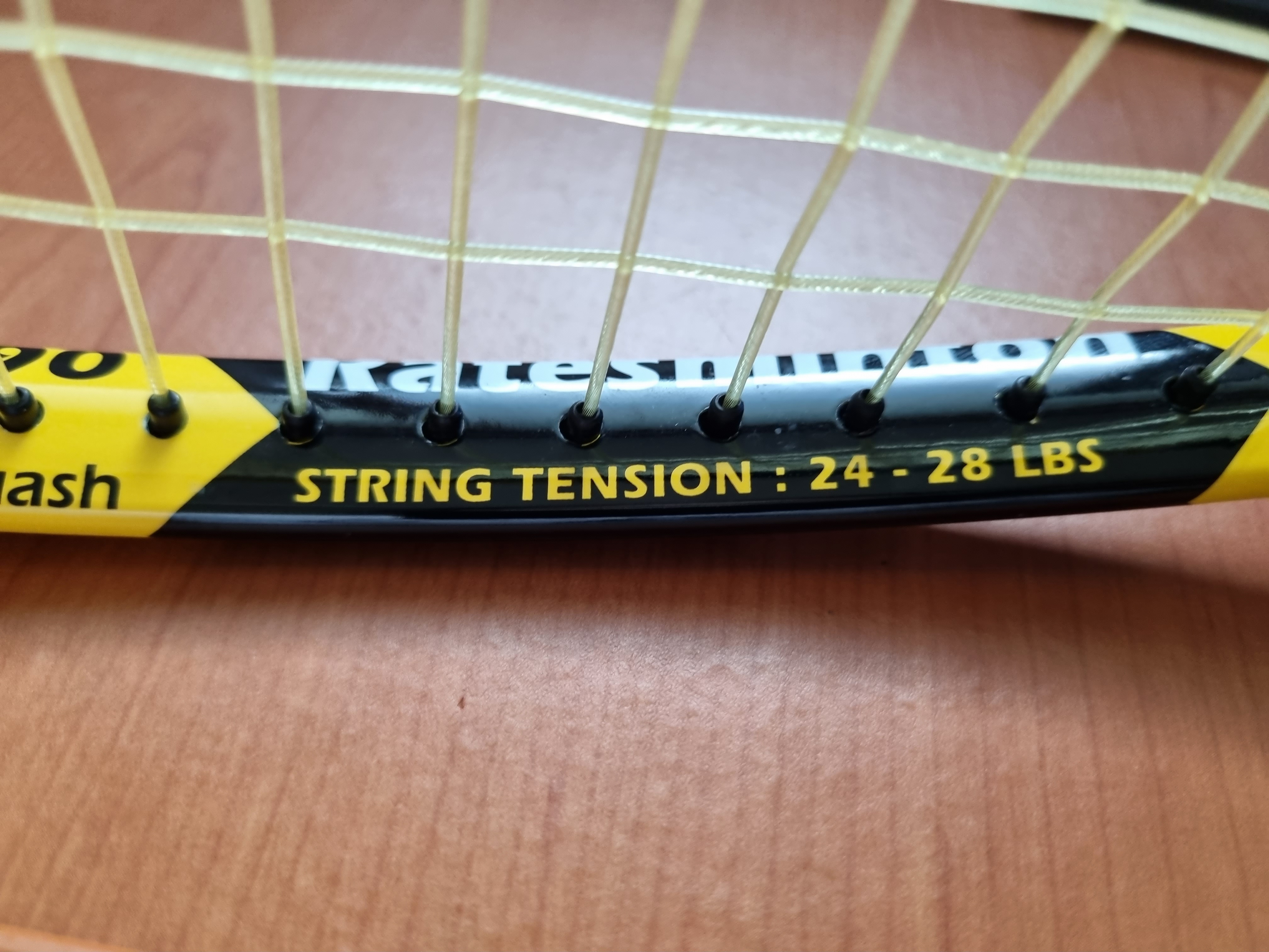 테니스 라켓 스트링 텐션: 알 수 없음. 보통 40~50 LBS로 쓰는 거 같음. 사람마다 다름.