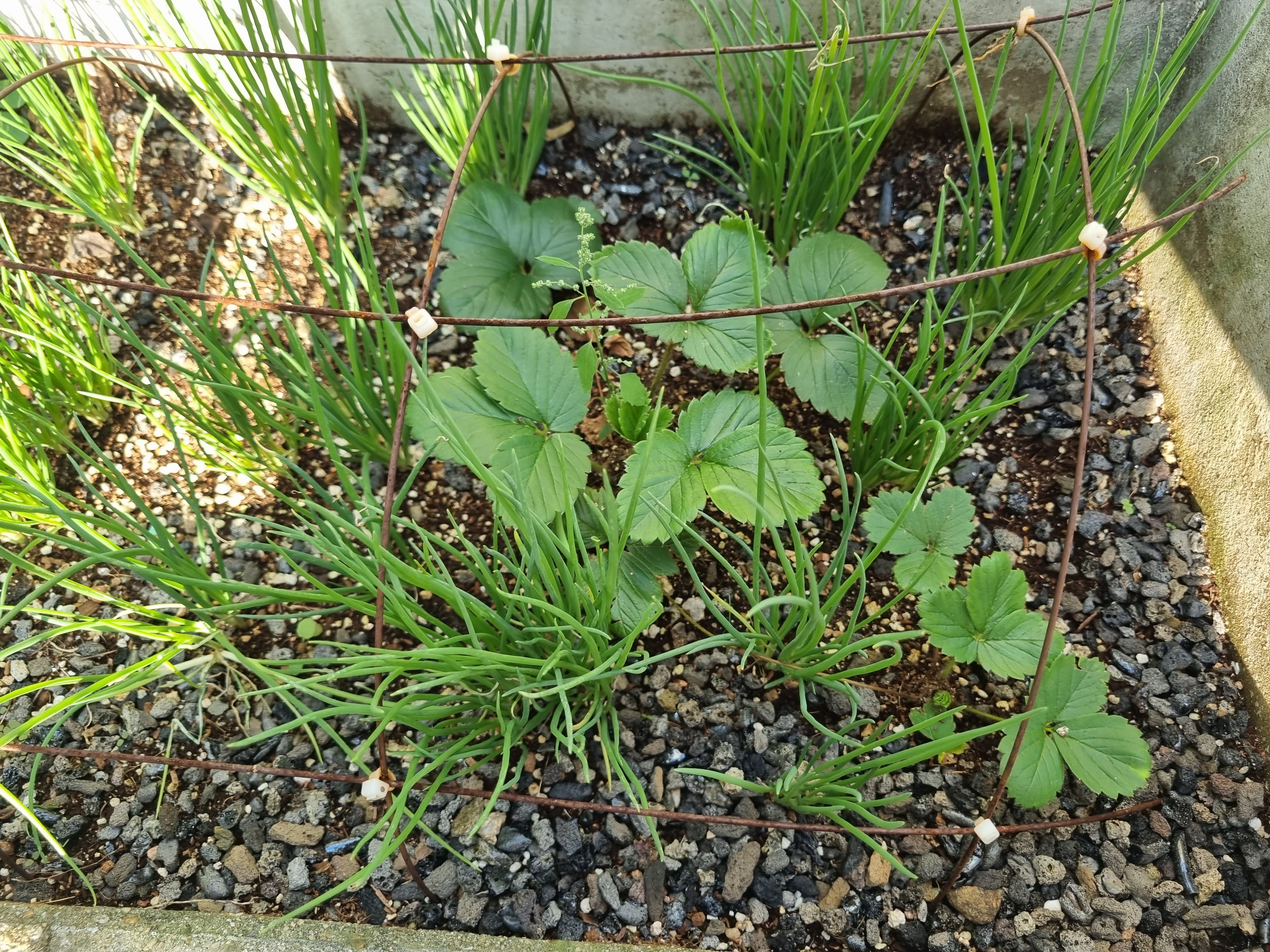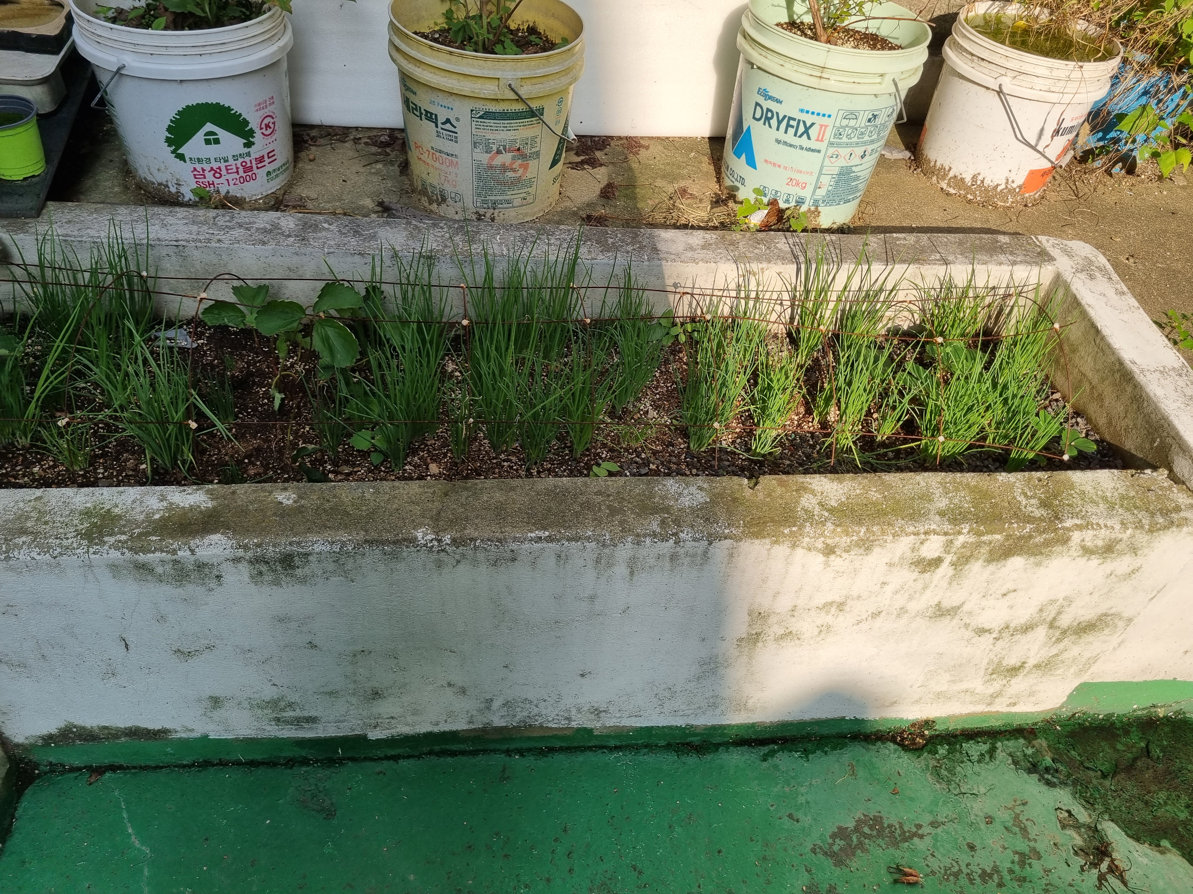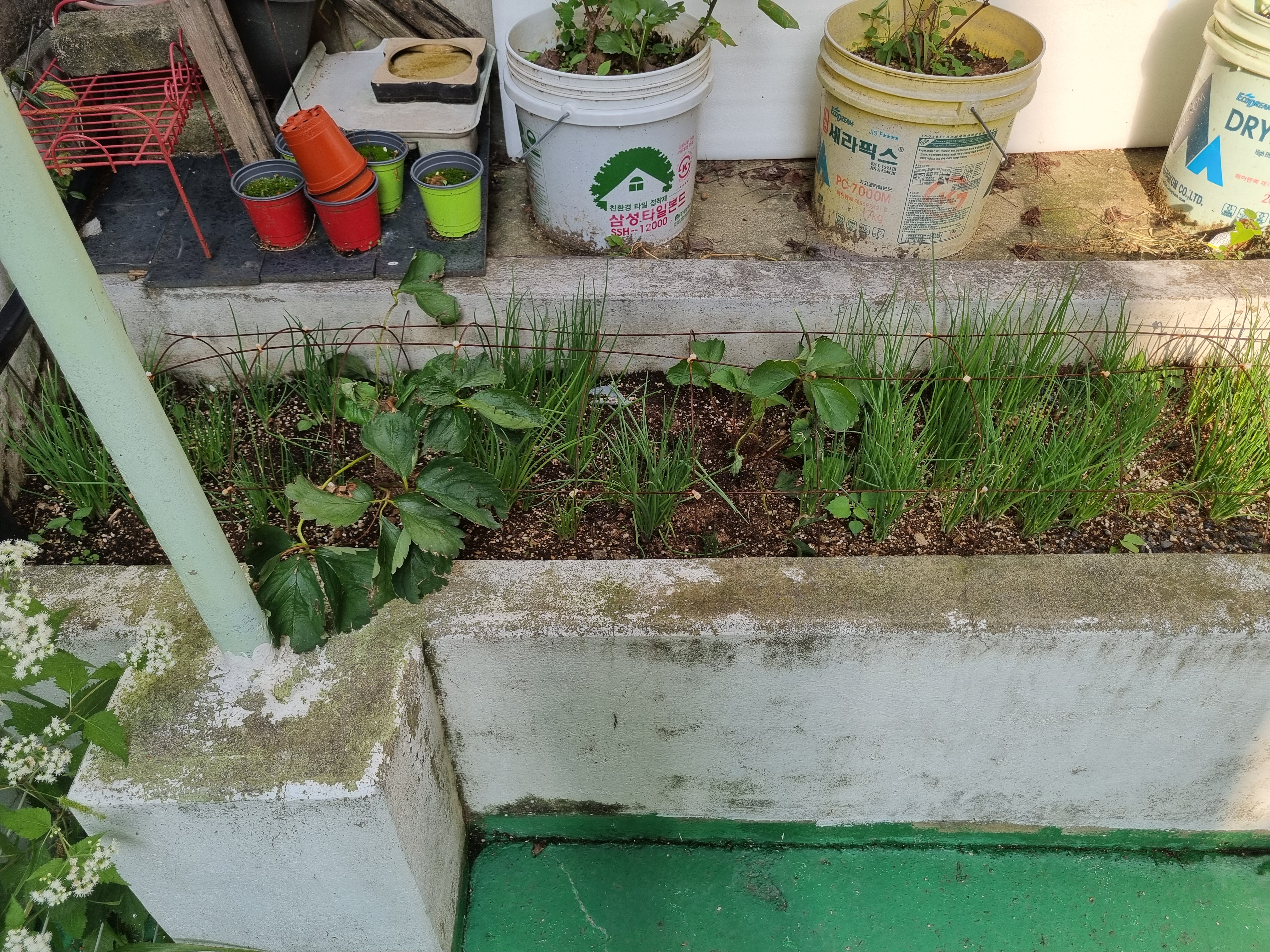 쪽파와 함께 쓰는 딸기밭이 됐어요.
