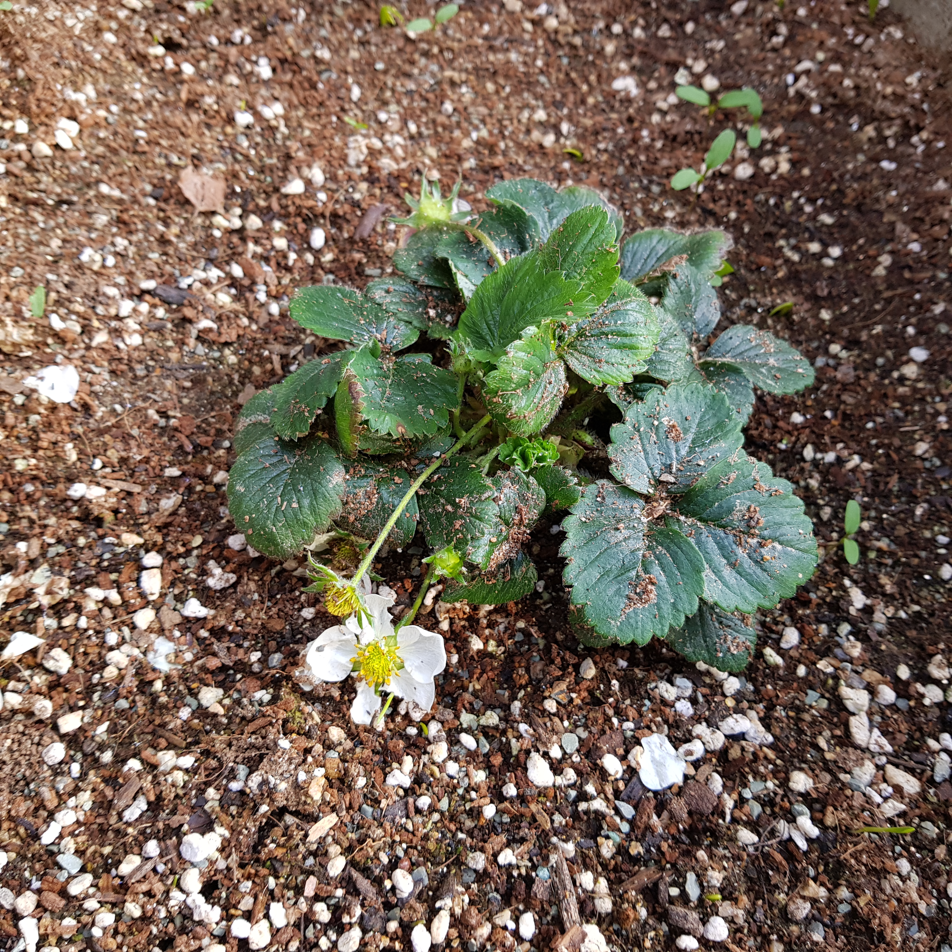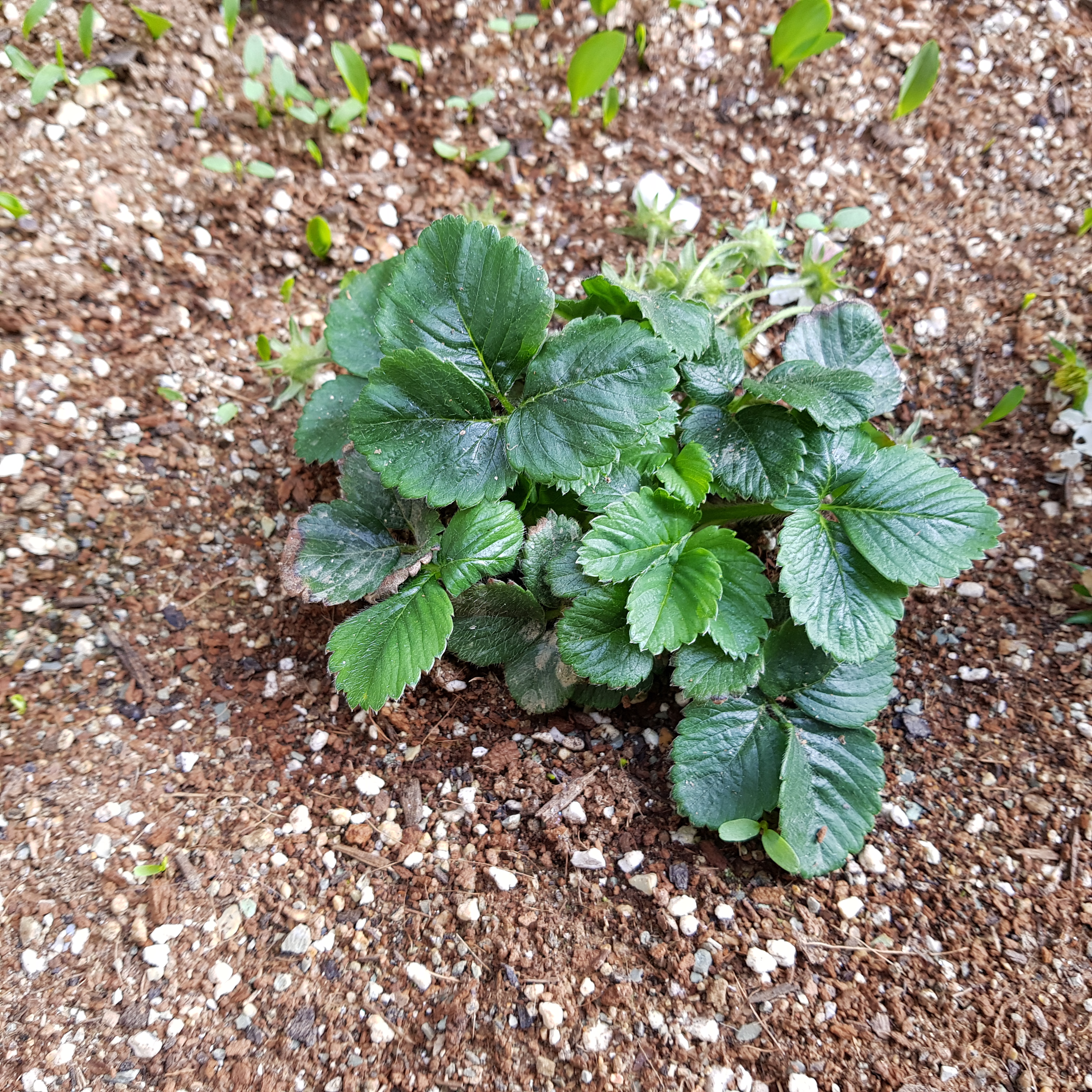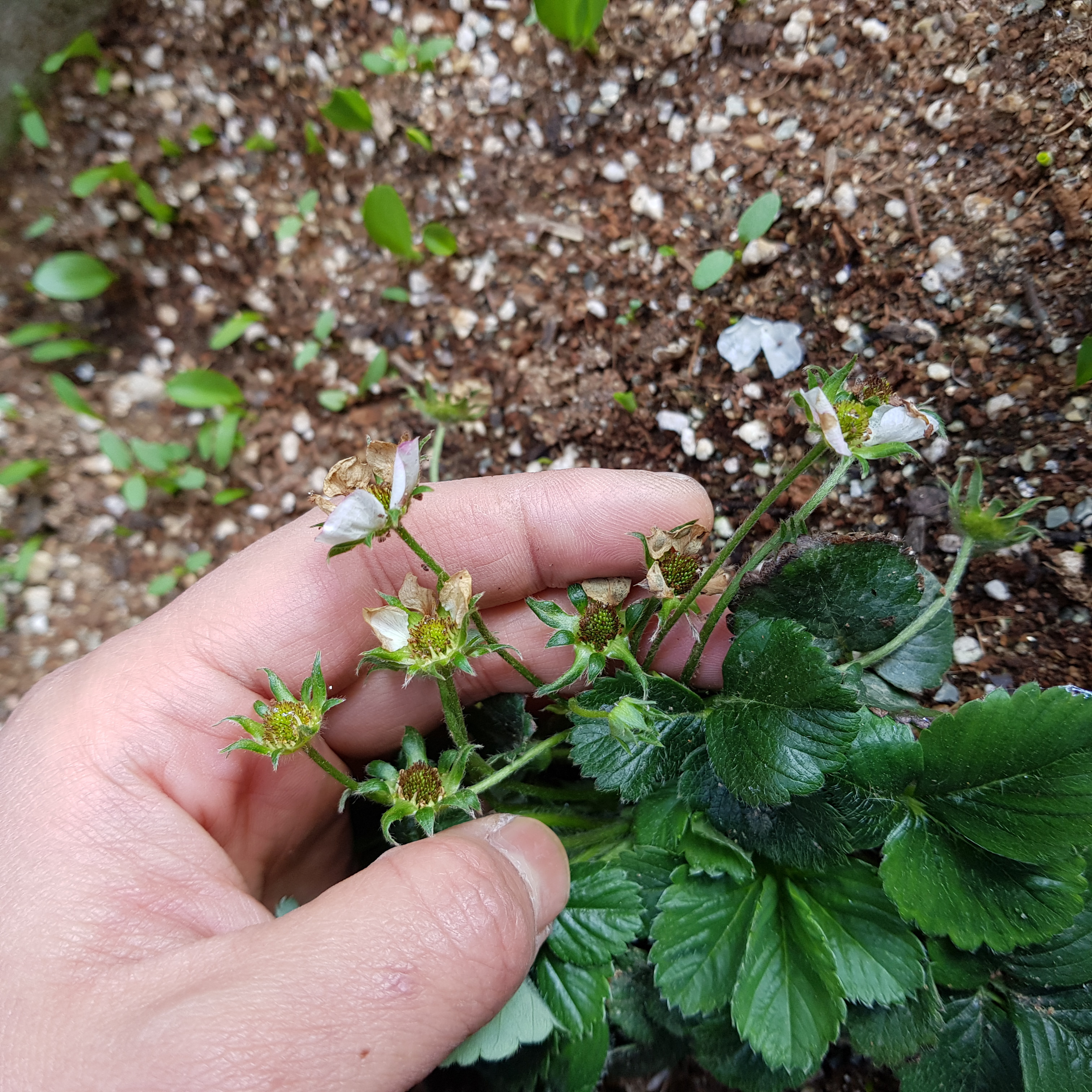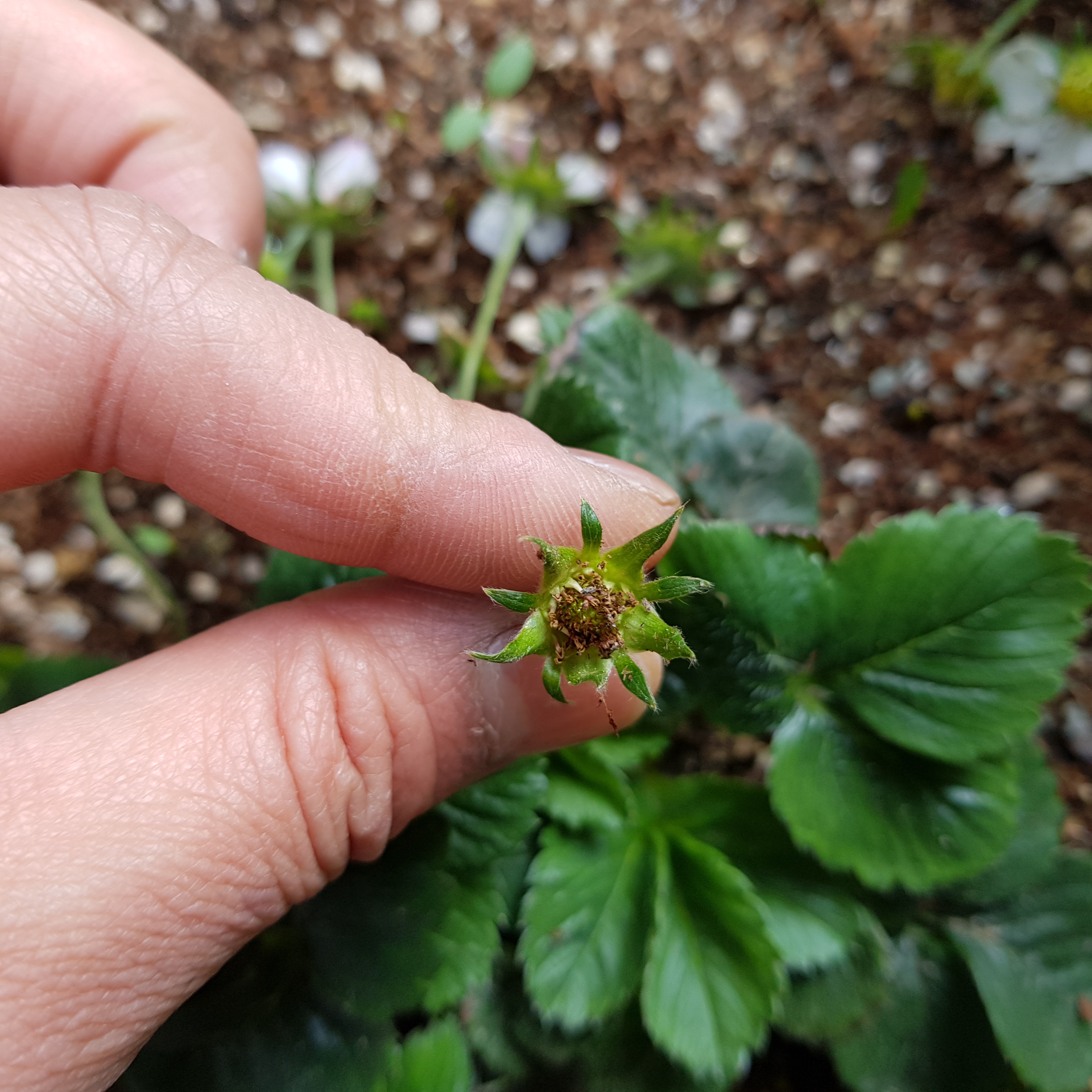 분명 지난주엔 설레었는데 이번 주에 시든 꽃을 보고 있으니 우울하다. 딸기 수정이 안된 것 같아서 속상하기도 하고 딸기가 안 열릴 것 같아서 괜히 키웠나 싶기도 하다. 꽃잎이 떨어지고 남아있는 꽃받침과 꽃턱 상태가 좋지 않다. 아래 사진에 보이듯이 왜 꽃턱이 저렇게 갈색을 띠고 있는 건지 모르겠다. 죽은 건지 아니면 원래 저런 건지. 아무래도 시간을 두고 지켜봐야 될 것 같다.