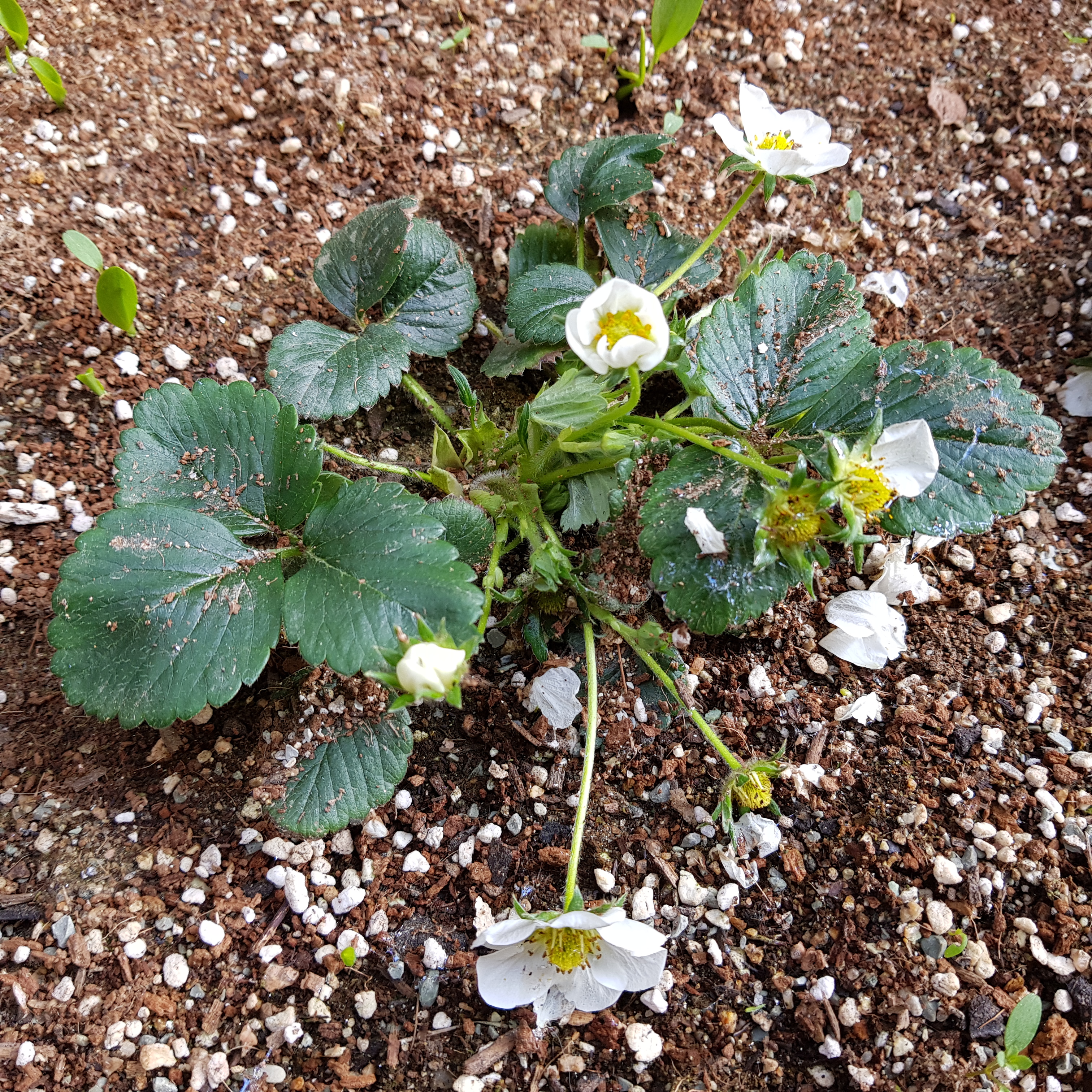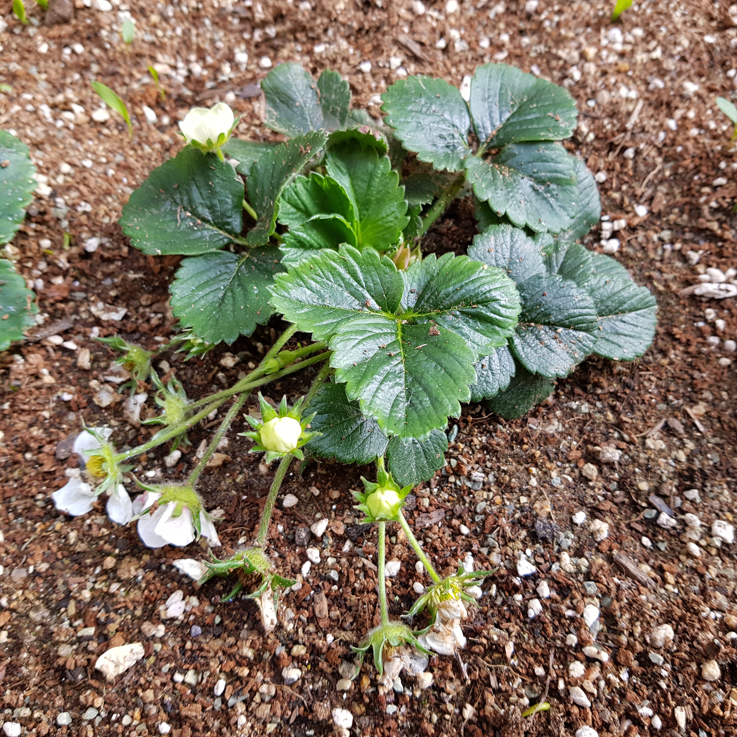 그리고 문제가 하나 또 있다. 꽃이 지기 전에 수정돼야 되는 거 아닌가?! 그동안 날이 추워서 비닐로 꽁꽁 덮어두고 꽃대 흔드는 과정을 이번 주로 미뤘는데 벌써 꽃이 지고 있다. 밖으로 부랴부랴 나가서 비닐도 걷고 딸기 상태를 확인했다.
