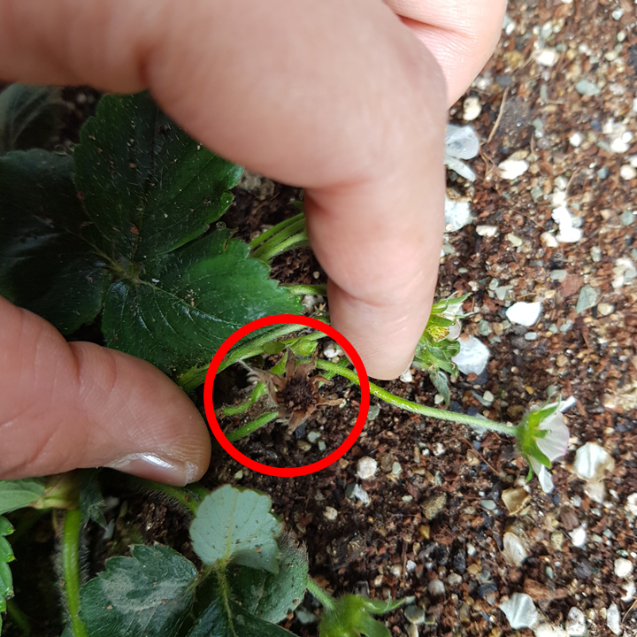 5주 노지 딸기 수정 방법 지는꽃 시든 꽃 구분 (4월4일~4월10일, 야간6º이상, 주간 17º이하)