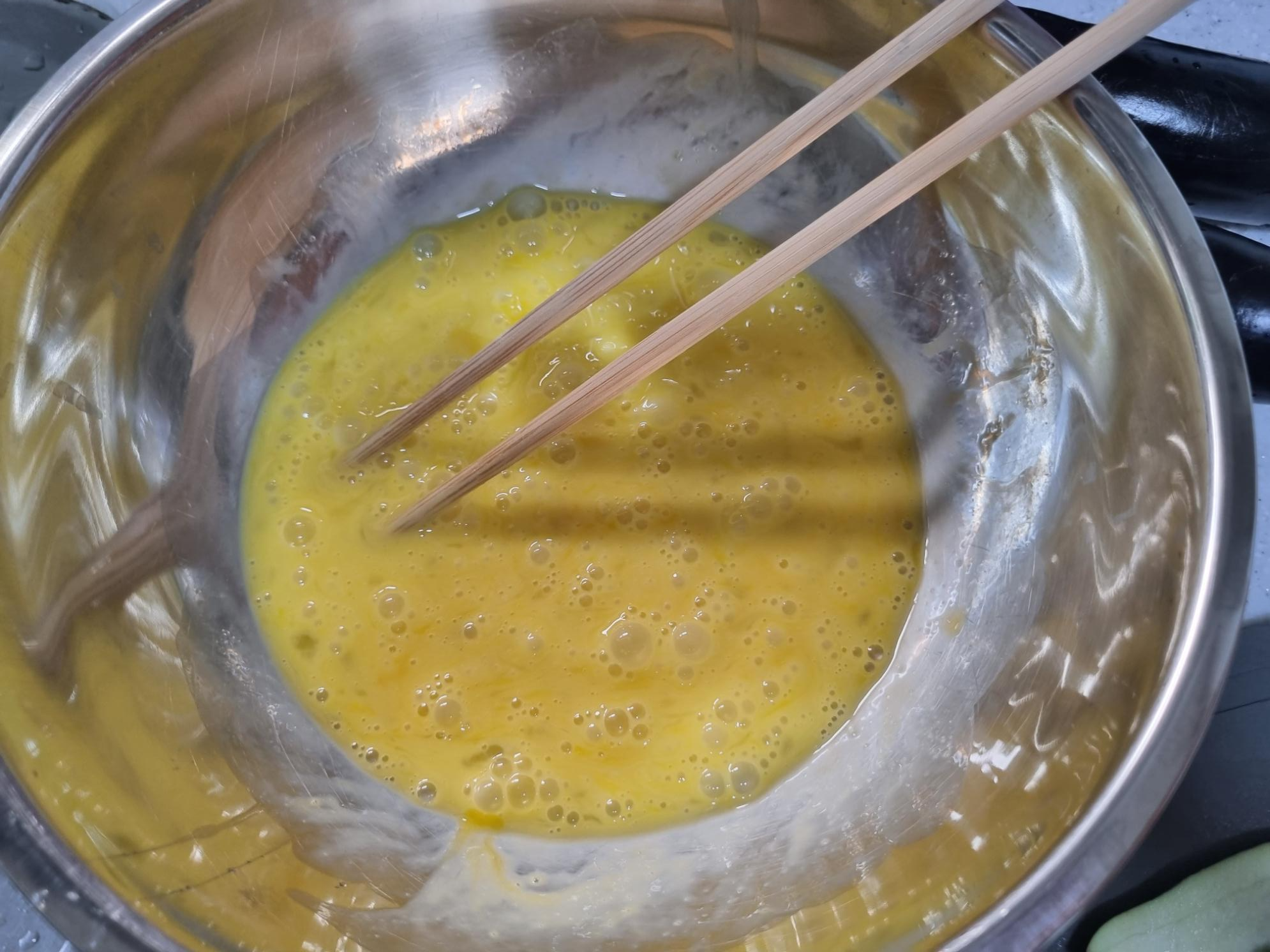 가지 1개, 계란