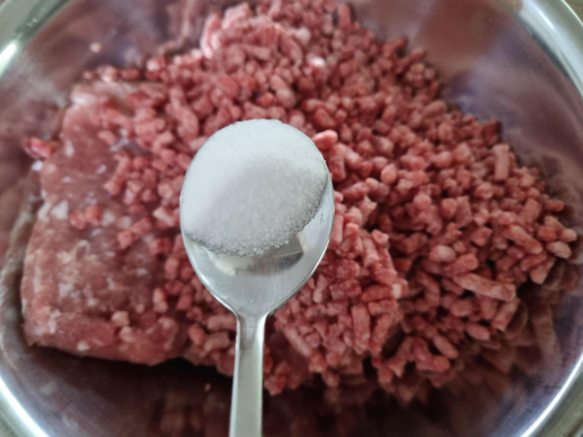 고기가 아직 얼어 있어요. 고기가 녹기를 기다리는 동안.