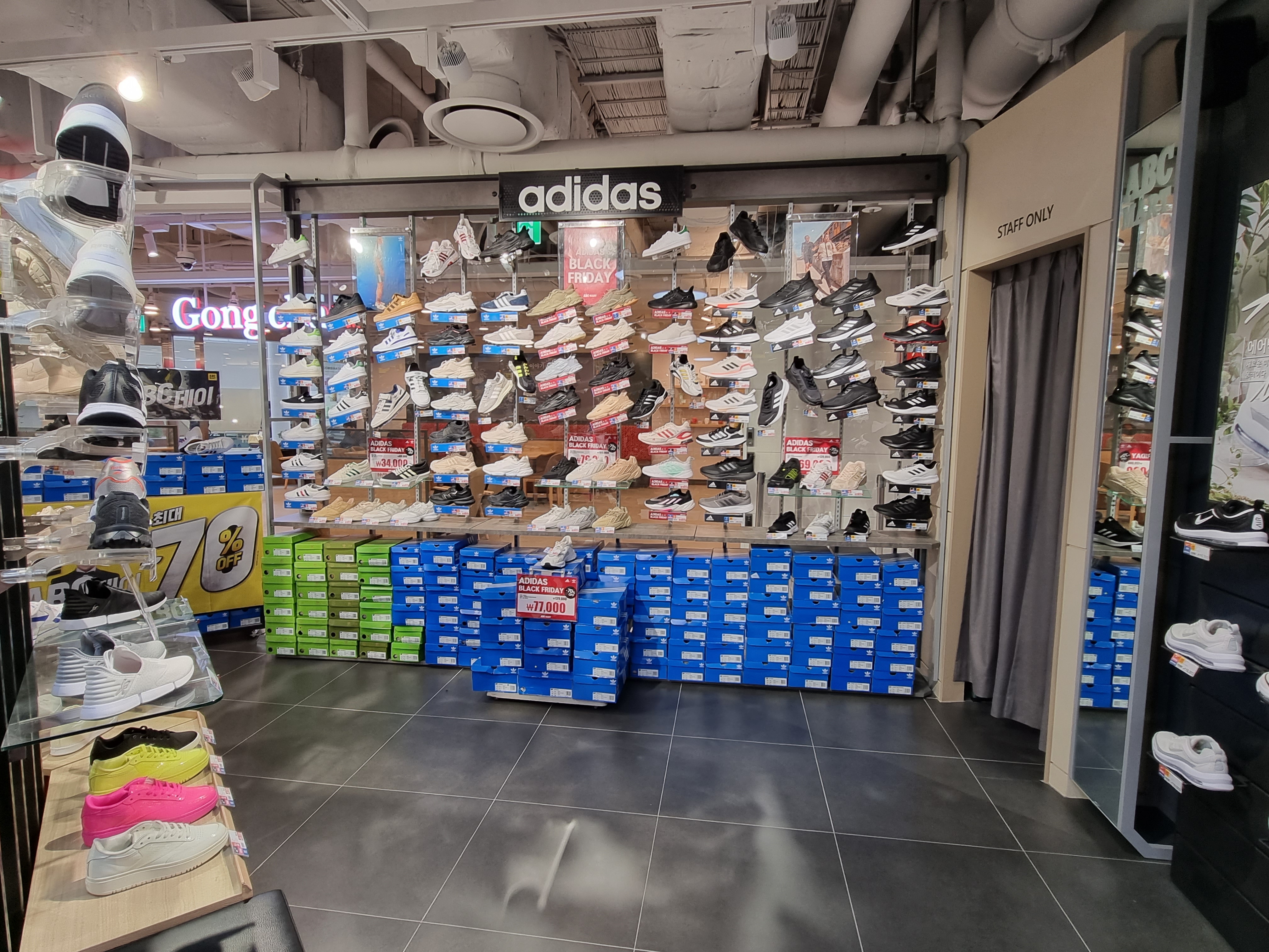 아디다스. 사실 아디다스 별로 안 좋아해요. 신발이 불편해요.