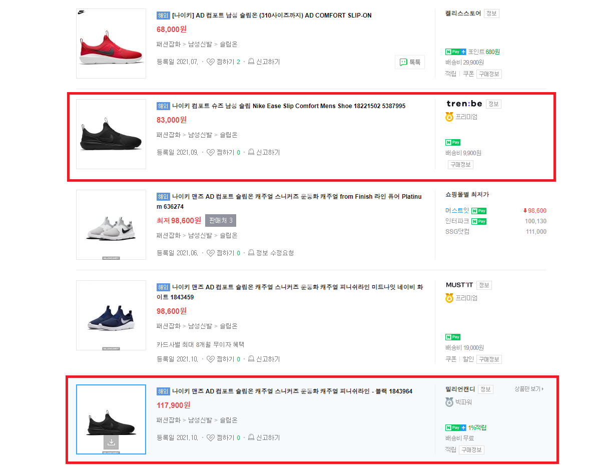 집에 와서 나이키 AD 컴포트를 검색했어요. 어? 올블랙도 있어요. 하지만 올블랙은 해외배송이라 쫌 그러네요.