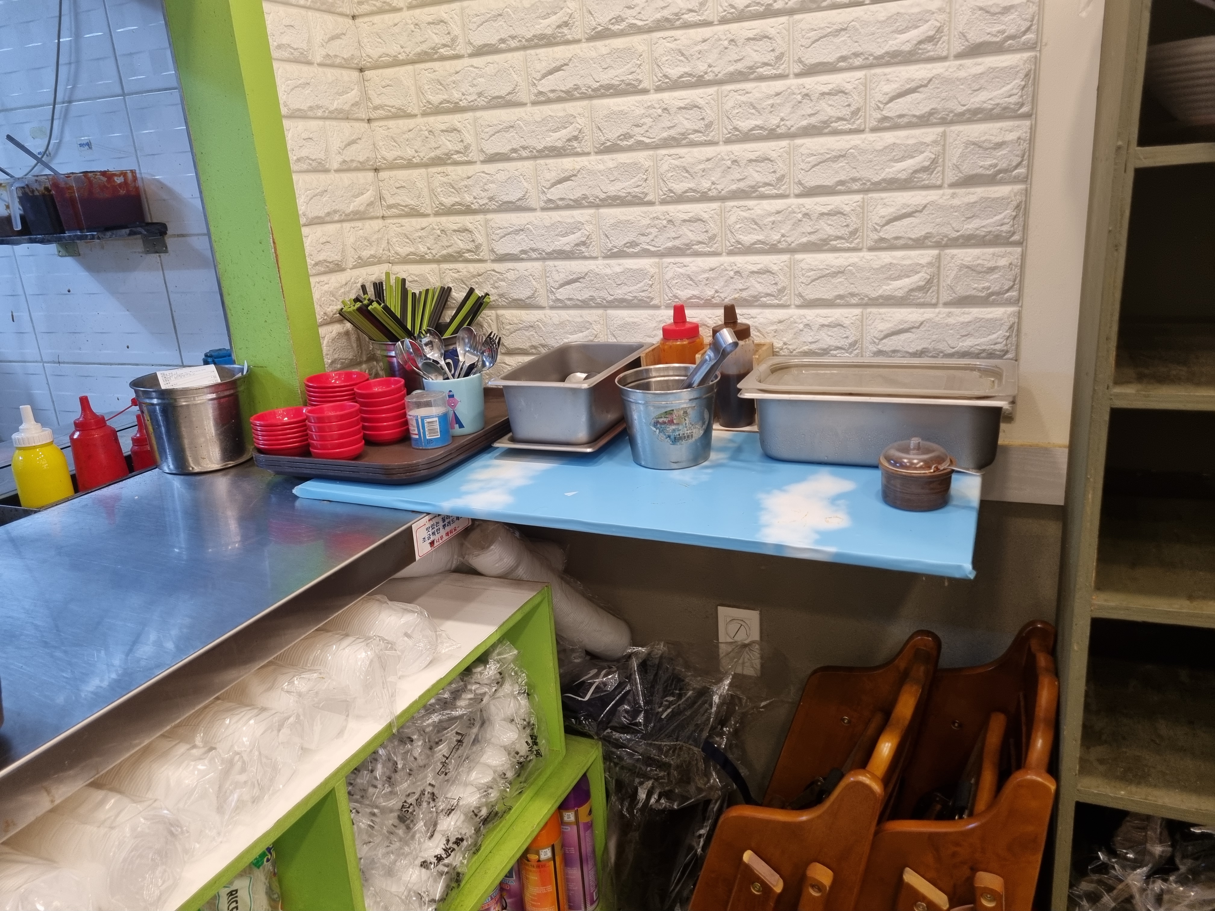 여기는 퇴식구예요. 직원이 한 명이라 그런지 모든 게 다 셀프예요. 하지만 상관없어요. 가격도 저렴하고 맛도 좋으니깐요.