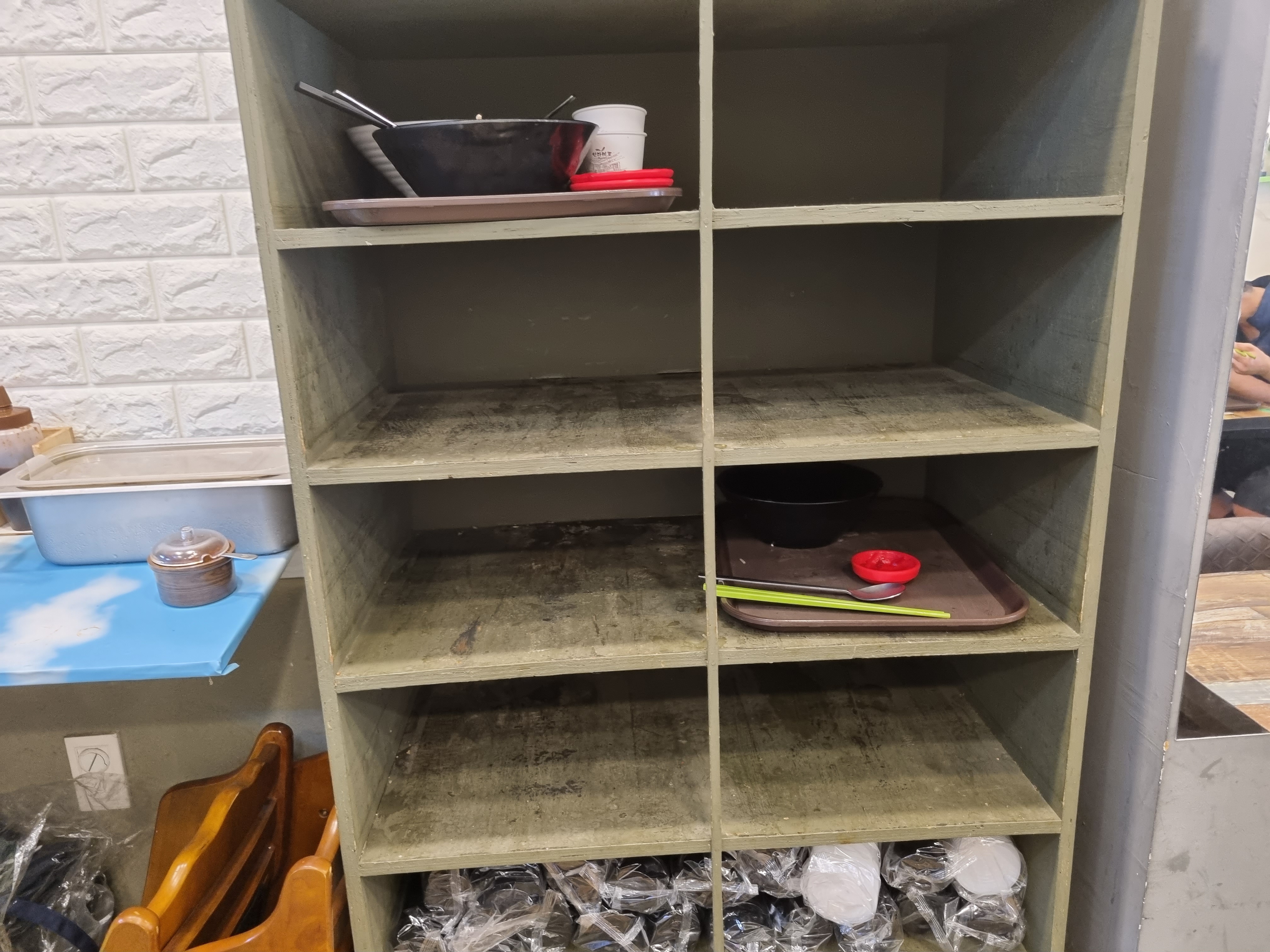 여기는 퇴식구예요. 직원이 한 명이라 그런지 모든 게 다 셀프예요. 하지만 상관없어요. 가격도 저렴하고 맛도 좋으니깐요.