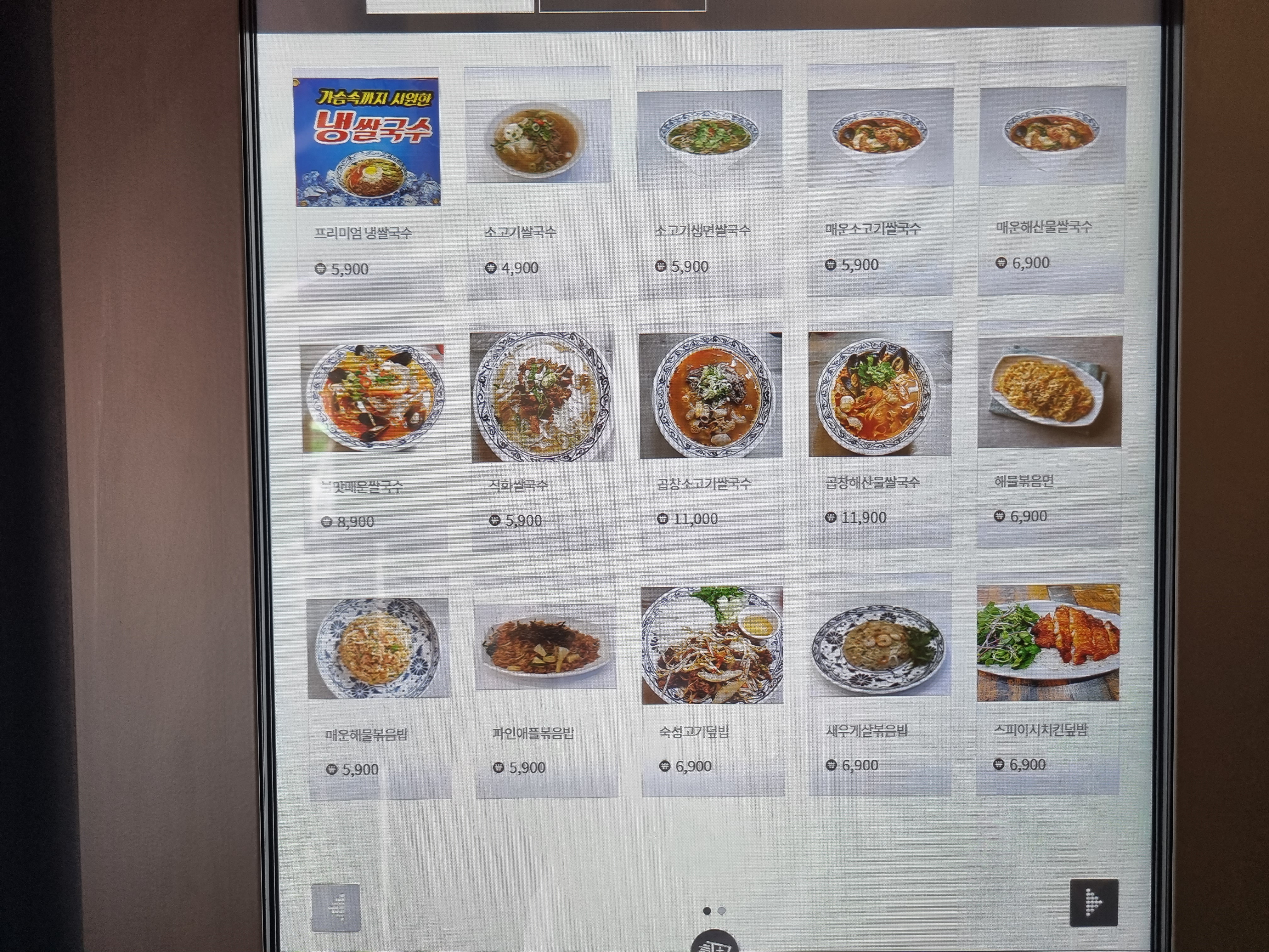 키오스크. 일하시는 분이 한분 계셨어요. 한국인은 아닌 듯 보였어요. 그리고 조리 시간이 매우 짧아서 오래 기다리지 않아도 돼요. 너무 좋아요. 빨리 쌀국수. 빨리 먹고 싶어요.