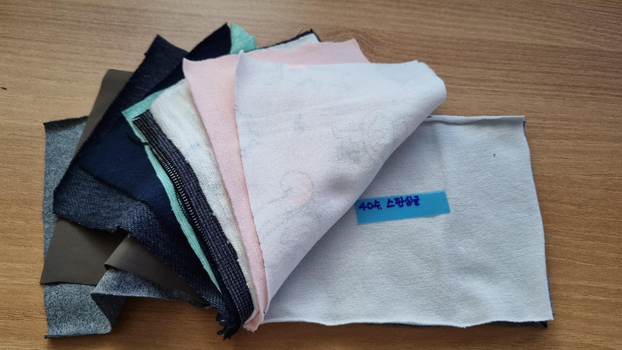 원단의 종류는 생각하는 것보다 훨씬 많고 너무 다양해요. 짜임 방법에 따라서 재료에 따라서 두께에 따라서. 실패하지 않고 의류 원단을 고르는 방법은 사용하는 원단은 무조건 한 조각씩 잘라서 스와치를 만드세요. 그리고 다음 원단 구매할 때 내가 갖고 있는 원단 스와치와 비교하세요. 혼용률, 두께, 짜임 방식 등을 비교하고 구매하면 실패할 확률을 크게 낮출 수 있어요.