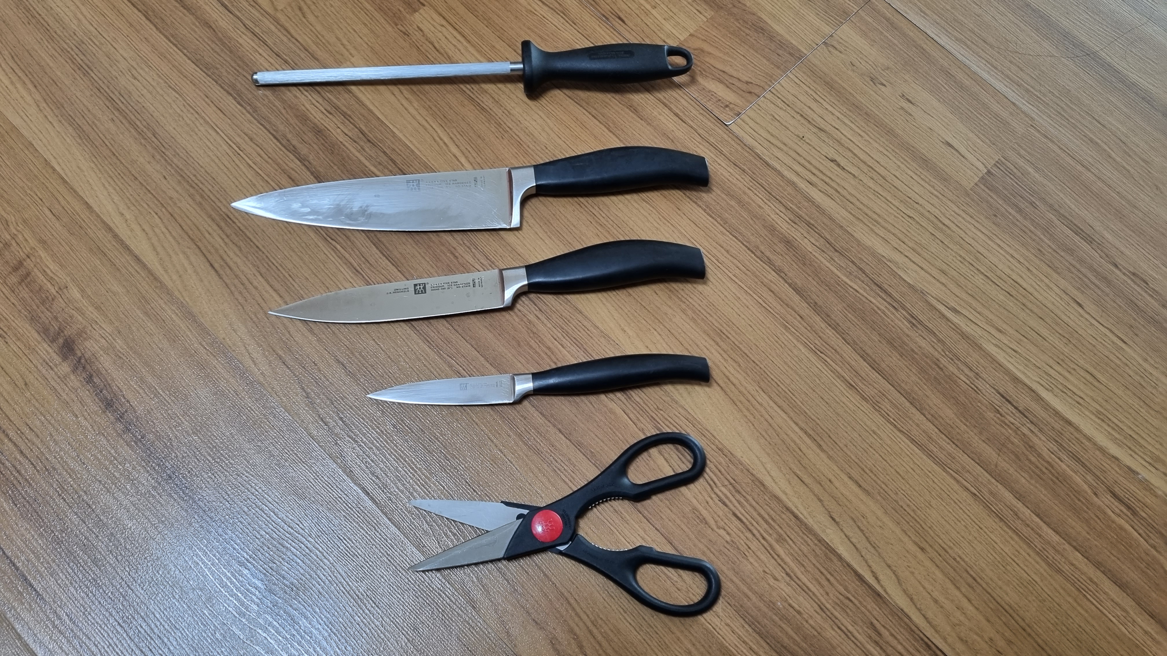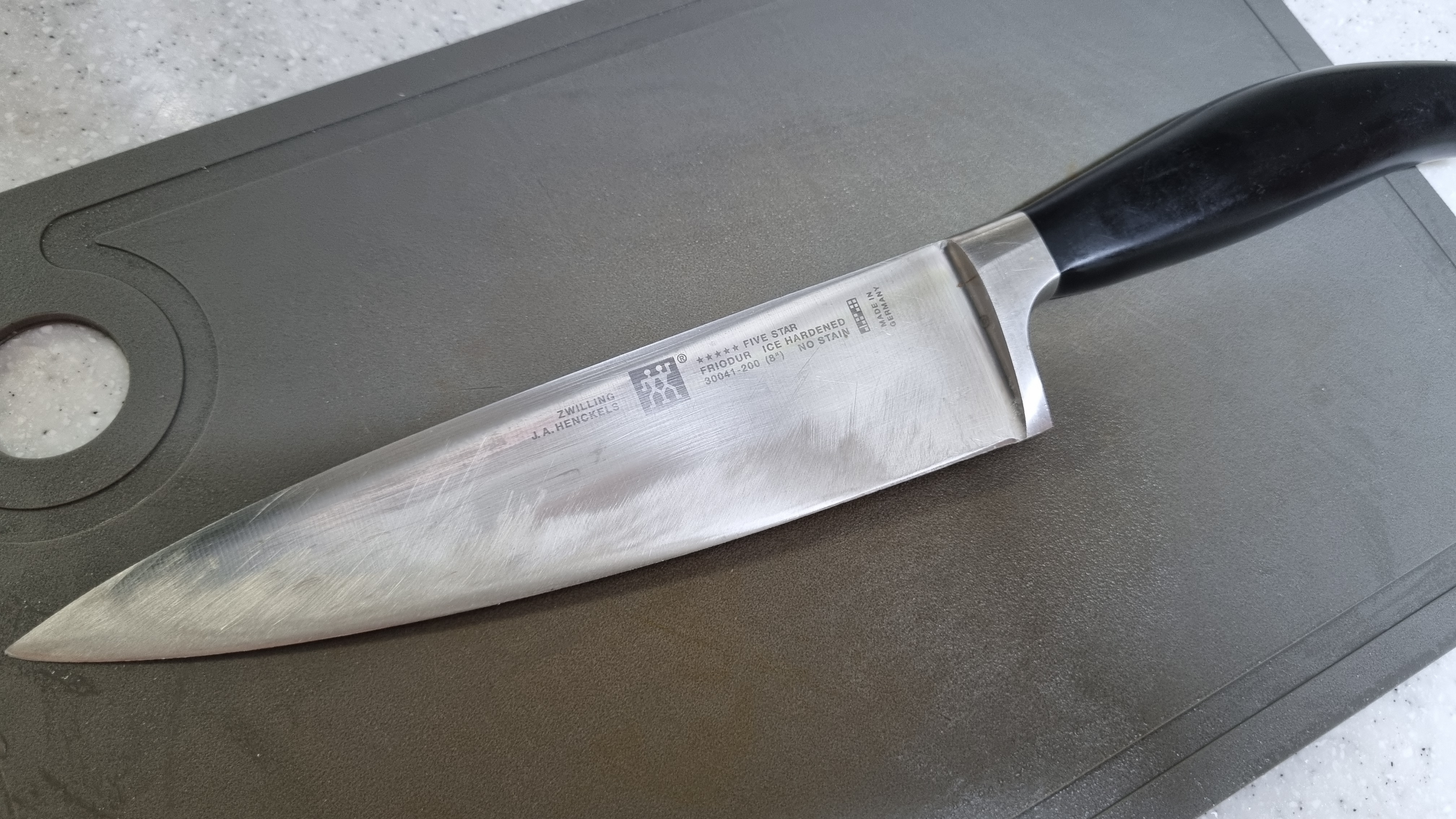 헹켈 칼 세트를 5년 넘게 사용했어요. 사실 헹켈 칼을 쓰면서 좋을 칼을 써야 한다는 이유를 알았어요. 헹켈을 5년 정도 사용했는데 칼을 딱 1번 갈았던 거 같아요. 단단한 걸 자르면 칼 날이 쉽게 상할 수 있다고 주의사항에 쓰여 있지만 저는 그냥 뼈도 자르고 냉동 고기도 자르고 생선 대가리도 잘랐어요. 헹켈 식도로. 그러나 쉽게 칼날이 무디어지지 않았어요. 하루에 한 번은 꼭 사용하지만 칼 가는 귀찮음은 없었어요.