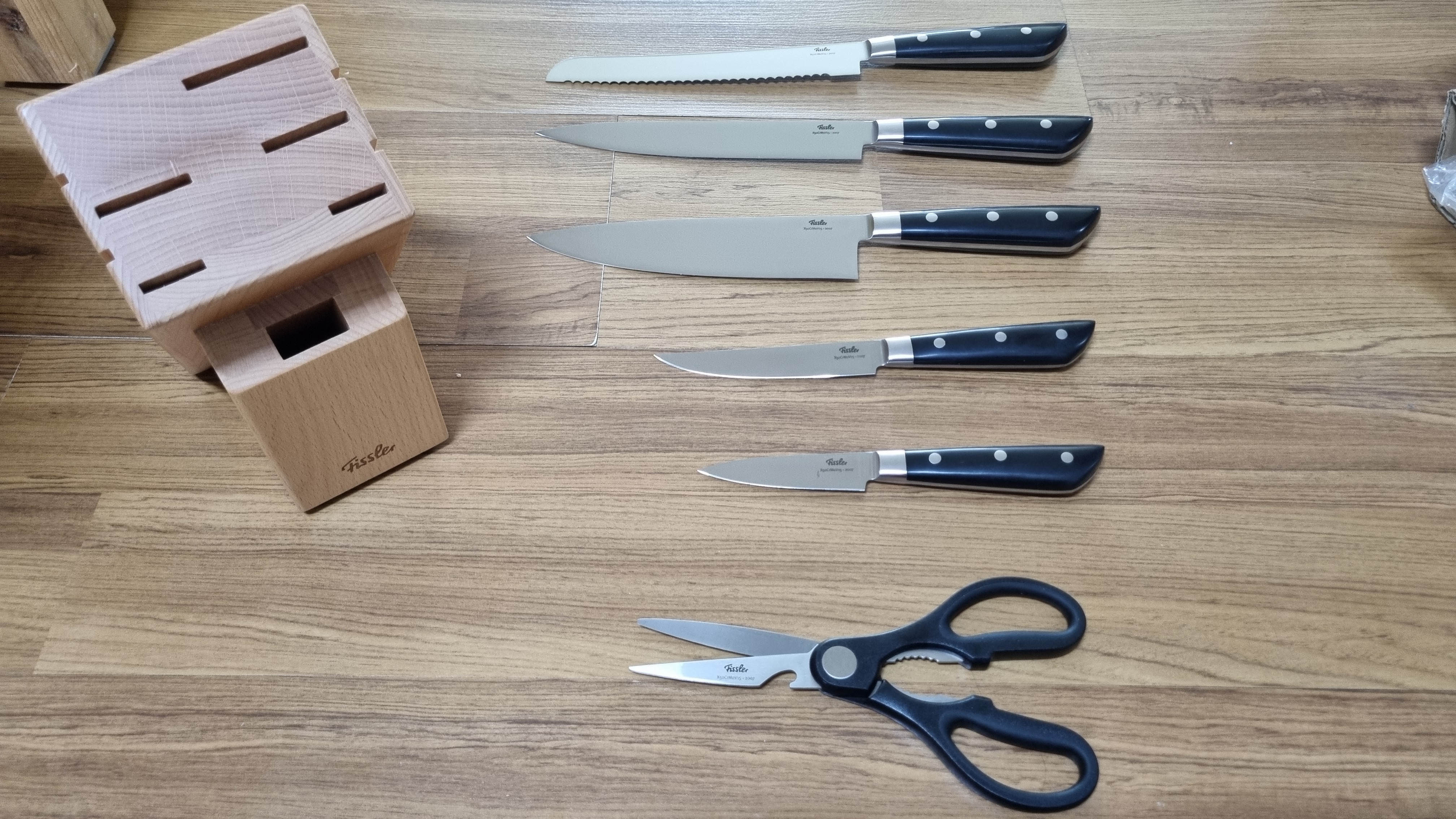 휘슬러 칼세트 7종의 구성으로는 블록, 가위, 과도, 큰 과도, 식도, 중도, 빵칼이 들어 있어요.