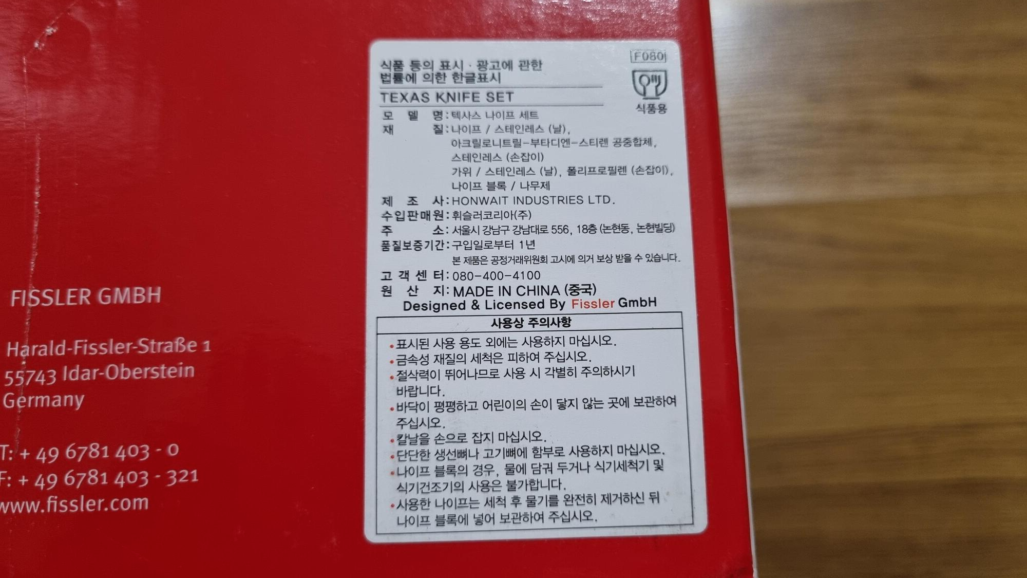 독일 브랜드인데 원산지는 중국이네요. Gemany 말 모르는데 한글 표시사항이 있어요. 다행이에요. 휘슬러 칼 7종 세트이에요.