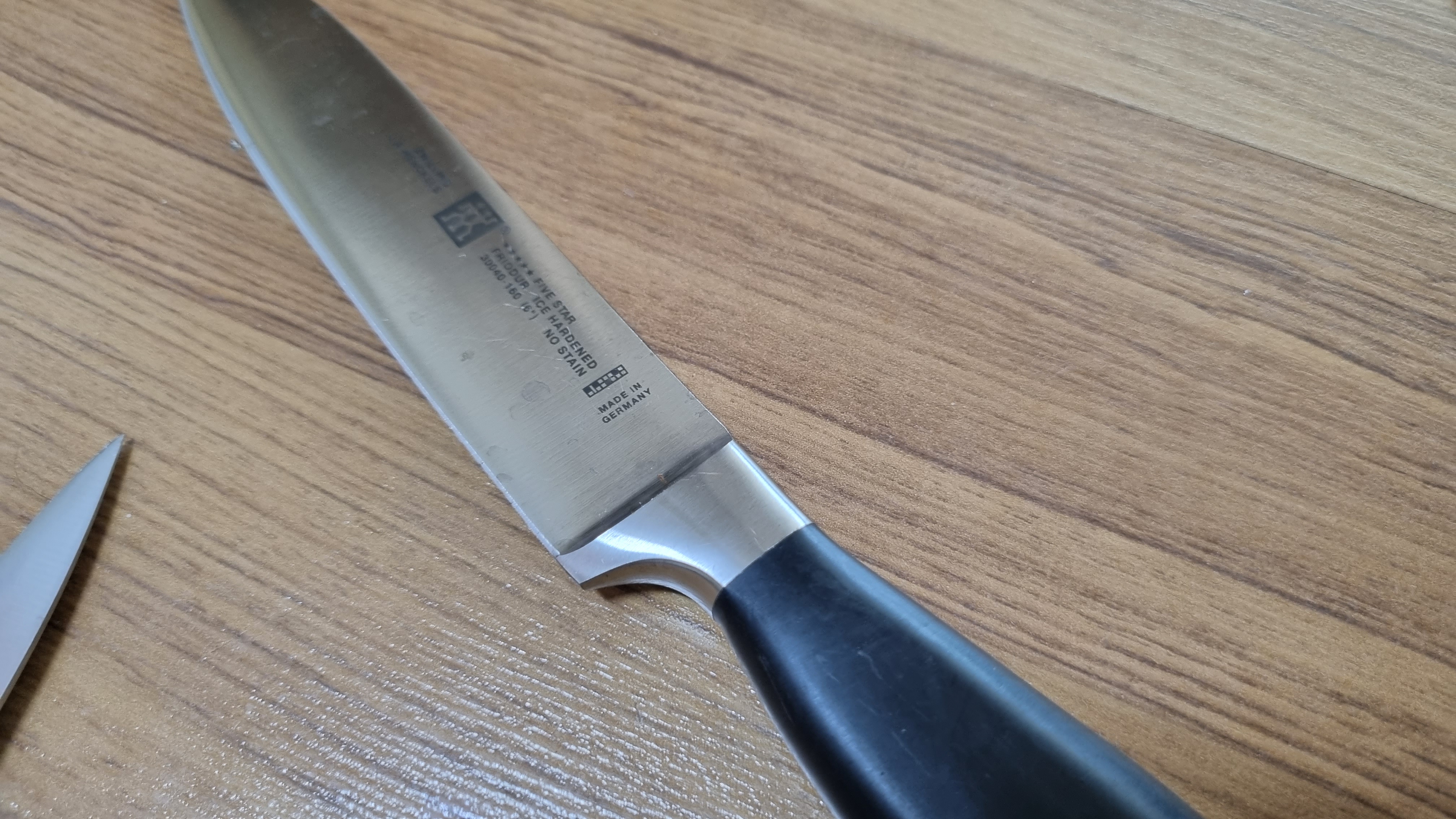 제가 가장 많이 쓰는 식도예요. 엇! 헹켈 쓰다가 그립감이 바뀌어서 느낌이 이상해요. 하지만 칼의 날렵함을 느낄 수 있어요. 그립감 좋고 묵직하기도 해요. 절대 가볍지 않아요.