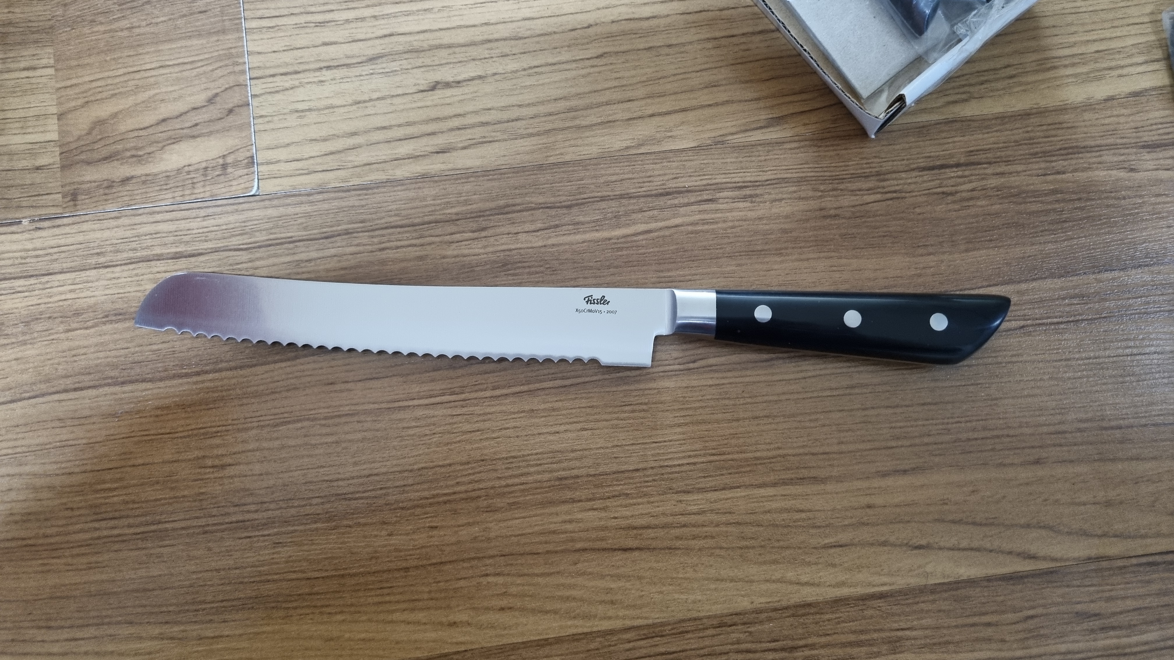 집에 빵칼은 없었는데 빵칼이 생겨서 너무 좋아요. 빵을 자르는 일이 많지는 않지만 그냥 하나쯤은 있으면 좋거든요. 이게 그렇게 절삭력이 좋다는 그 빵칼이에요. 늘 말로만 들어봤는데 실제로 정말 잘 들어요. 다른 건 몰라도 빵칼은 정말 추천할만해요. 하지만 빵 이외에 다른 건 자르면 안 돼요. 가루 날려요. 예를 들어 은박지에 씌워진 빵을 자른다거나 하면 은박지 가루가 날려서 빵에 은박지 가루가 묻어요. 빵칼 처음 써봐서 몰랐음.