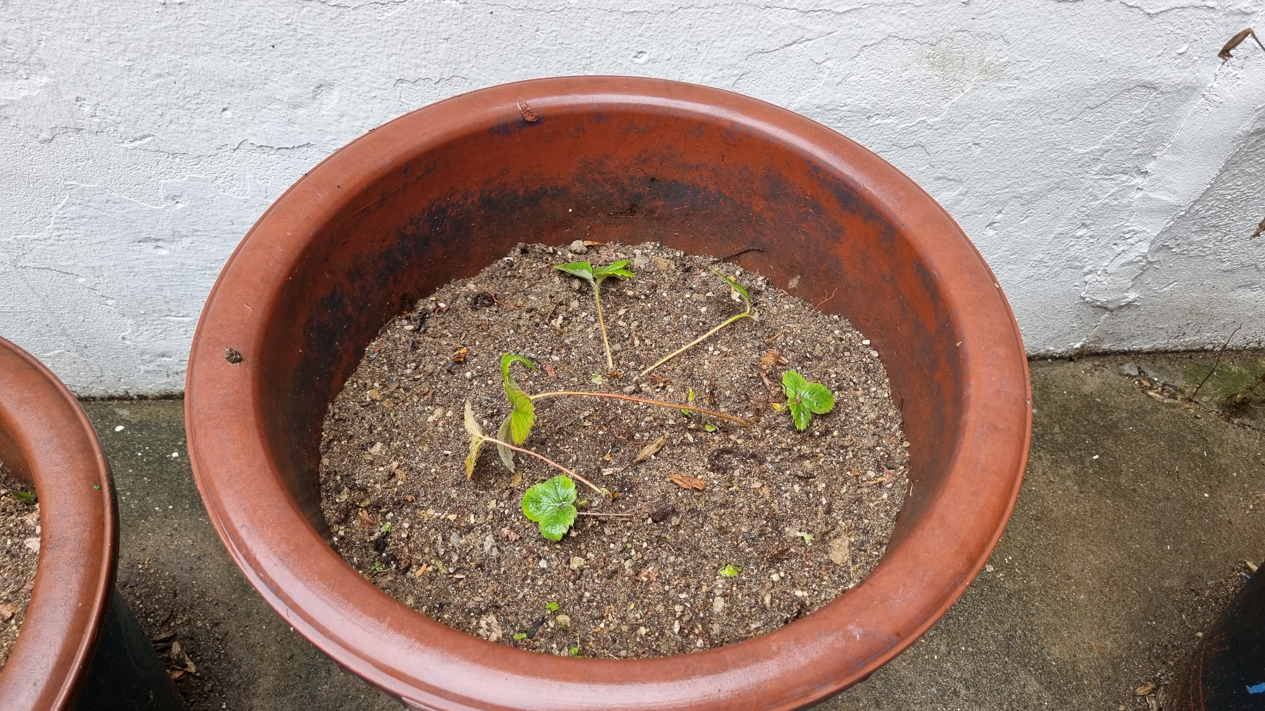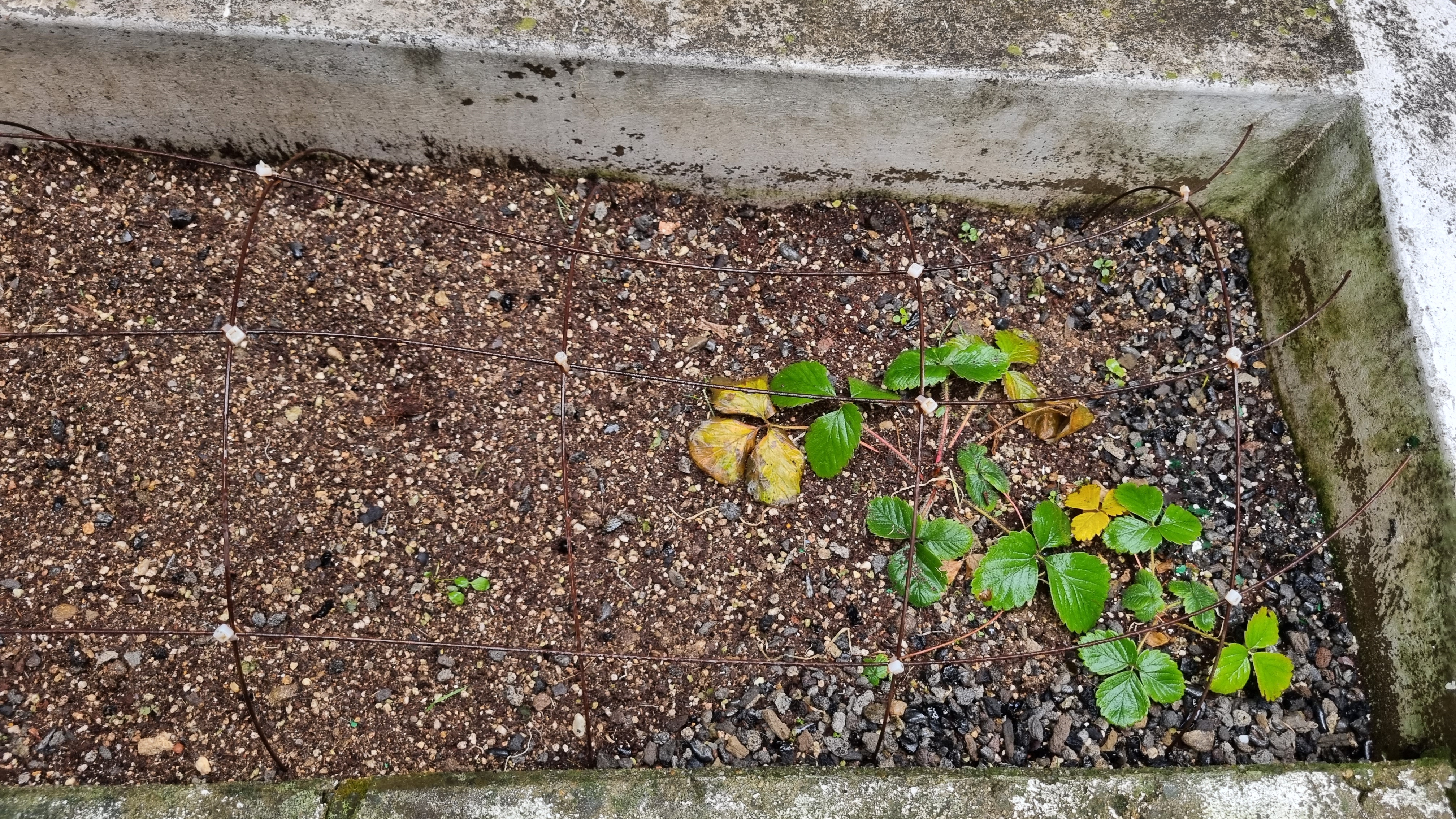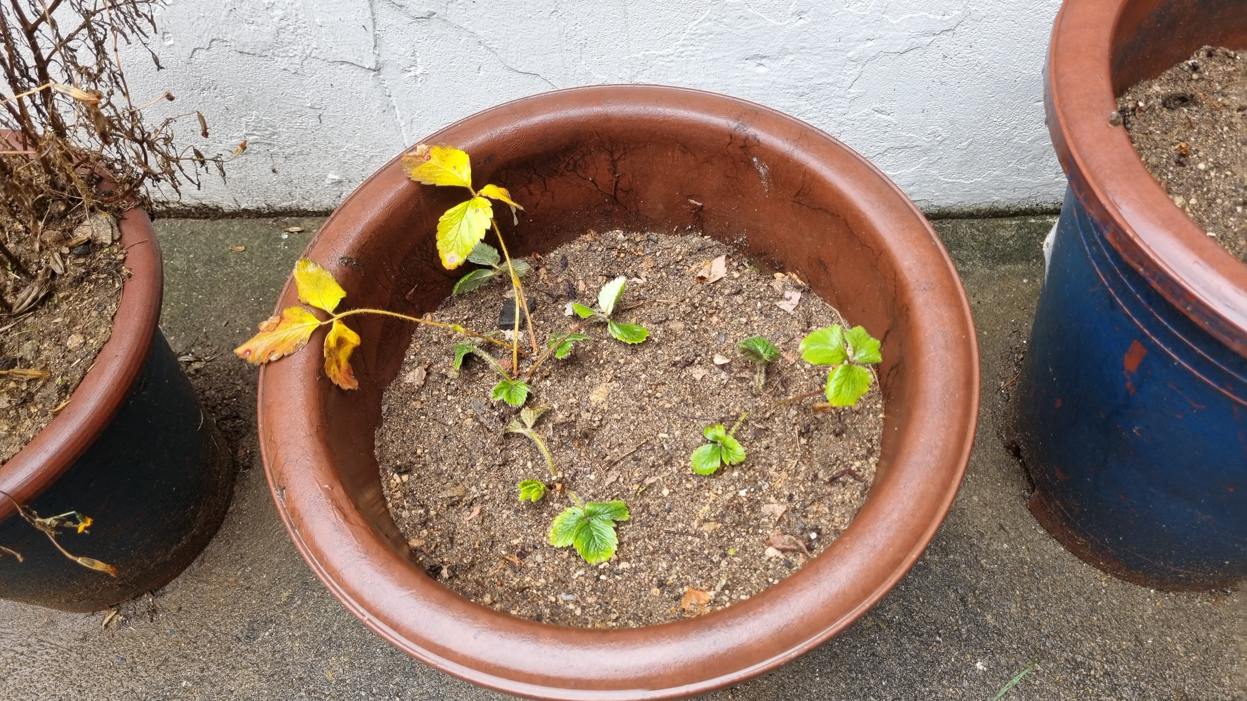 작은 화분 딸기예요. 이 딸기도 노지라 뭔가 보온을 해주지 않으면 죽을 것 같아요. 그리고 지난주에 지저분한 것들을 뽑아 버리고 다시 심어서 아직 뿌리가 싱싱하지 못할 텐데 죽을까 봐 걱정이긴 해요.
