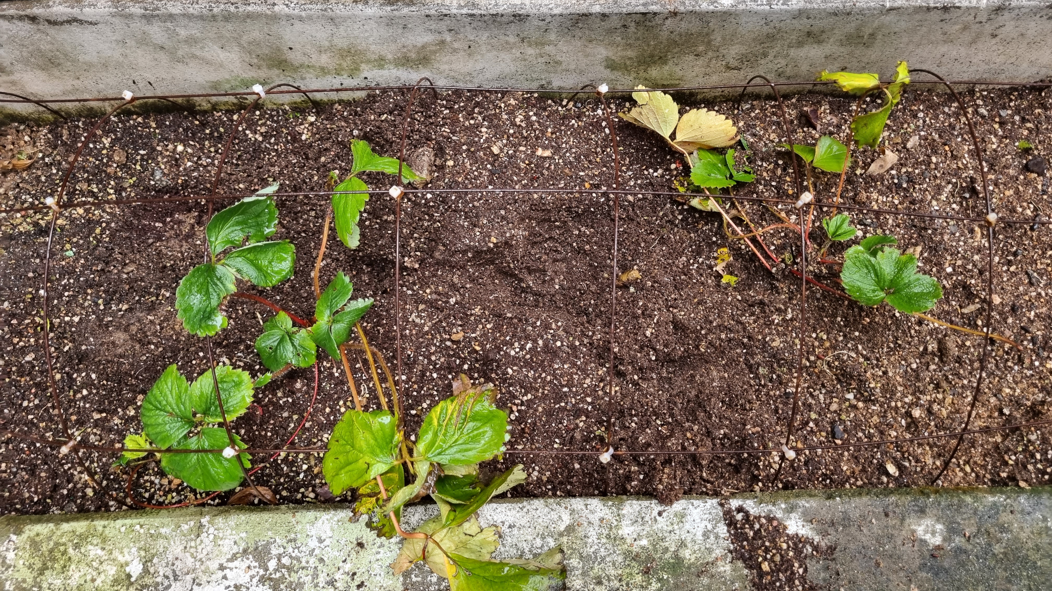 위의 사진은 킹스베리 1번과 2번이에요. 보슬보슬 비가 내리고 있어서 그런지 땅이 축축해요. 아직도 초록색의 잎이 있어서 너무 예쁘긴 한데. 고양이 새뤼가 또 딸기밭 땅을 팠어요. 아오 진짜!!! 저 흙 속에 고양이 응아도 있어요. 도대체 어떻게 하면 고양이를 막을 수 있을까요? 고양이가 저렇게 와서 땅 파고 응아 하면 아무리 건강한 딸기라고 해도 딸기가 잘 자라지 못하고 죽어요. 내가 비싸게 주고 산 딸기 모종인데. 다행인 것은 아직 죽지 않고 잘 살아 있고 킹스베리 1번에서 나온 자식묘도 건강하게 잘 자라고 있어요. 부디 3월에 꽃이 피길 바라며.