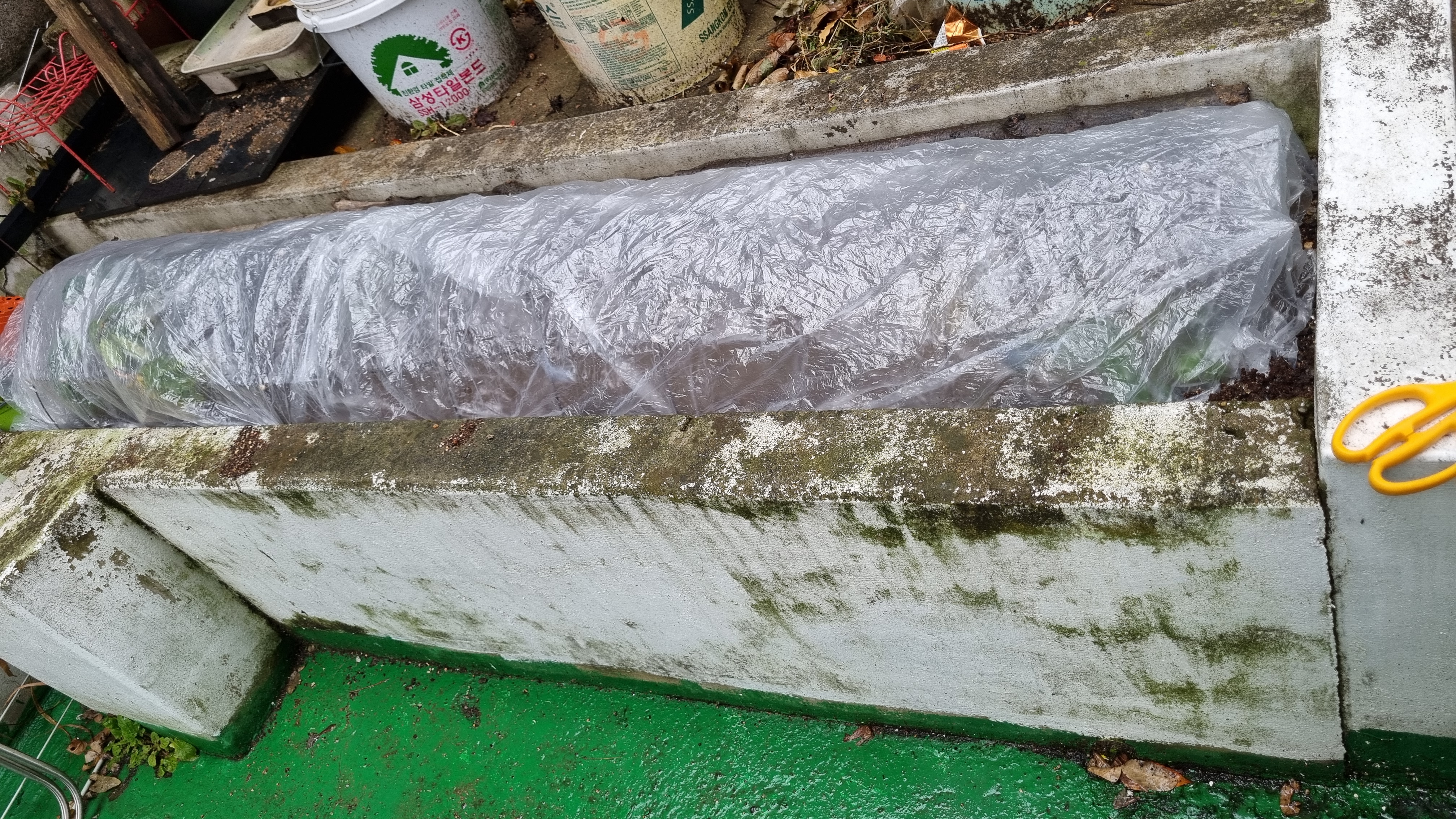 비닐을 꾹꾹 잘 눌러 놨는데 그래도 바람에 비닐이 날아가면 어쩌지?