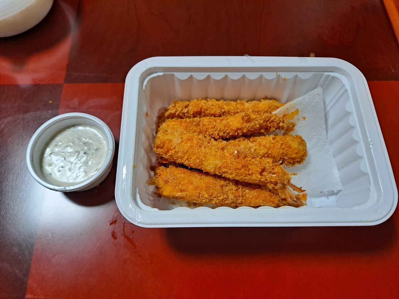 새우튀김 6,000원. 역시 기름진 튀김은 맛이 없을 수가 없어요. 따뜻하기도 하고 고소하기도 했고 찍어먹는 소스도 맛있었어요.
