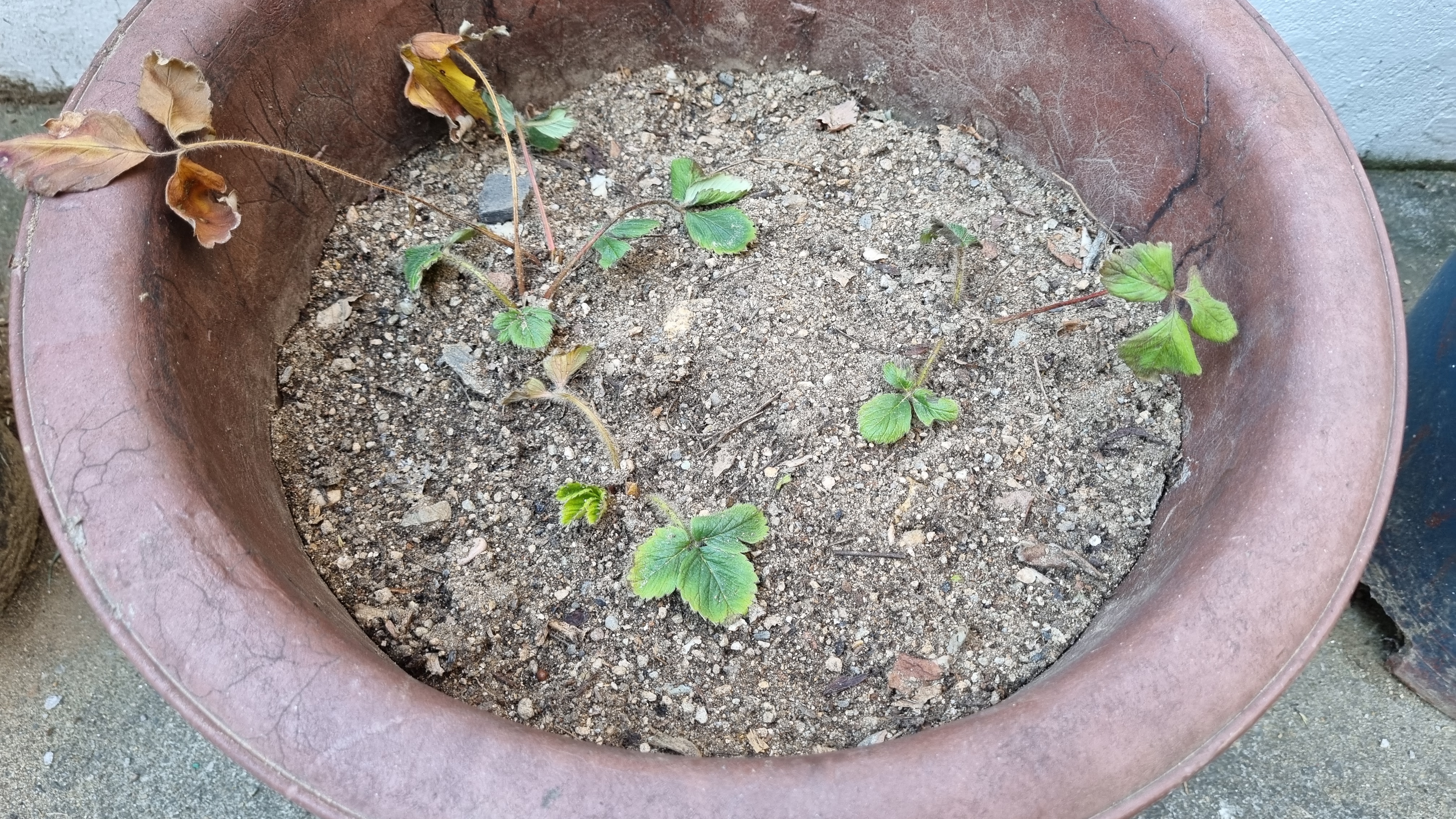 딸기는 추위에 강하다고 들었어요. 그래서 추운 겨울에도 잘 버틴다고 알고 있어요. 지난 글에서도 확인할 수 있듯이 추운 겨울을 벌써 2번이나 버티고 살았고 벌써 3번째 맞이하는 겨울이에요. 하지만 요즘 최저기온이 심상치 않아요. 텃밭의 노지 딸기는 그래도 비닐이라도 한 겹 씌워 줬는데 화분 딸기는 무방비 상태라 불안해요. 그리고 지난주에 지저분한 것들을 정리하느라 뽑았다 다시 심어서 죽을지도 모르겠단 생각이 들어요.