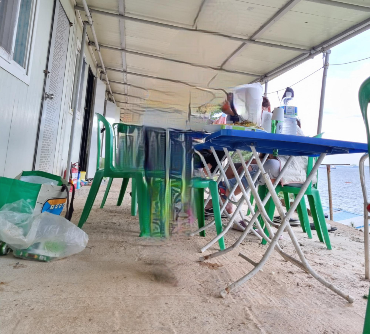 위의 사진에서 보이는 건물이 바로 원주민 민박 사장님이 운영하는 독채예요. 방 3개. 주방 1, 화장실 겸 욕실 1개가 전부예요. 성인 9명, 아이 4명이 화장실 1개로 2박 3일을 지냈어요. 급한데 화장실에 누가 있다면 휴지 들고 나루터 근처에 있는 공중 화장실로 뛰어야 해요. 이 또한 재밌는 일이에요.
