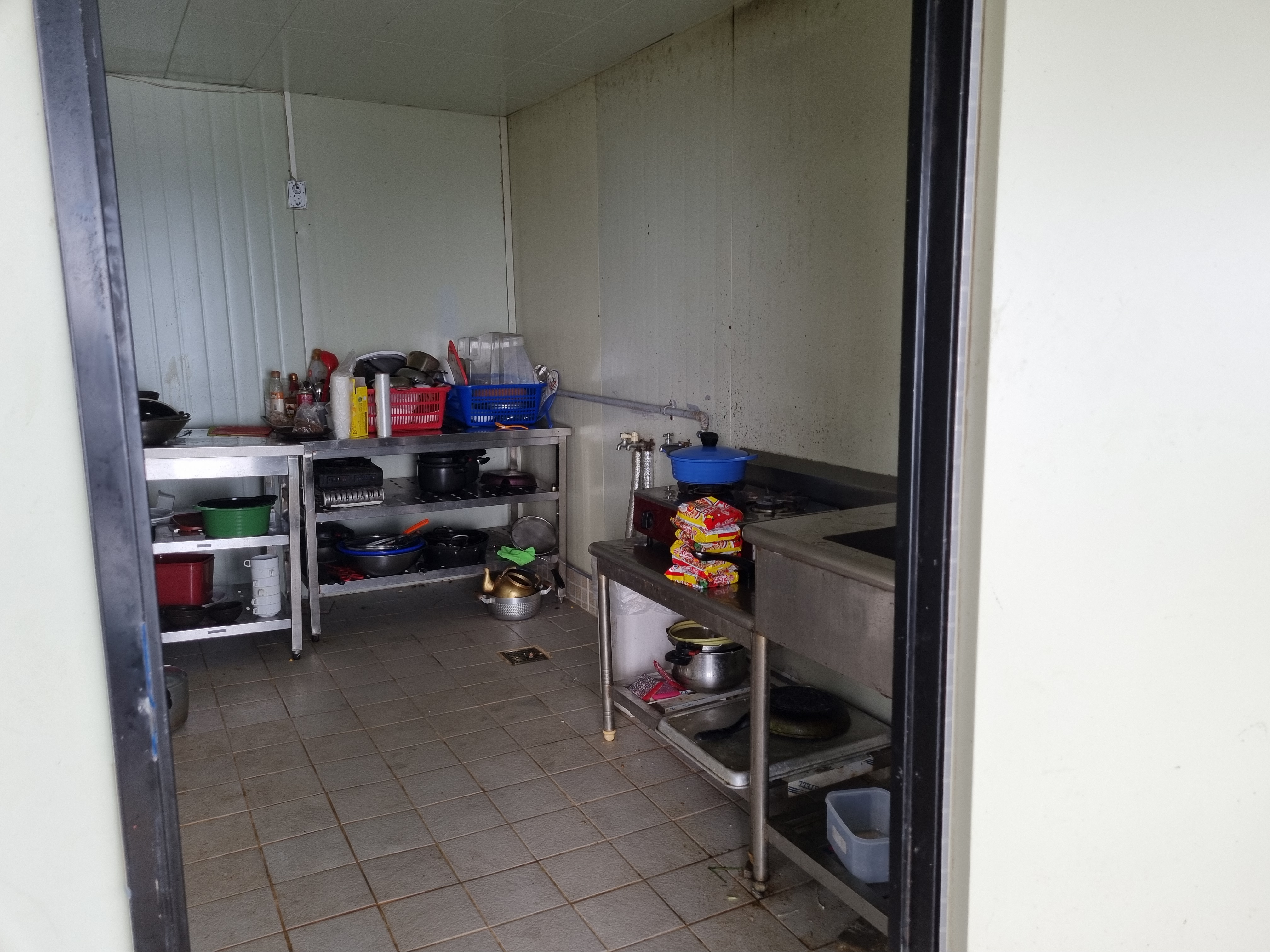 주방이에요. 깔끔하진 않아요. 청소 상태도 그리 좋지 않고요. 하지만 있을 건 다 있어요. 그리고 주방을 쓸 일이 많지 않아요. 고기 구워 먹고, 회 먹고, 기껏해야 라면 정도 끓였어요.