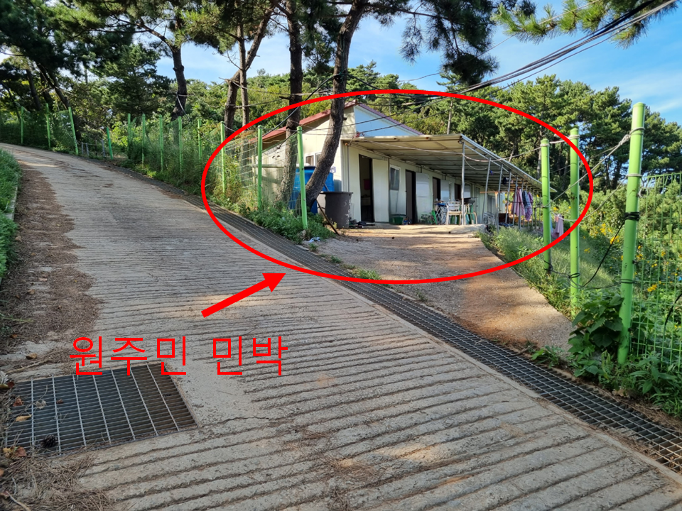 도착했어요. 나루터에서 바로 원주민 민박이 보여요. 저희가 예약한 곳은 원주민 민박이었는데 나루터에서 멀리 있는 방이었어요. 나루터에서 가까운 줄 알았는데 일행이 많아서 산 중턱에 있는 독채를 주셨어요. 입파도가 워낙 크지도 않을뿐더러 걸어 다녀도 풍경이 워낙 예뻐서 상관없었어요.