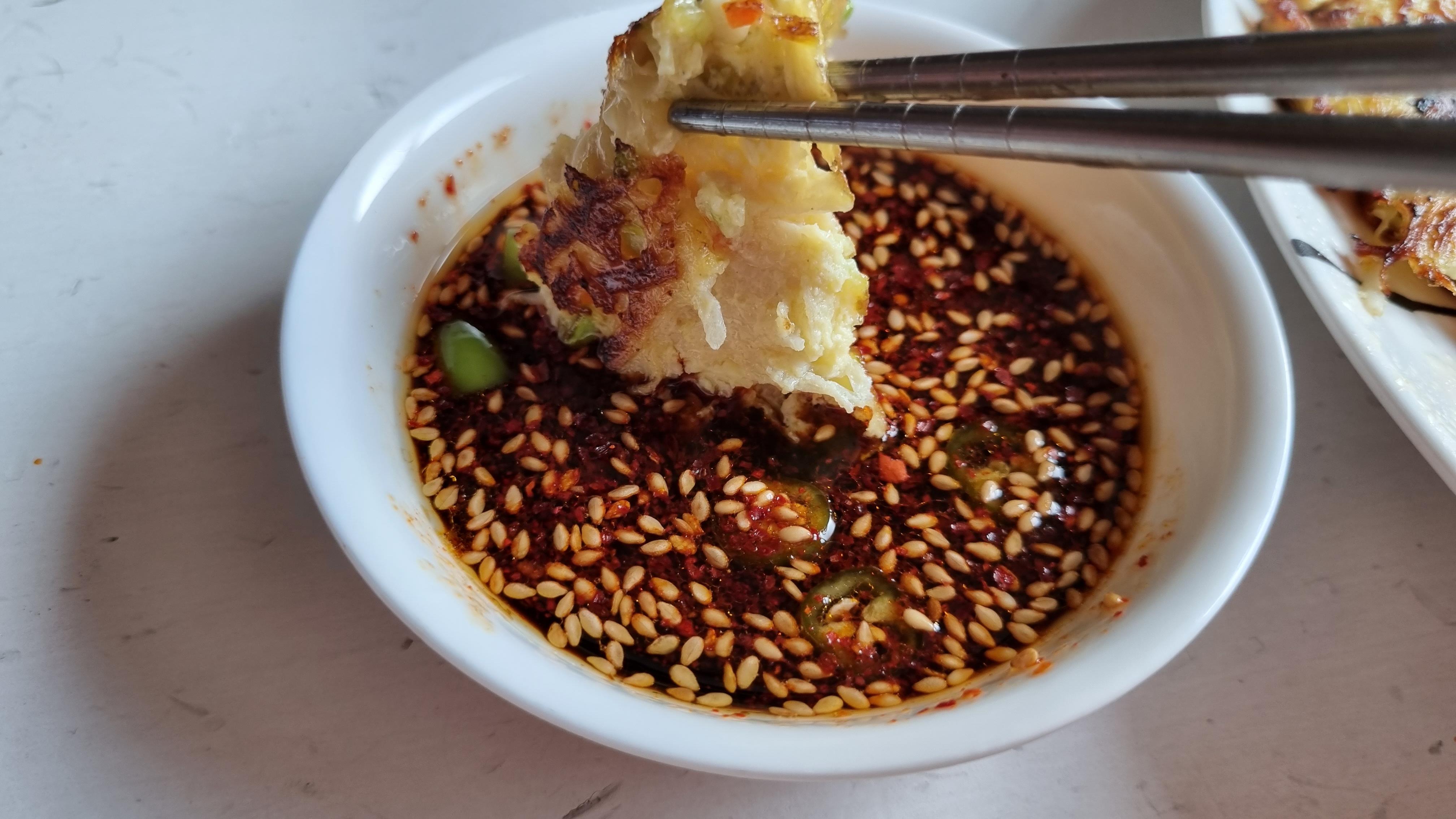 매운 양념간장과 함께 먹어요. 반죽에 청양고추를 넣지 못한 아쉬움을 양념간장으로 달래요. 고소하고 달달하고 맵고 즐거운 맛이에요. 역시 팽이버섯은 기름에 구워야 특유의 냄새가 사라지는 것 같아요.