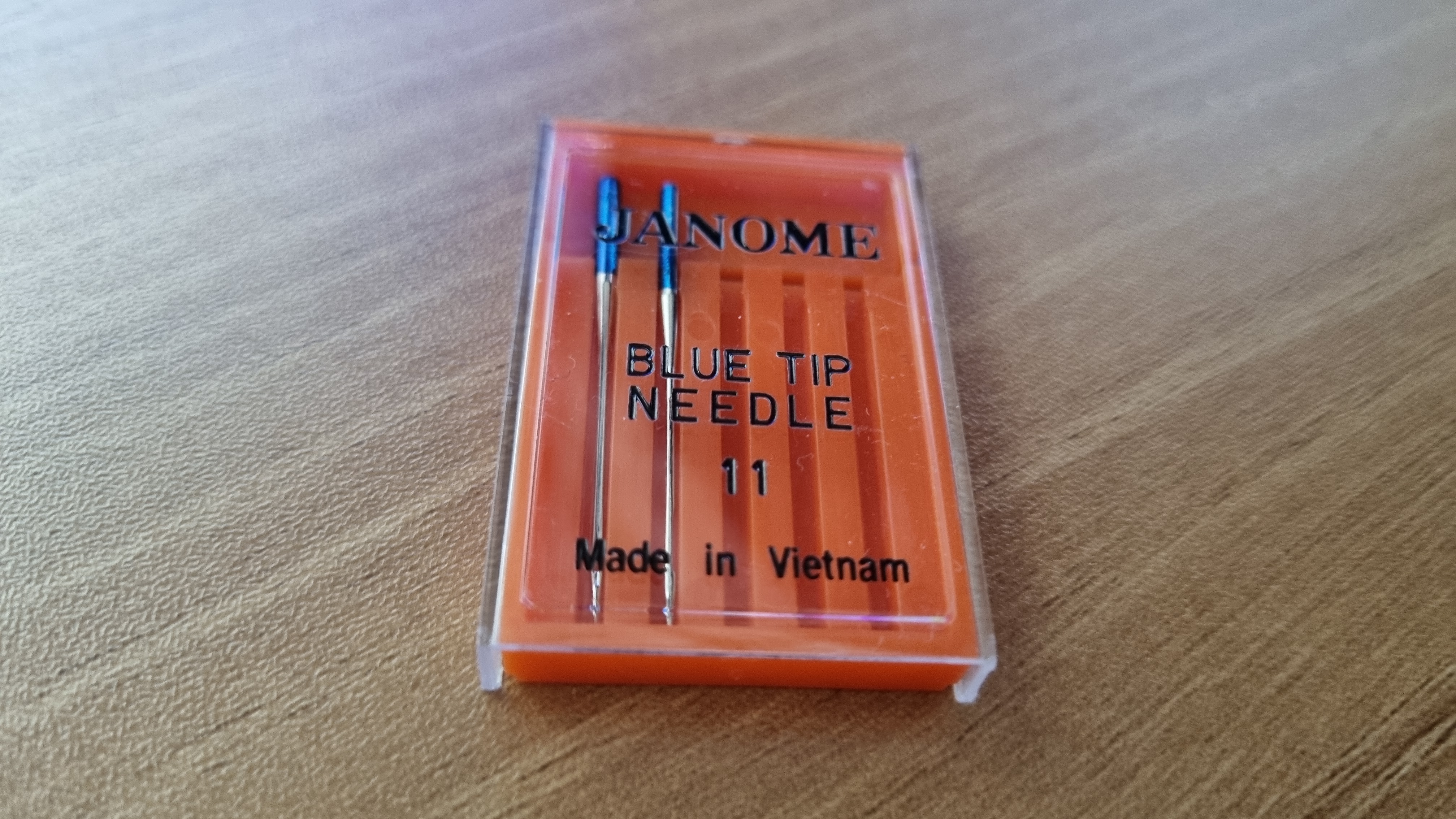 위의 사진은 니트용 블루팁 바늘 11호예요. 가장 많이 쓰는 바늘이에요. 비싸고 잘 부러지는 단점이 있지만 이 바늘이 아니면 신축성이 많은 다이마루 원단을 봉제할 수가 없어요. 비싸도 써야 해요.