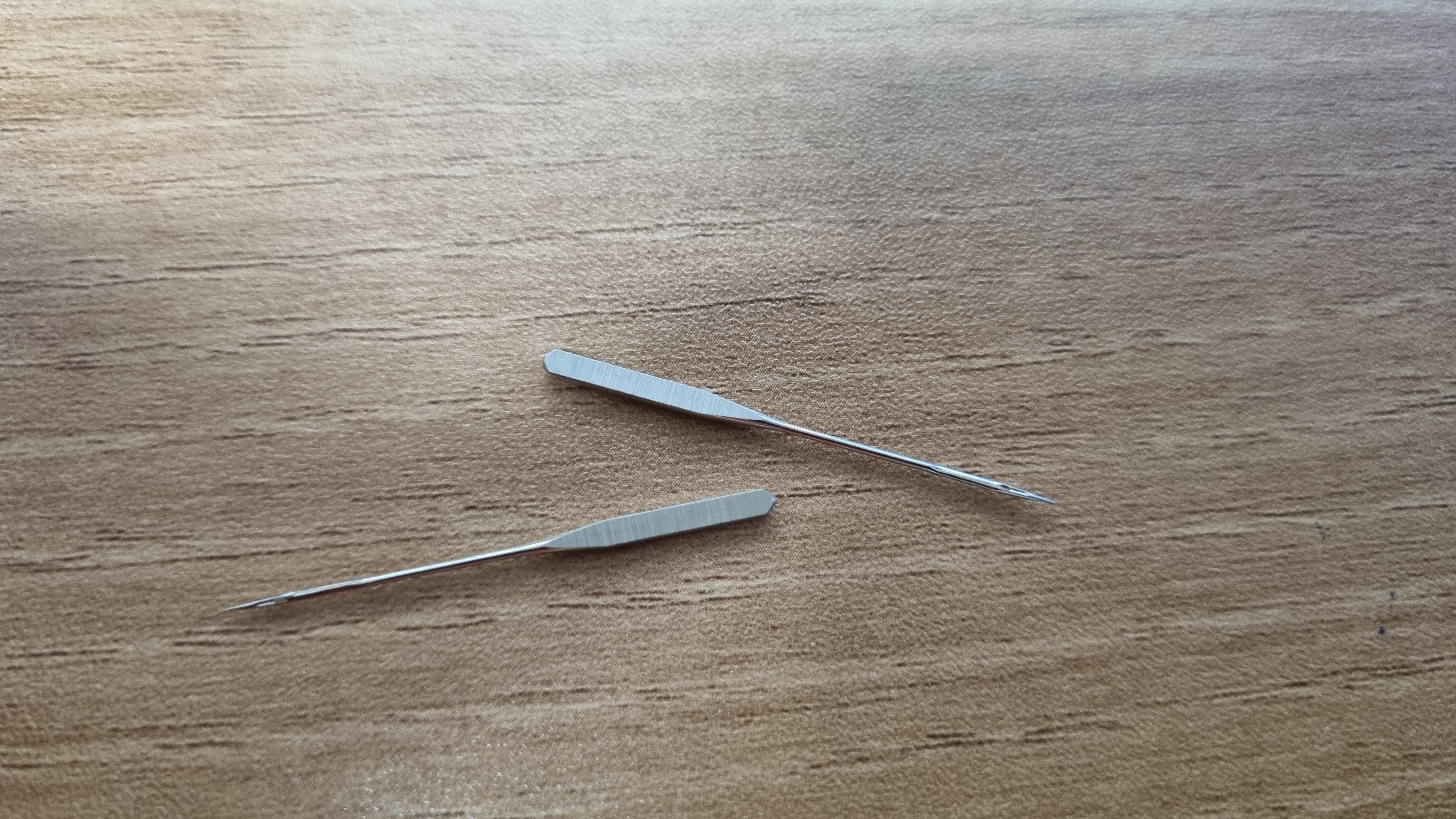 가정용 바늘은 보통 이렇게 바늘 윗부분이 싹둑 잘려 있어요.