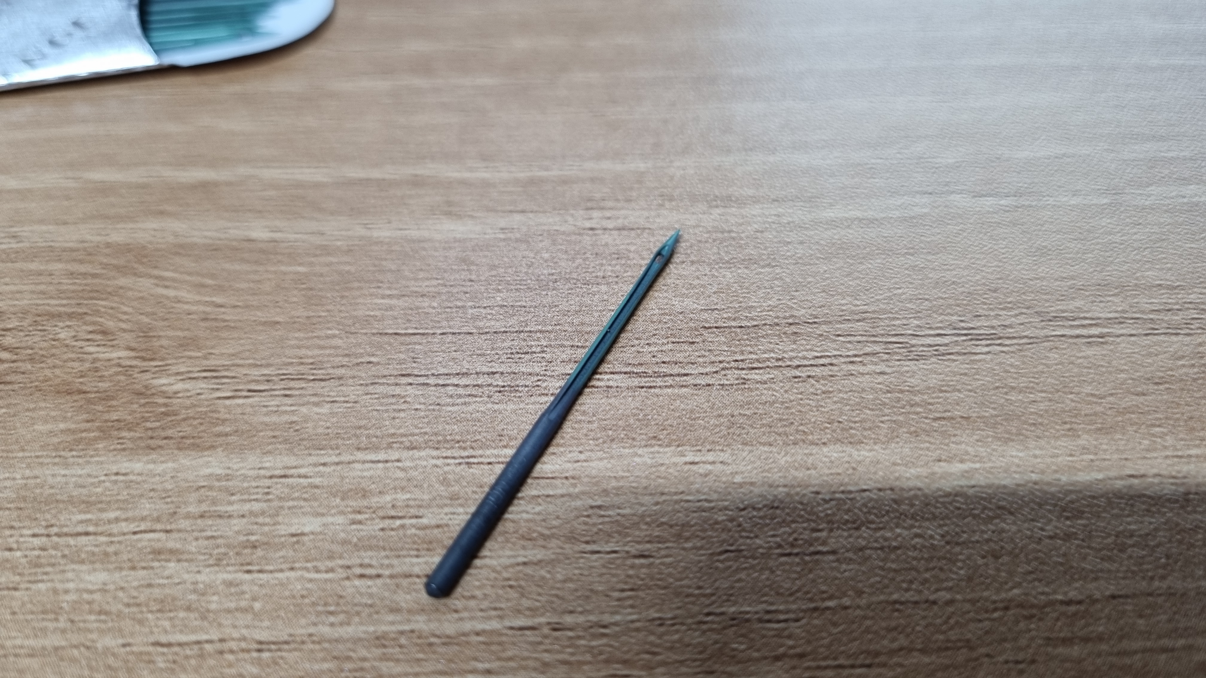 포장지를 열었는데 바늘이 녹슨 느낌이에요. 잘 봤더니 녹슨 게 아니라 공업용 바늘이었어요. DBx1. 잘못 구매한 공업용 바늘이에요. 사용할 일이 없어요..ㅠㅠ
