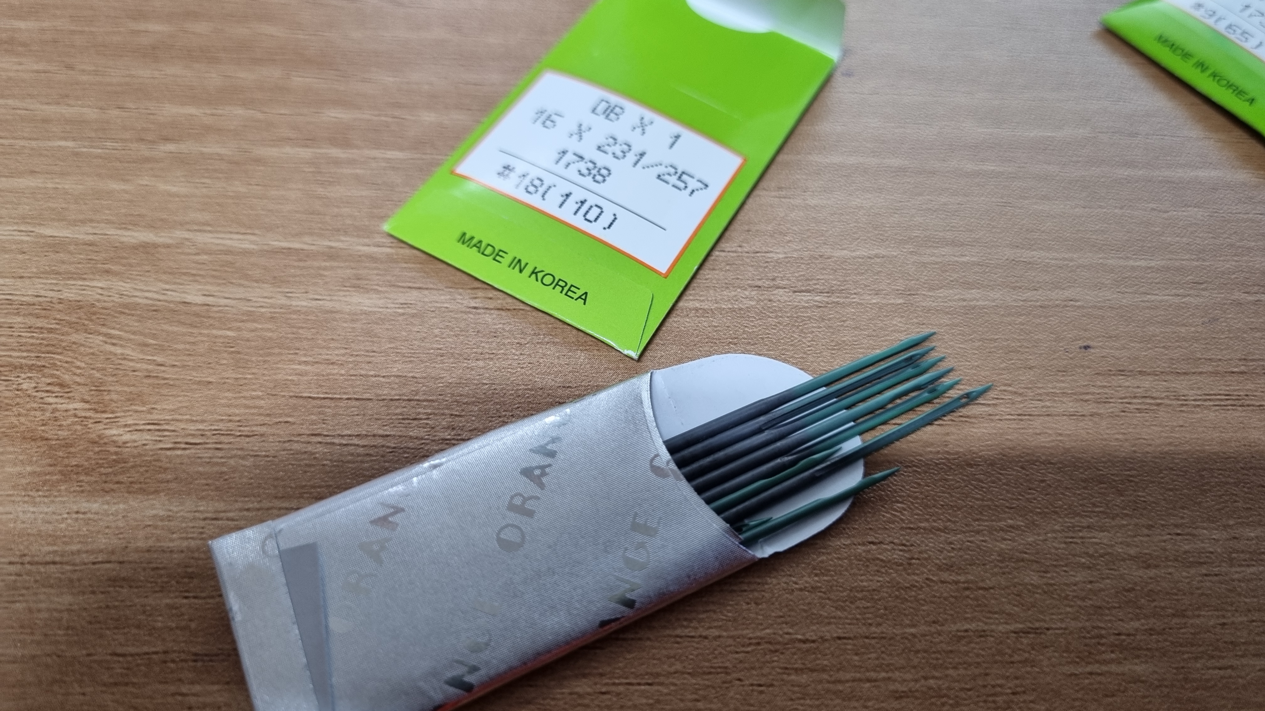 미싱 바늘을 고르는 일도 쉽지 않아요. 미싱을 배워본 적도 없어요. 검색 몇 번으로 얻은 얕은 지식으로 미싱 바늘을 구매해요. '두꺼운 원단은 두꺼운 바늘!! 일반적으로 14호!!' 이것만 기억해요. 14호 바늘만 수두룩해요. 그런데 이 일반적인 원단이 어떤 건지 몰라요. 그래서 그냥 14호 바늘만 주야장천 썼어요. 결과는 바늘땀도 예쁘지 않고 옷에 바늘구멍도 크게 남아있고 그래요.