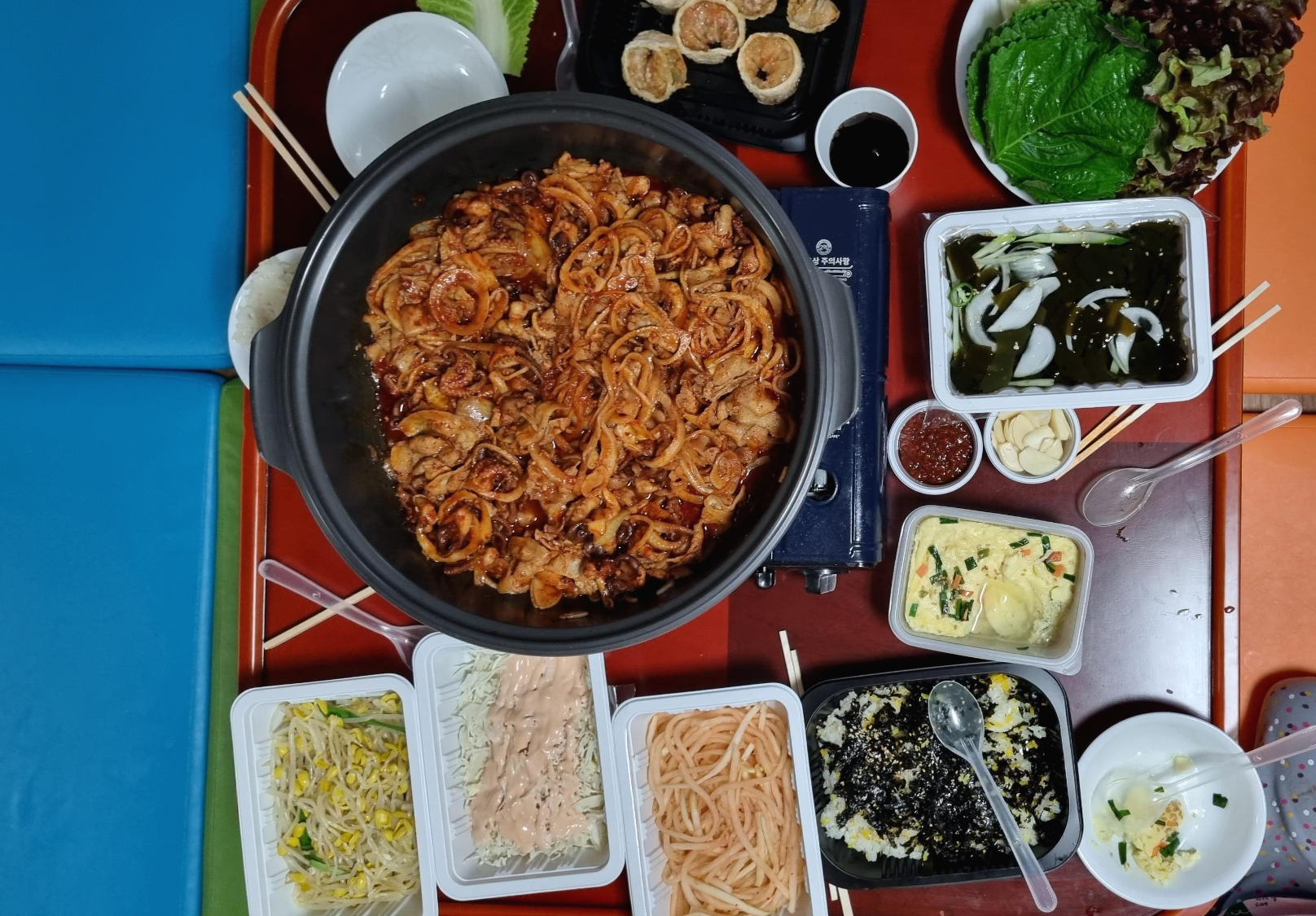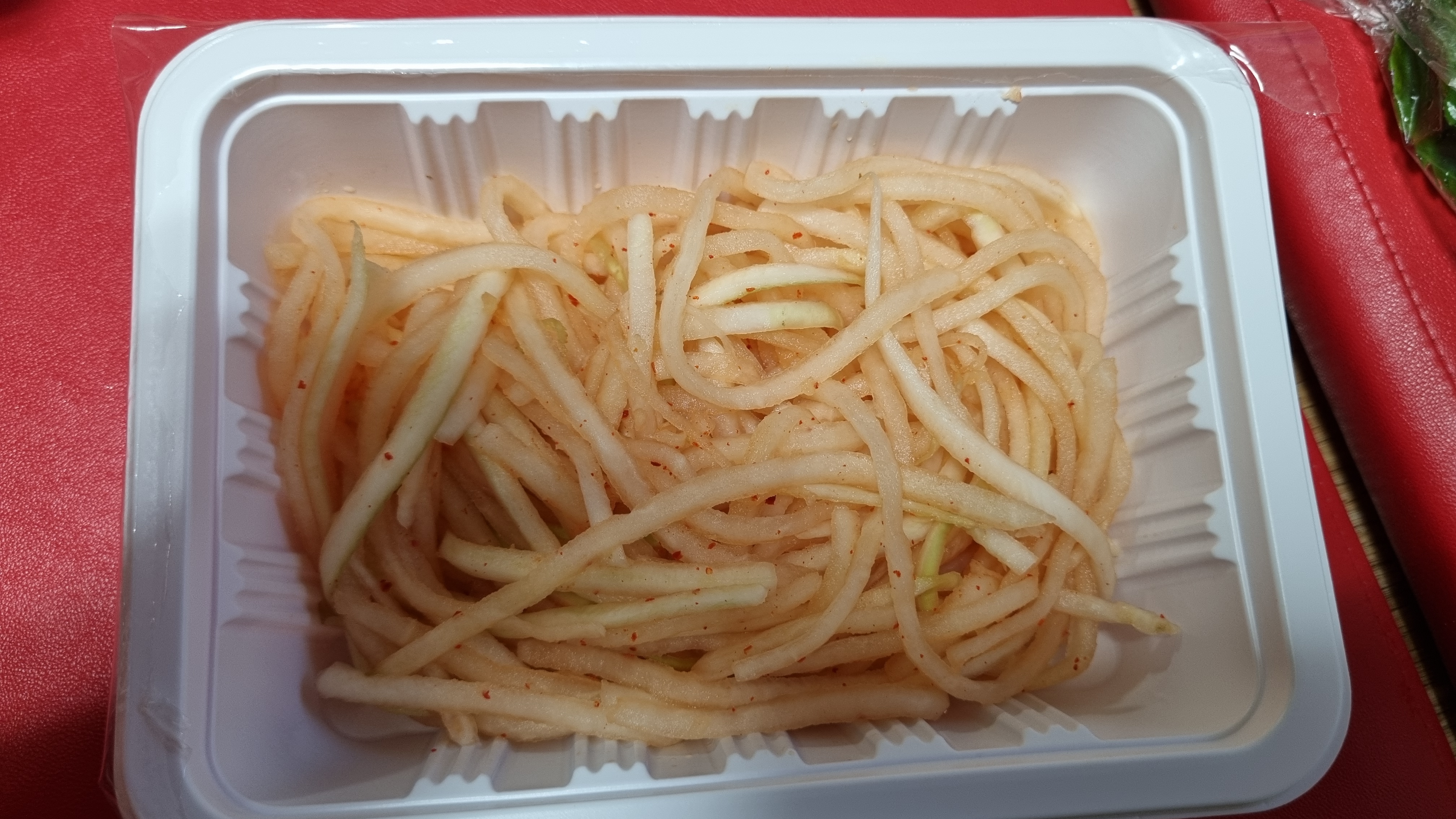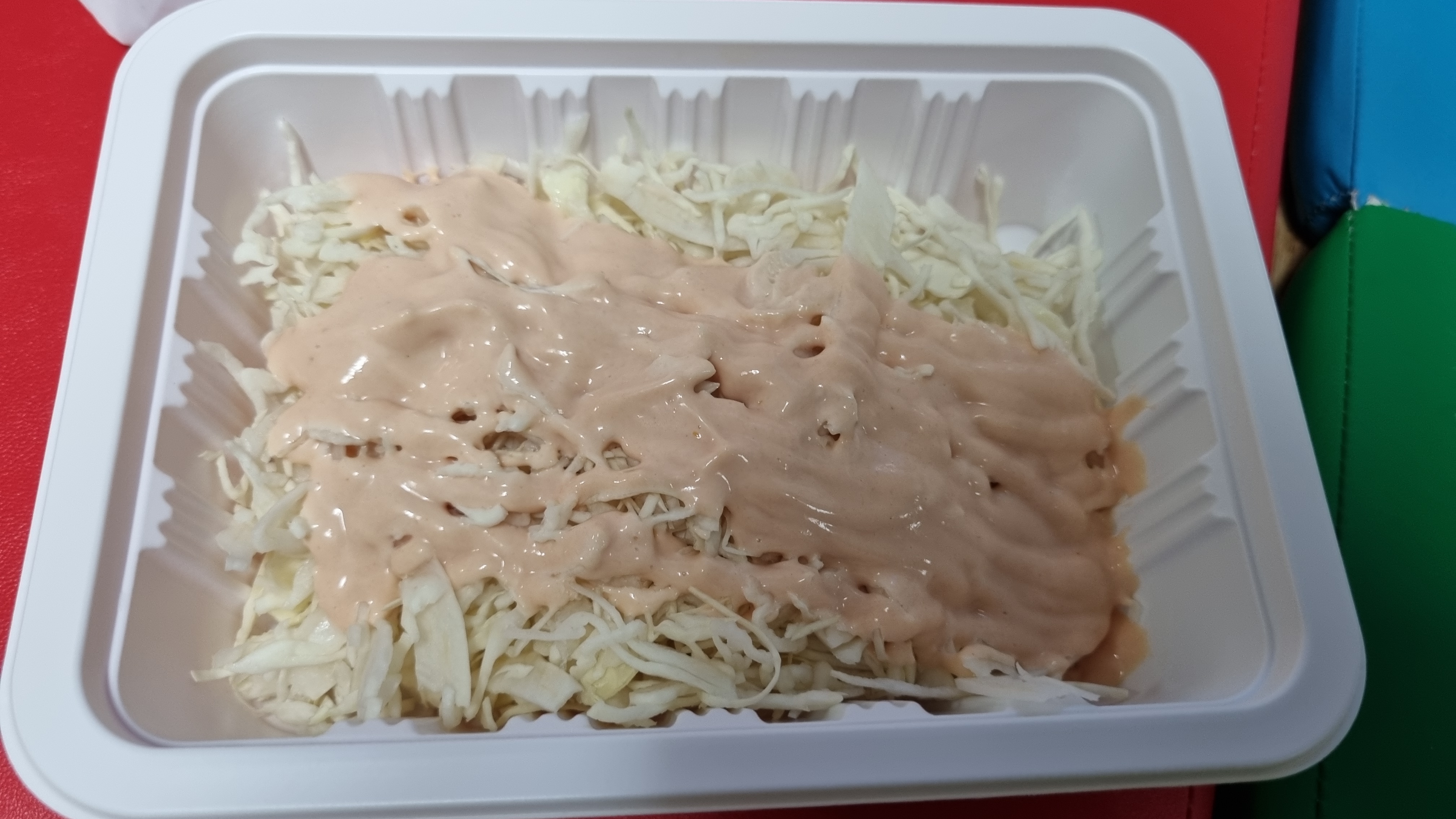 배달이 완료 되었고 음식을 개봉하기 시작해요. 와~ 진짜 뭐가 이렇게 많이 들었는지 정말 푸짐했어요. 위의 사진은 양배추 샐러드. 그냥 양배추 샐러드 맛이 나요. 매울때 먹으면 최고에요.
