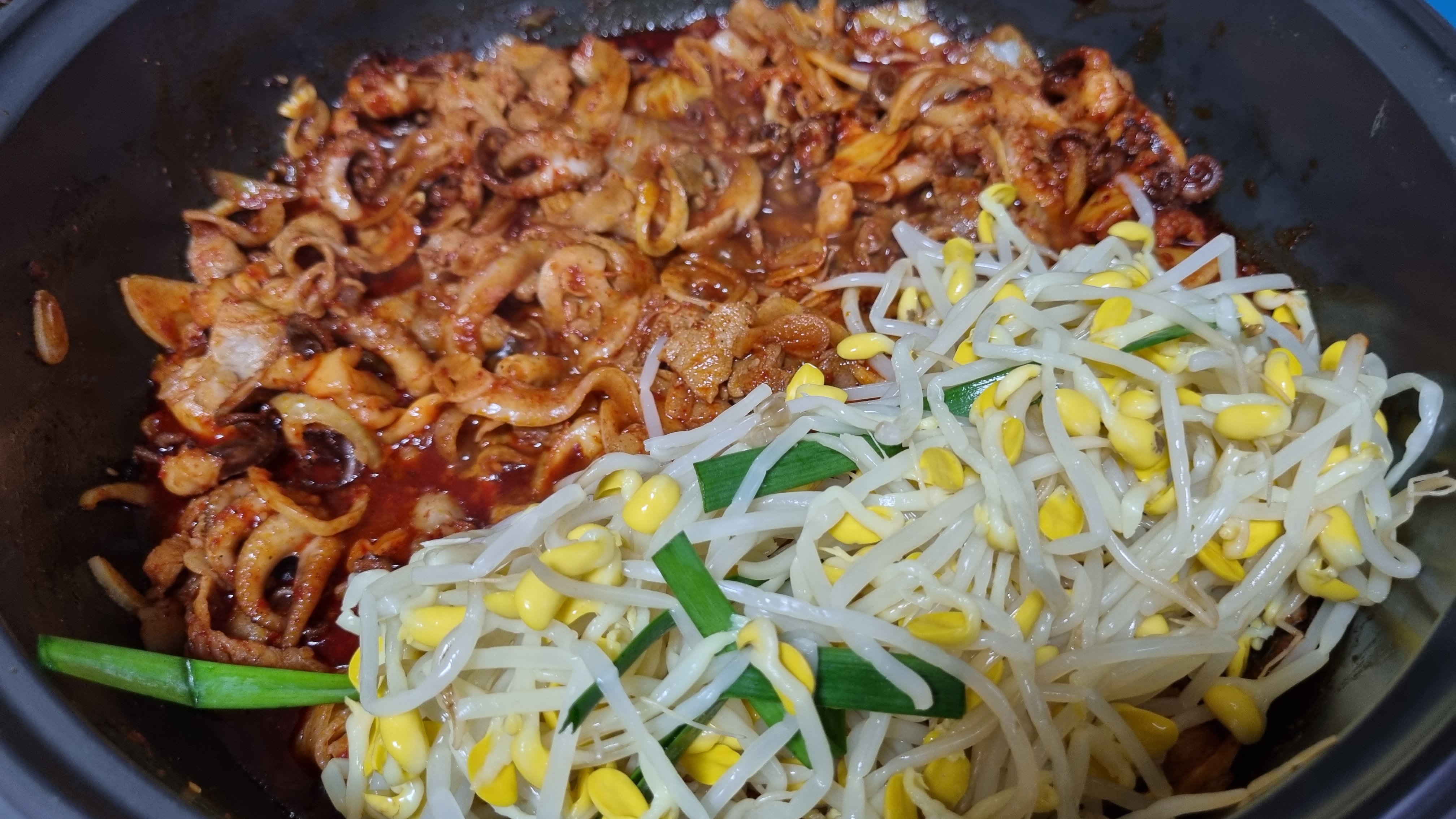 매워서 콩나물도 넣었어요. 쭈꾸미와 삼겹살 그리고 콩나물. 조합이 아주 좋아요.