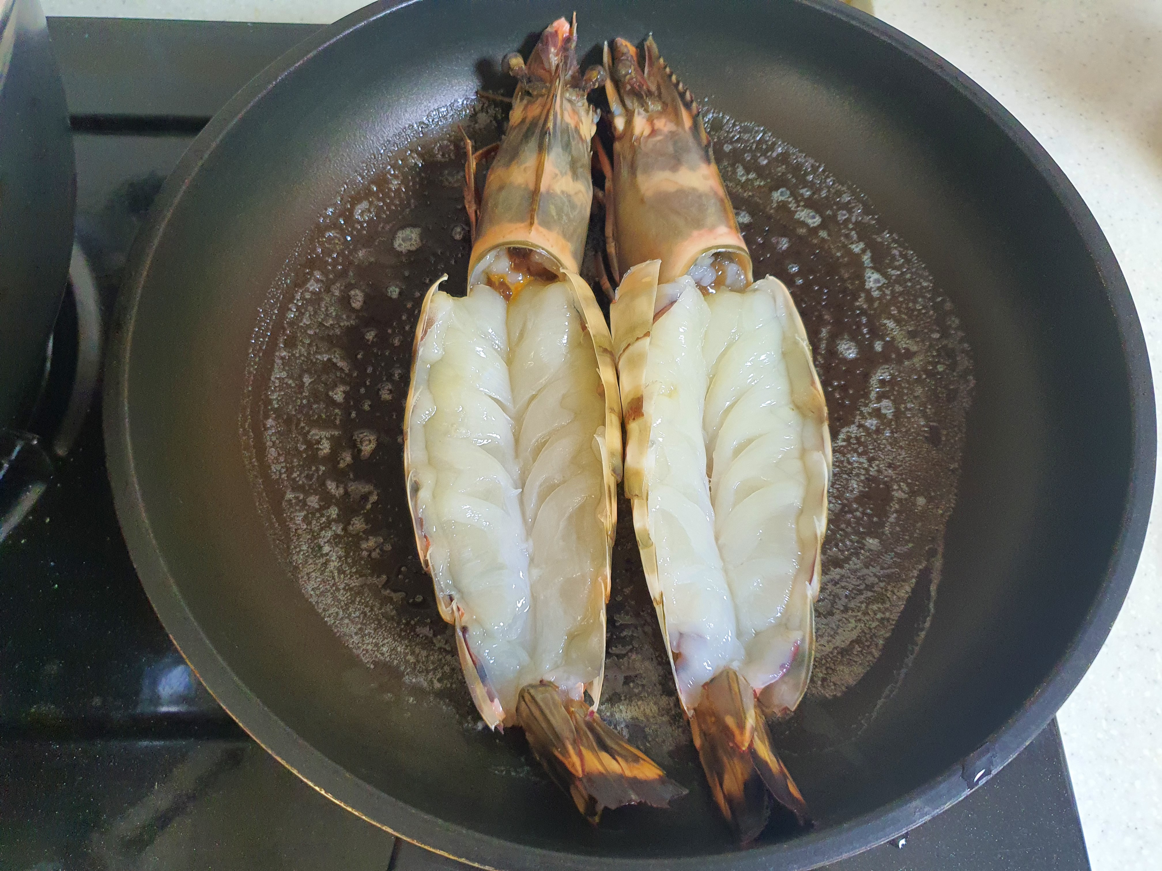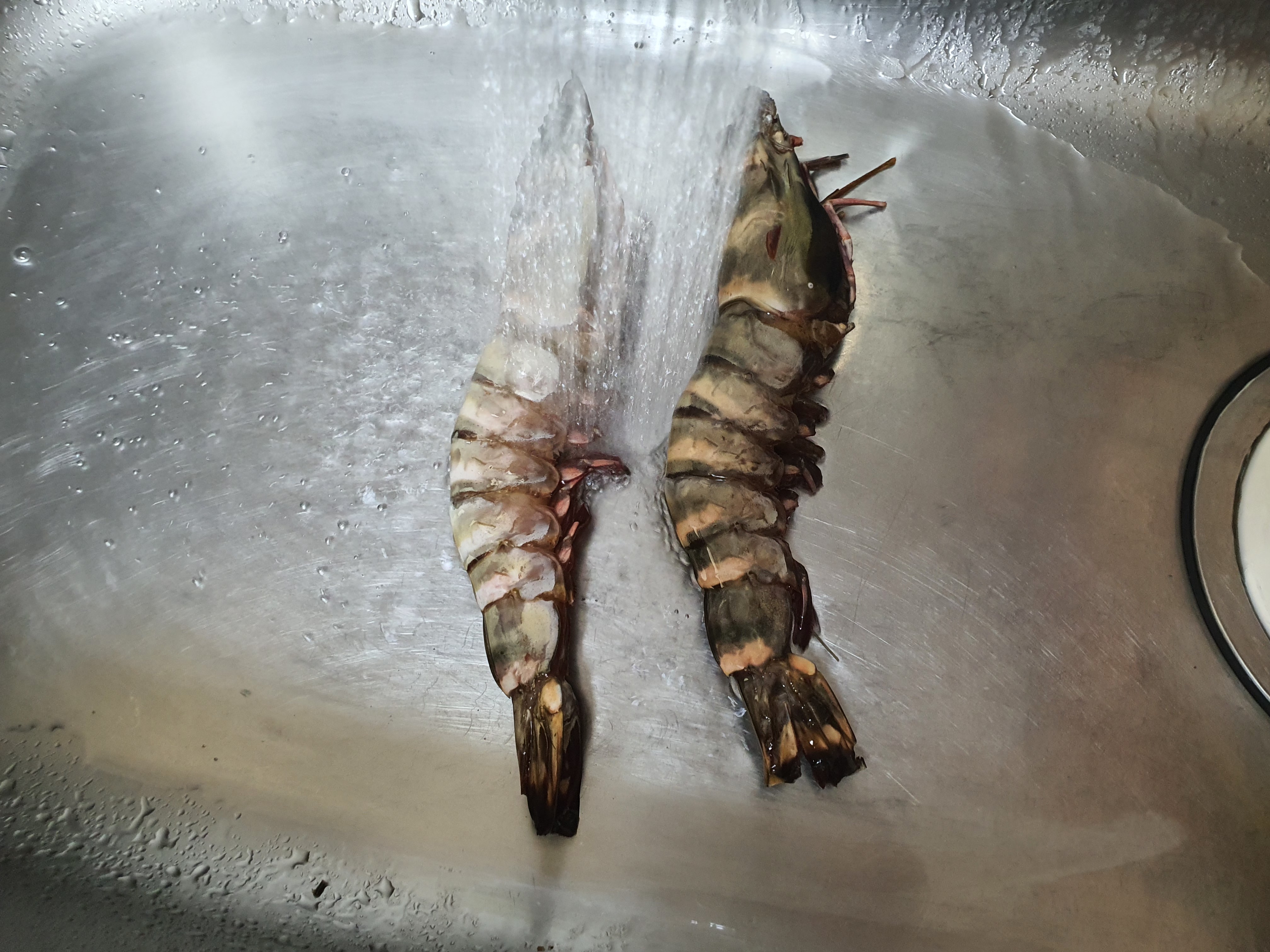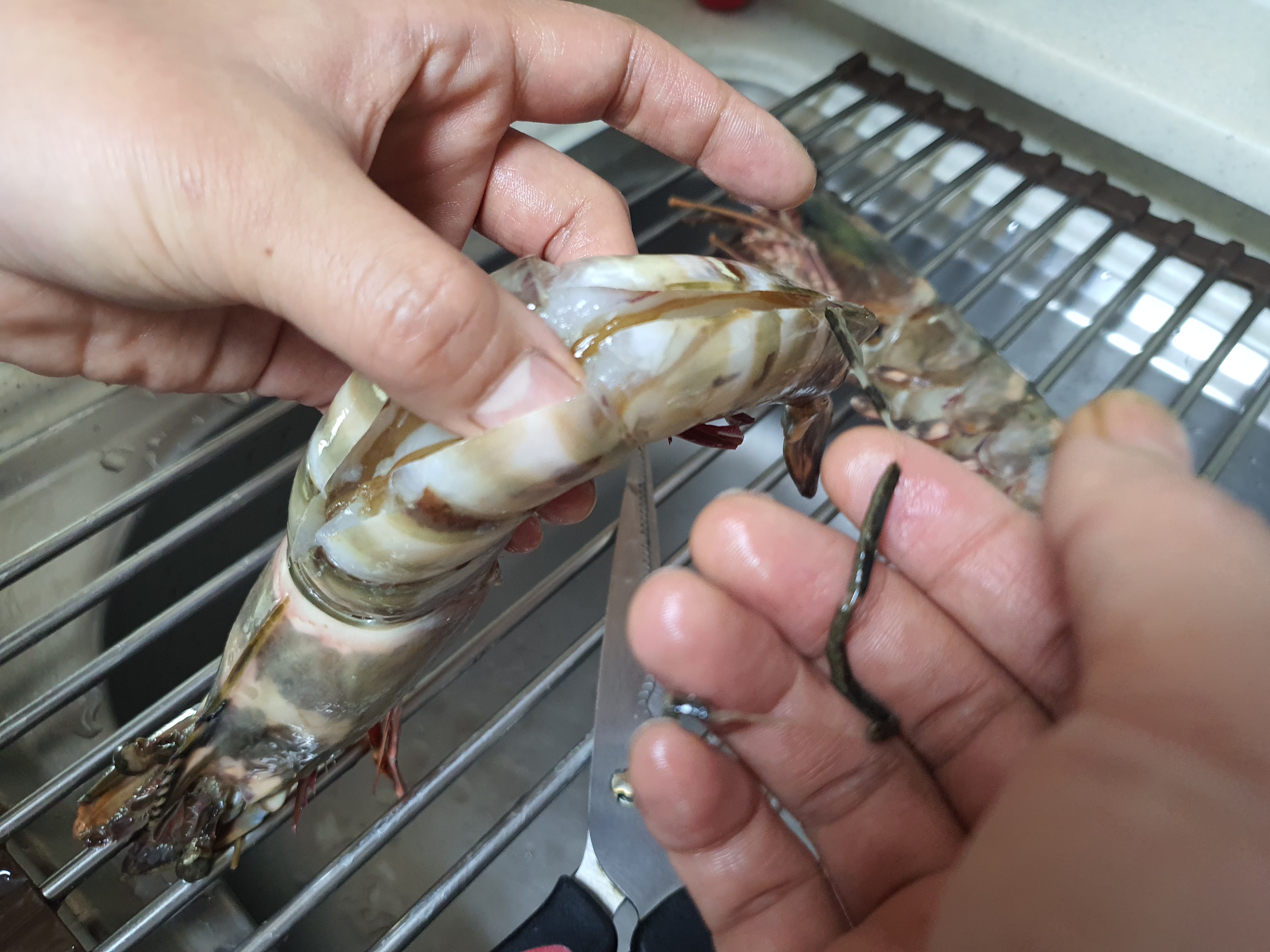 저는 킹 블랙타이거 새우 처음 먹어봐서 모르고 내장을 다 빼버렸어요. 하지만 남아있는 것들은 손질할 때 내장을 그대로 남겨 뒀어요. 내장이 맛있거든요.