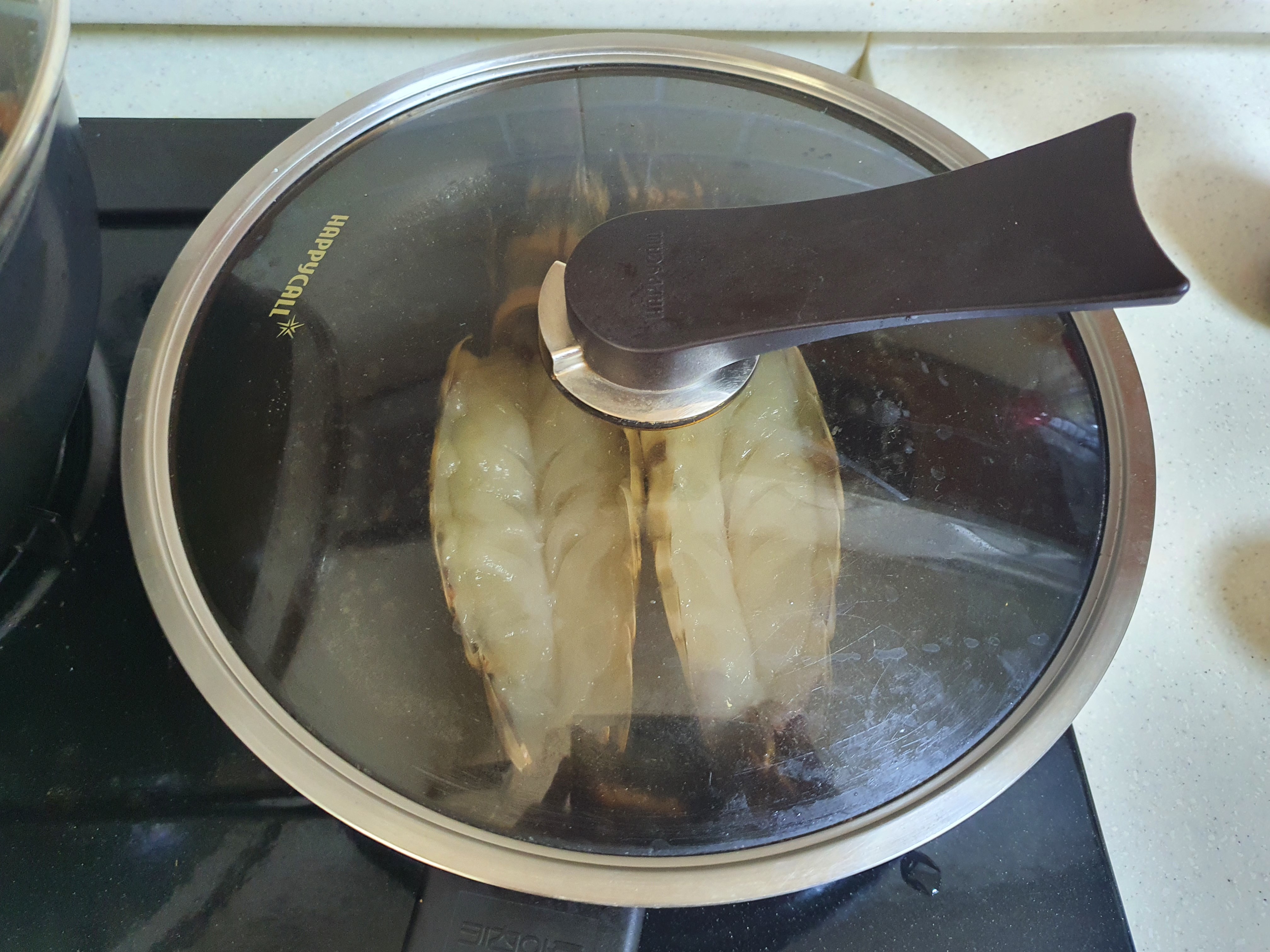 머리가 커서 쉽게 익지 않아요. 오래 걸려요. 그래서 뚜껑도 덮었죠.
