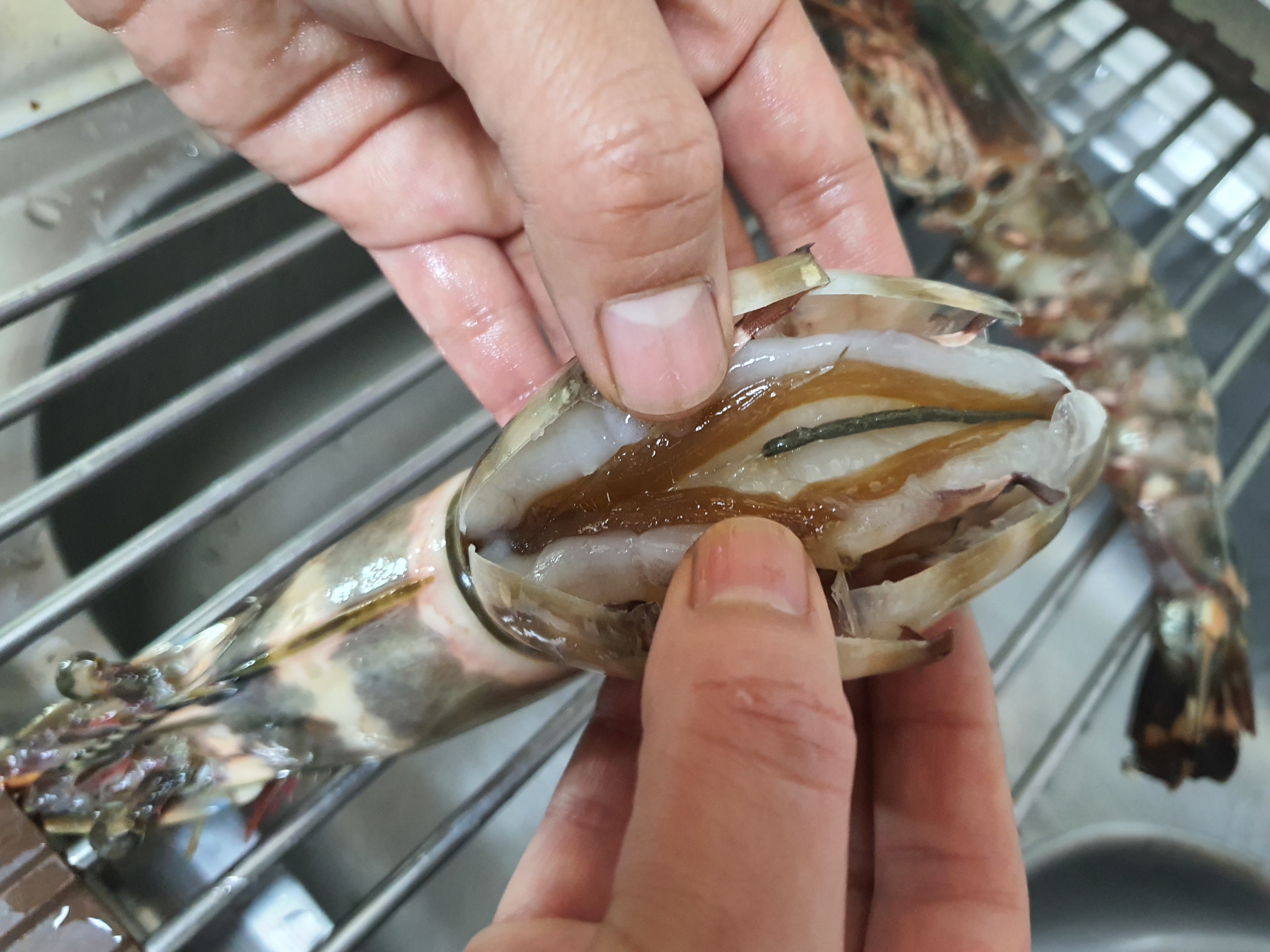 이렇게요. 내장은 맛있어요. 사실 내장은 새우 대가리에도 있어서 완벽히 제거하기 힘들기도 하고요.