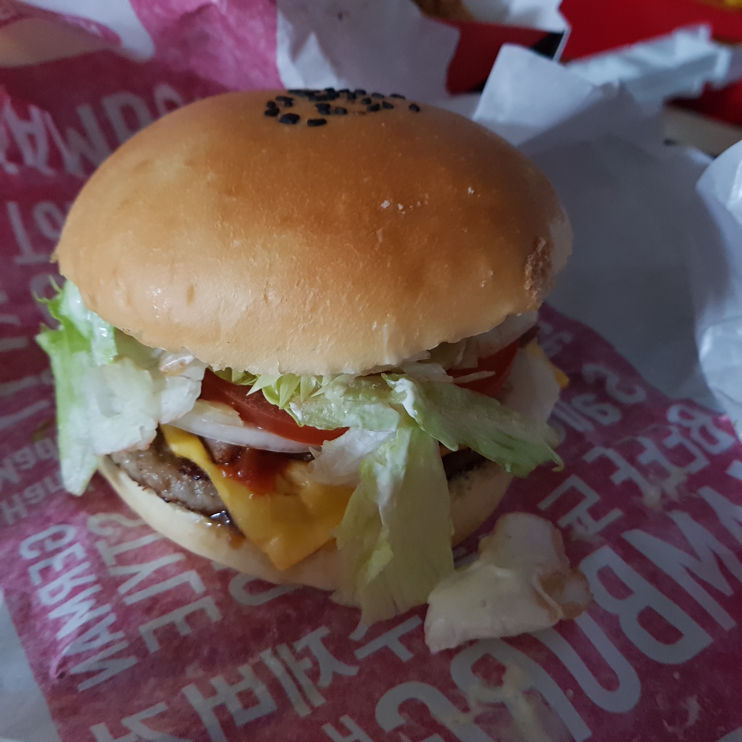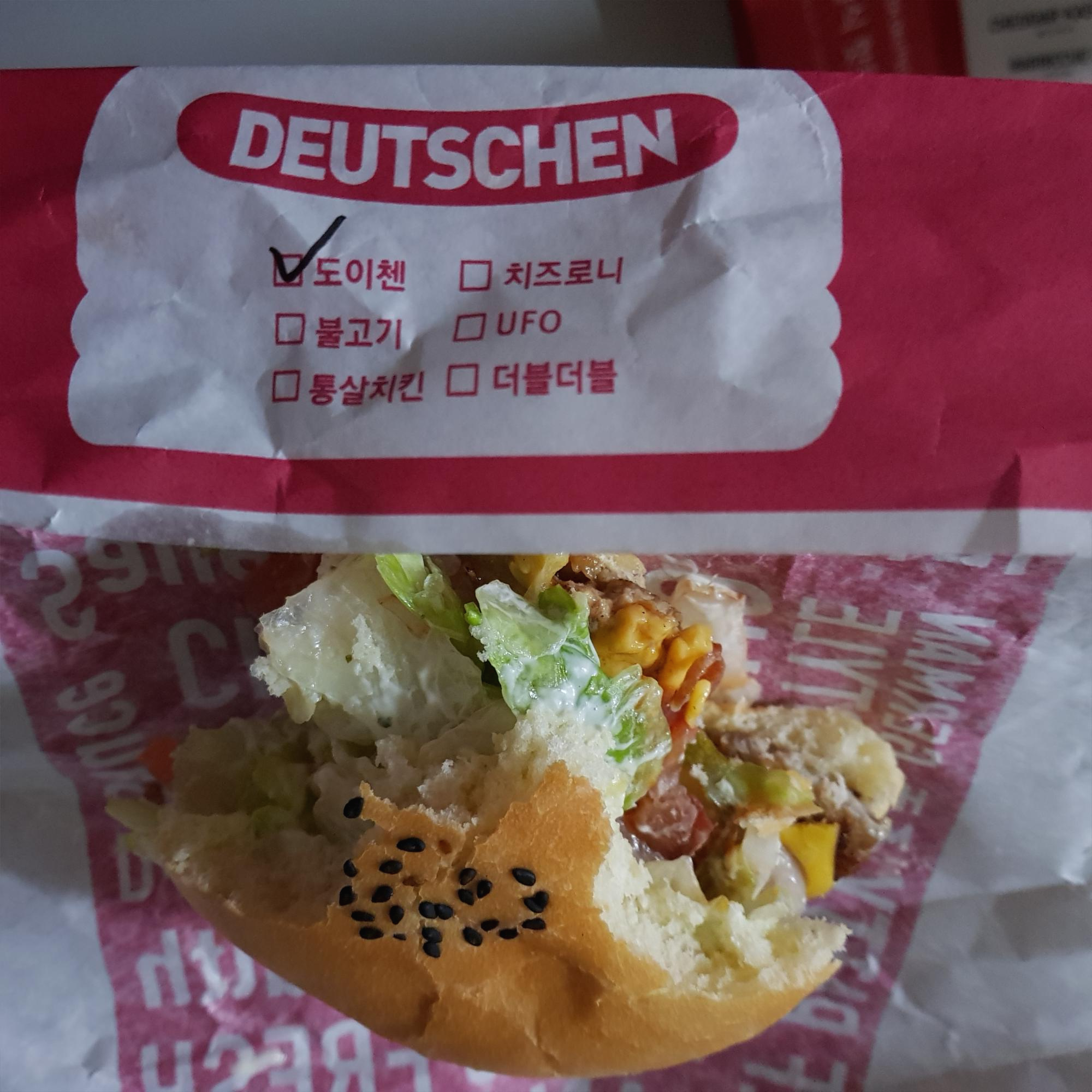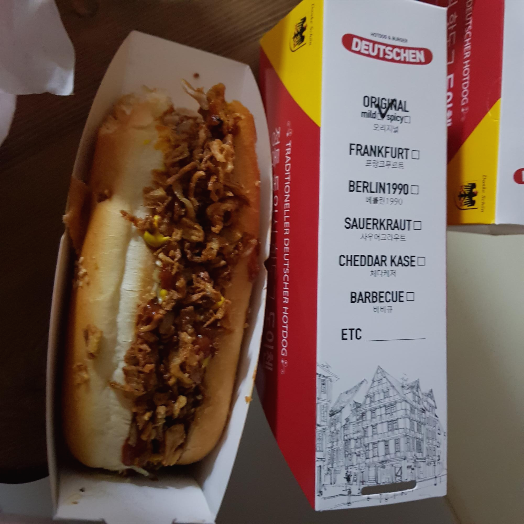 정통 독일식 핫도그 오리지널은 마일드와 스파이시 둘 중 하나를 선택할 수 있다. 선택하지 않았더니 그냥 마일드로 갔다 줬다. 독일 정통 소시지 맛이 이런 건지 모르겠다. 할라피뇨에서 약간의 매운맛을 느낄 수 있었고 꾸리꾸리 한 맛이 났다. 위에 올려진 시리얼 같은 토핑은 매우 바삭한 식감은 있는데 먹을 때 질질 흘러서 불편하고 기름 맛이 난다. 기름 맛,,,,, 기름맛,,,, 단품 5,400원, 세트 7,900원