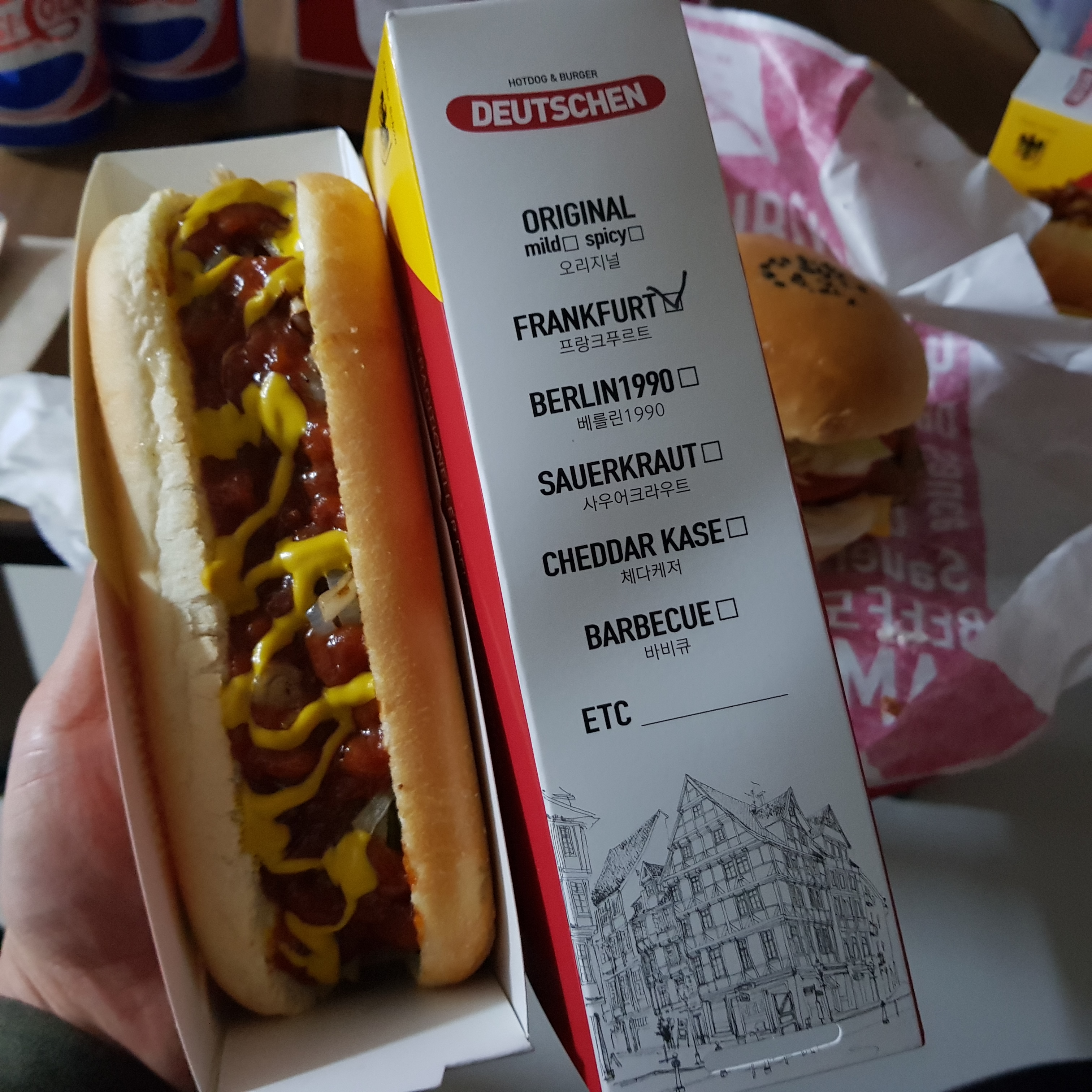 아래 사진은 난곡사거리 도이첸 프랑크푸르트 핫도그다. 독일의 프랑크푸르트 지역에서 가장 전통적인 핫도그라고 하는데 딱히 특별하지 않다. 그냥 가격만 오라지게 비싸다. 단품 4,400원, 세트 6,900원