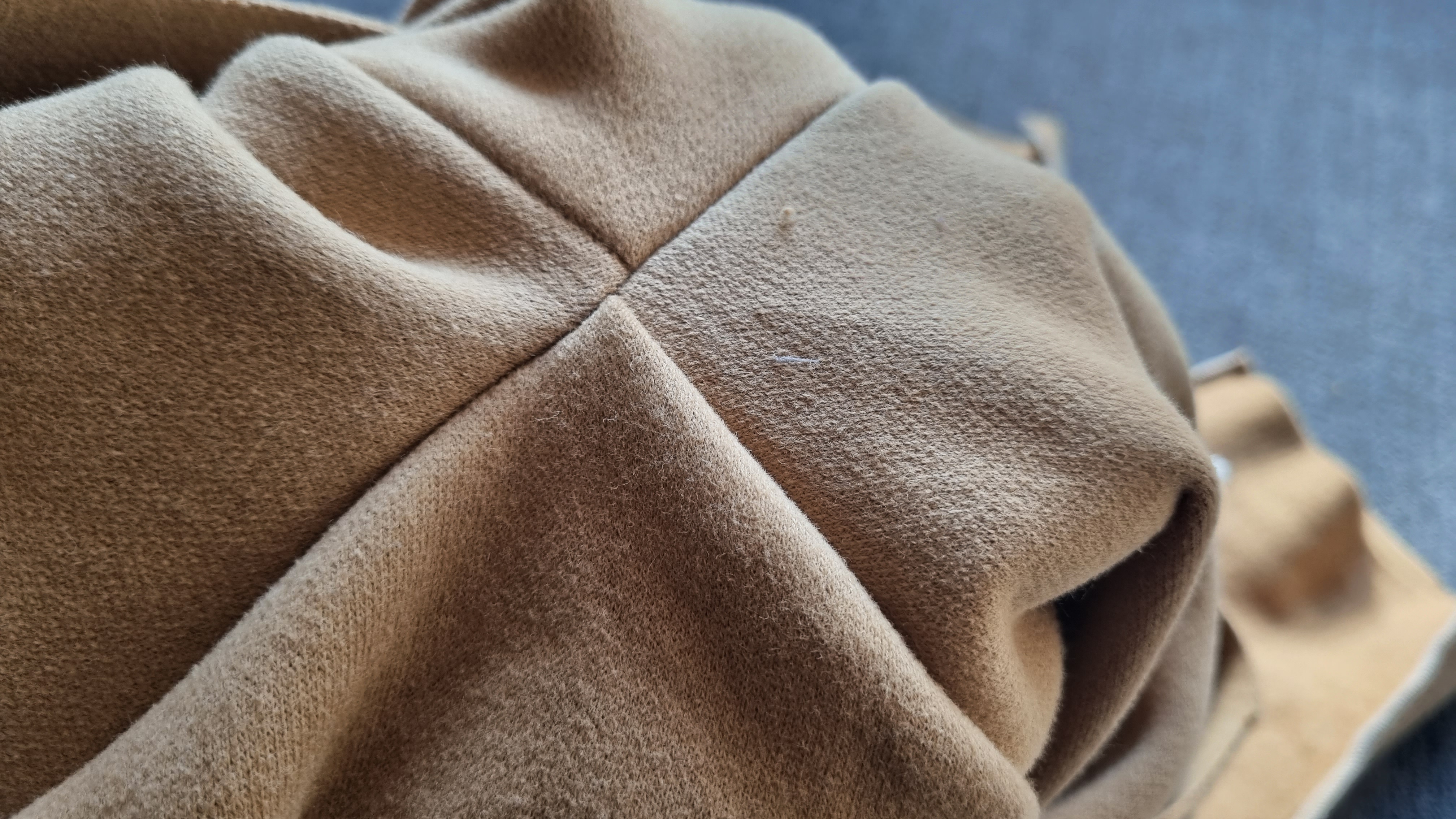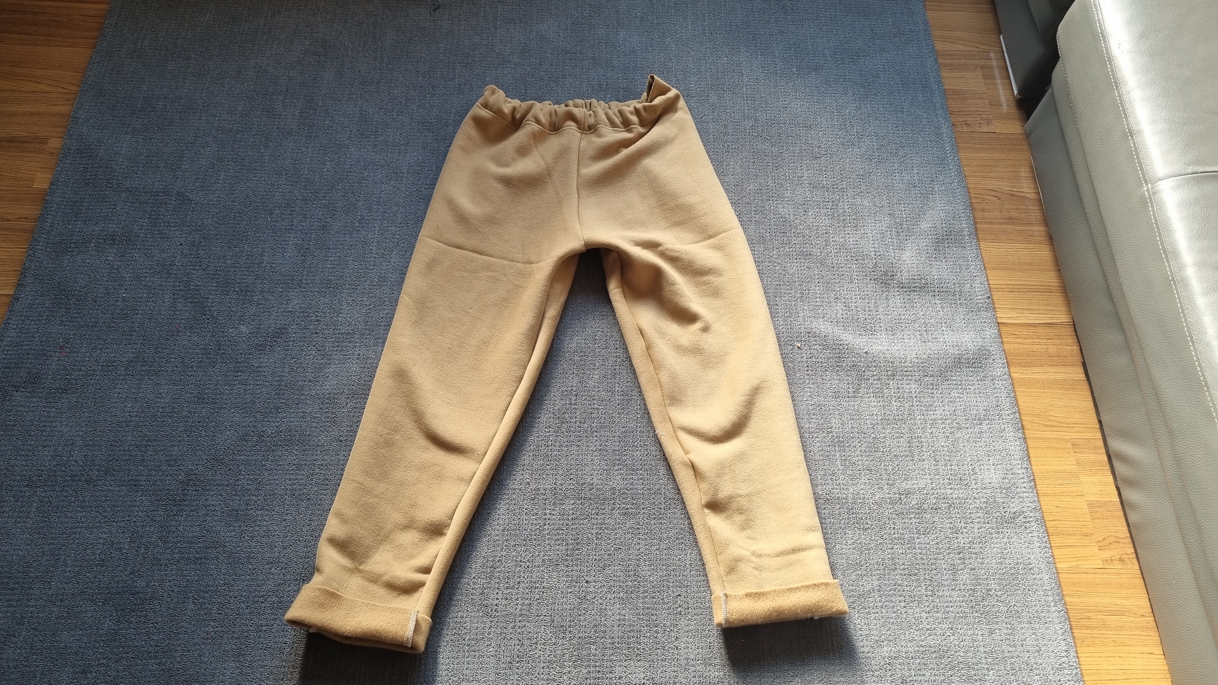 원래 검은색 기모 원단을 사용하려고 했는데 검은색 원단은 좀 부족했어요. 다리 한 짝 정도밖에 못 만들겠더라고요. 그래서 갈색을 사용했어요. 역시 성인 옷은 원단이 많이 들어가요. 하지만 키가 안 커서 자주 만들어야 할 필요가 없긴 하지만. 갈색의 기모 원단에 조거팬츠 패턴을 그렸어요.